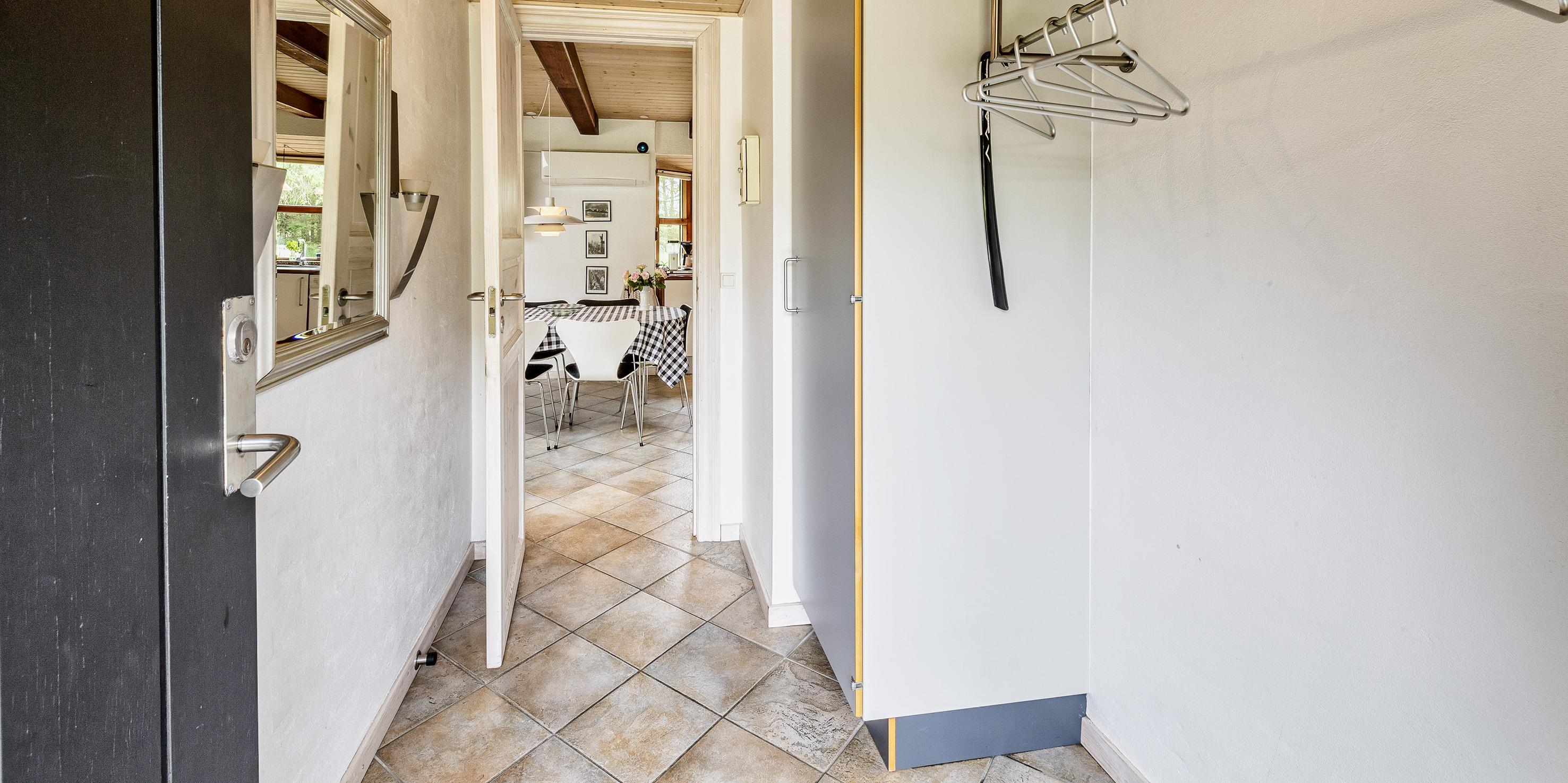 Der er tre soveværelser: DS (180x200) + DS (140x200) + 2S - heraf to med dobbeltseng og ét med to enkelte senge. Alle soveværelser har garderobeskabe og mørklægningsgardiner.