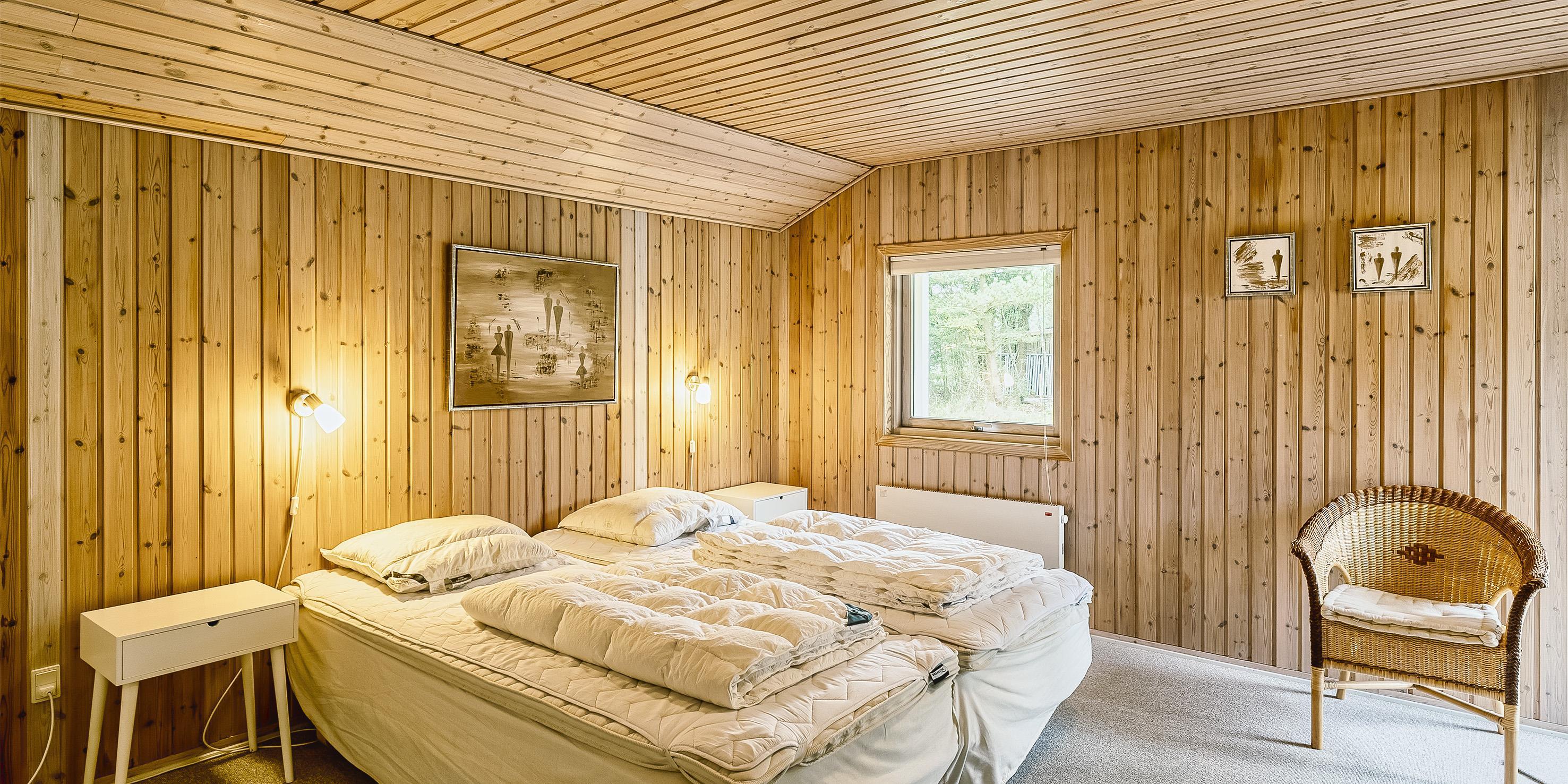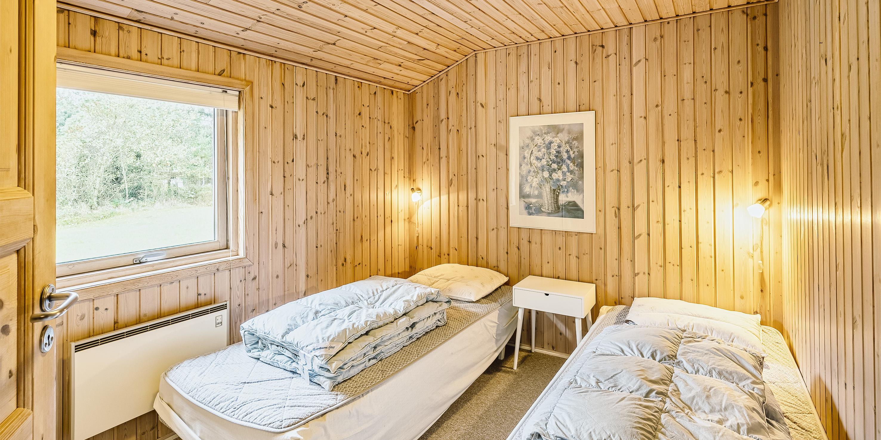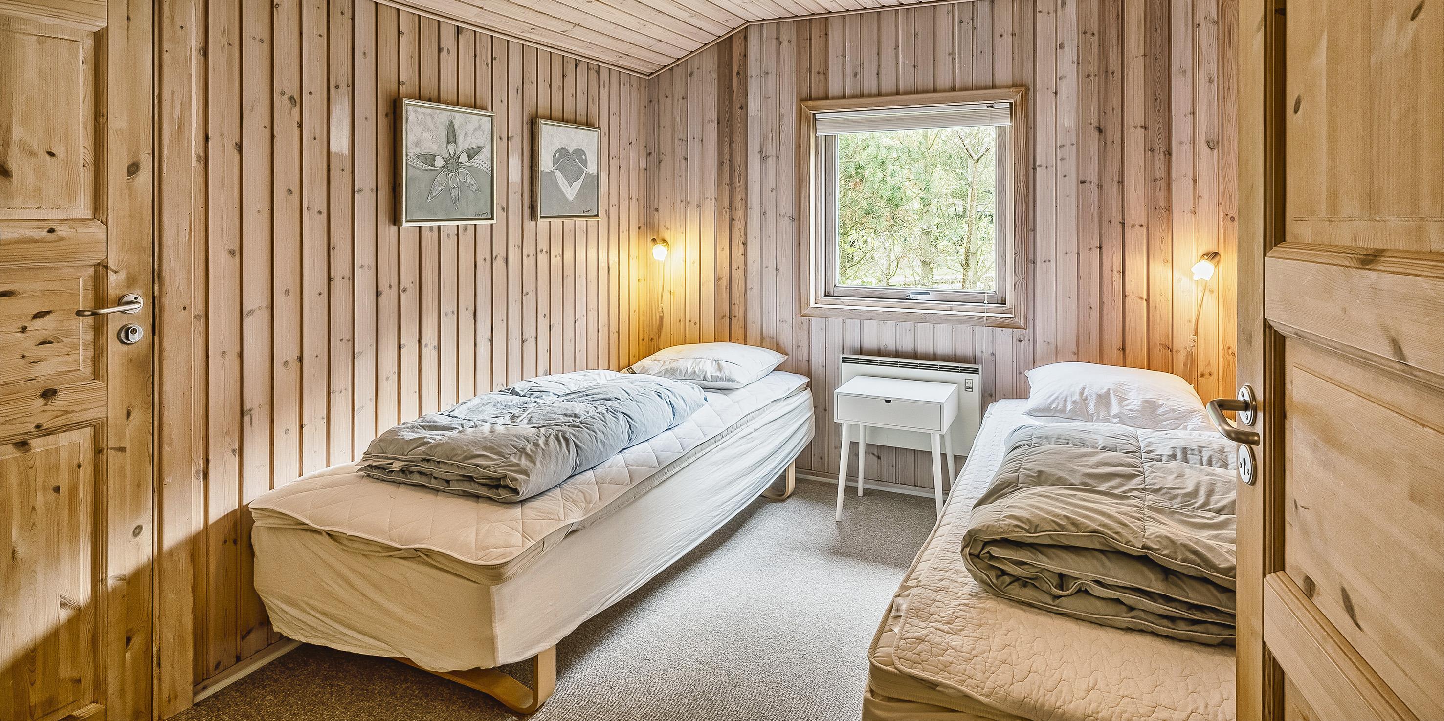 3 soveværelser. 1 med dobbeltseng 180x200 cm. 2 med 2 enkeltsenge (á 90x200 cm)