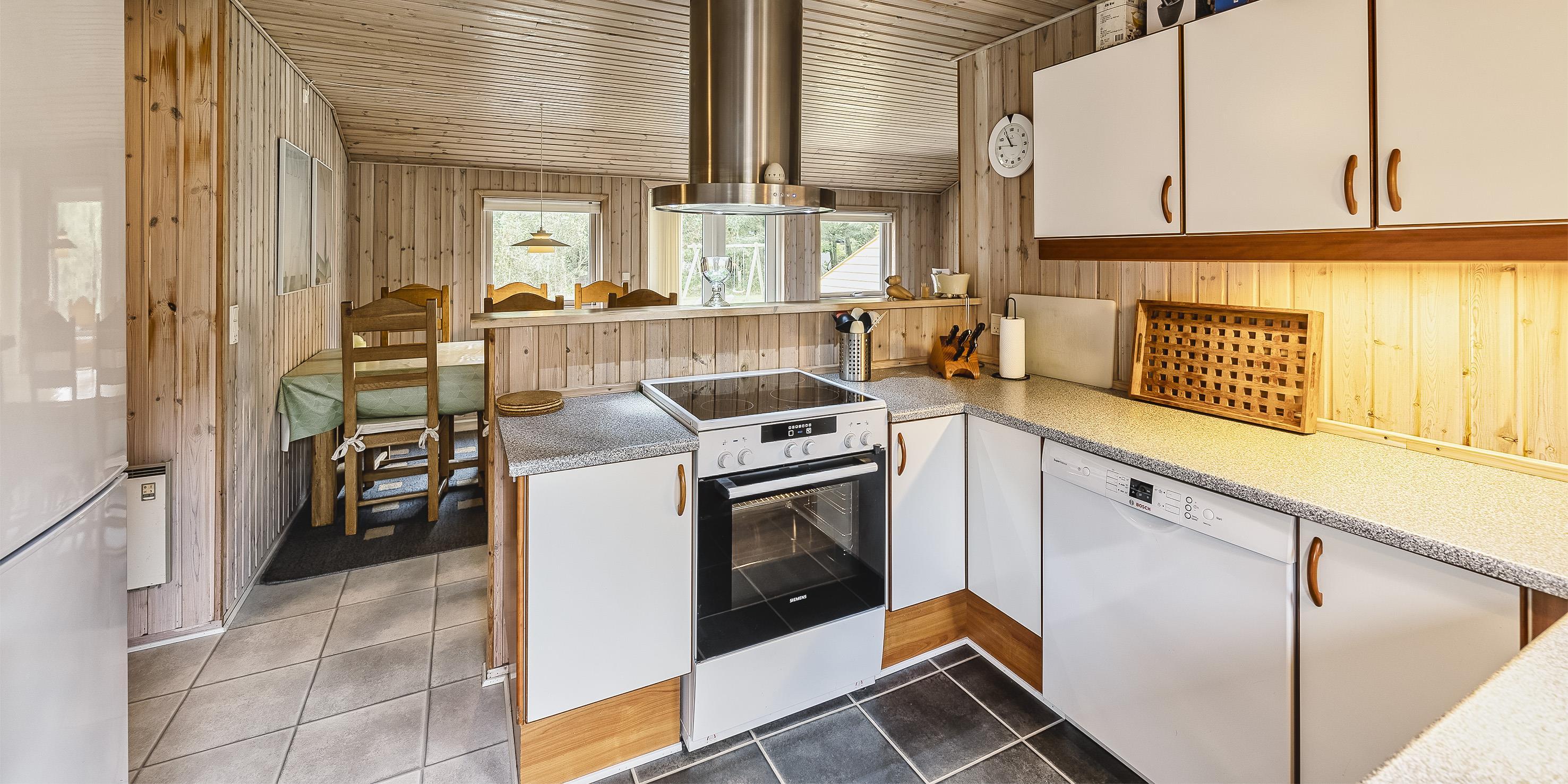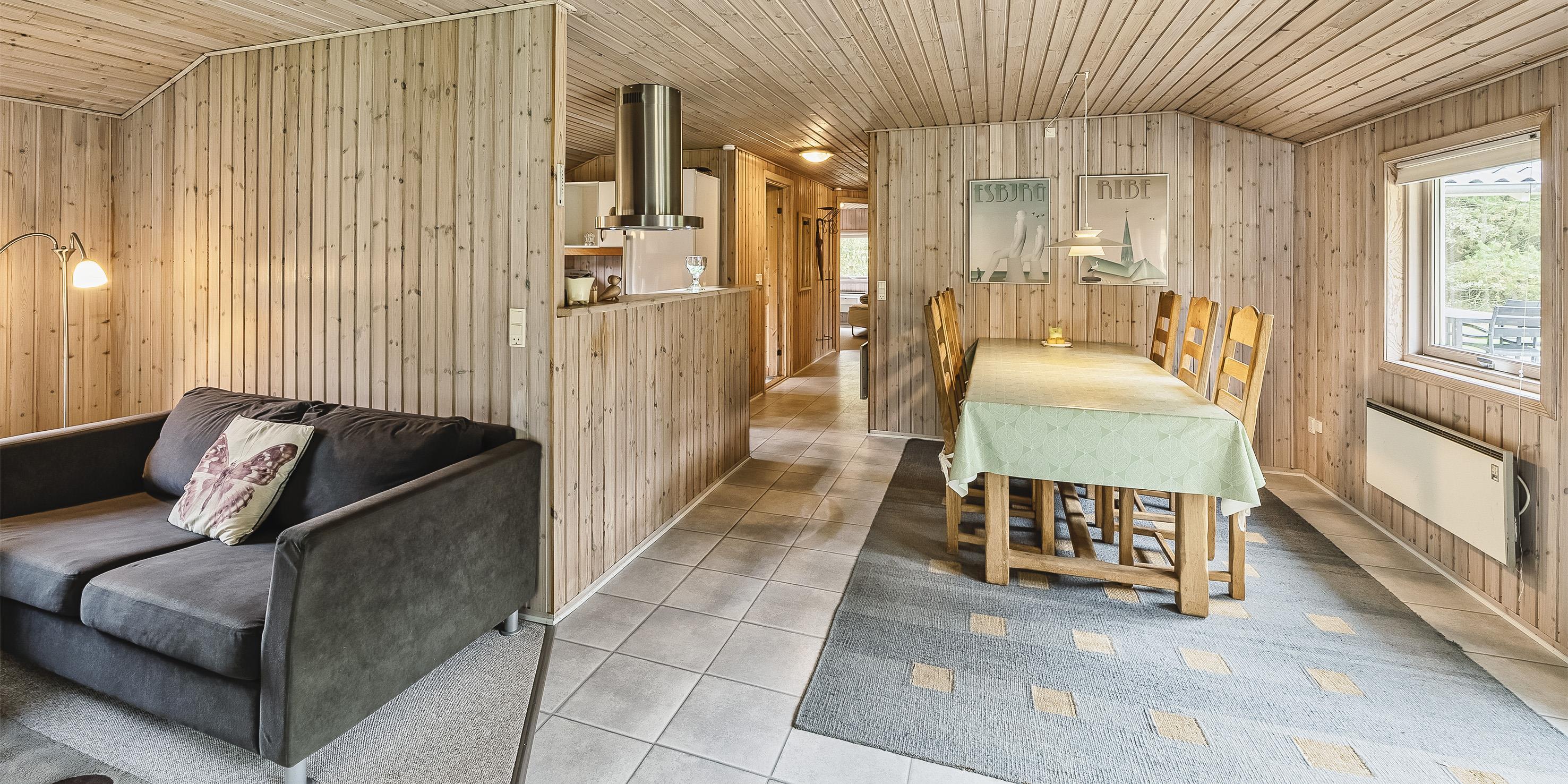 Nydeligt sommerhus til 6 personer, beliggende på naturskøn lukket grund, ca. 2 km fra stranden. Stue med varmepumpe, brændeovn, fjernsyn og parabol (Stofa sommerhuspakke) samt åbent køkken med mikroovn og opvaskemaskine. Badeværelse med bruser/wc og sauna. Vaskemaskine. 3 soveværelser: DS + 2S + 2S. 1 soveværelse med 1 dobbeltseng og 2 soveværelser med hver 2 enkeltsenge. Stor terrasse. Trådløs Internet. Rygning er ikke tilladt. Kun 1 husdyr tilladt, men de må ikke være alene i huset efter ejers ønske. Byggeår 1966, renoveret 1998.