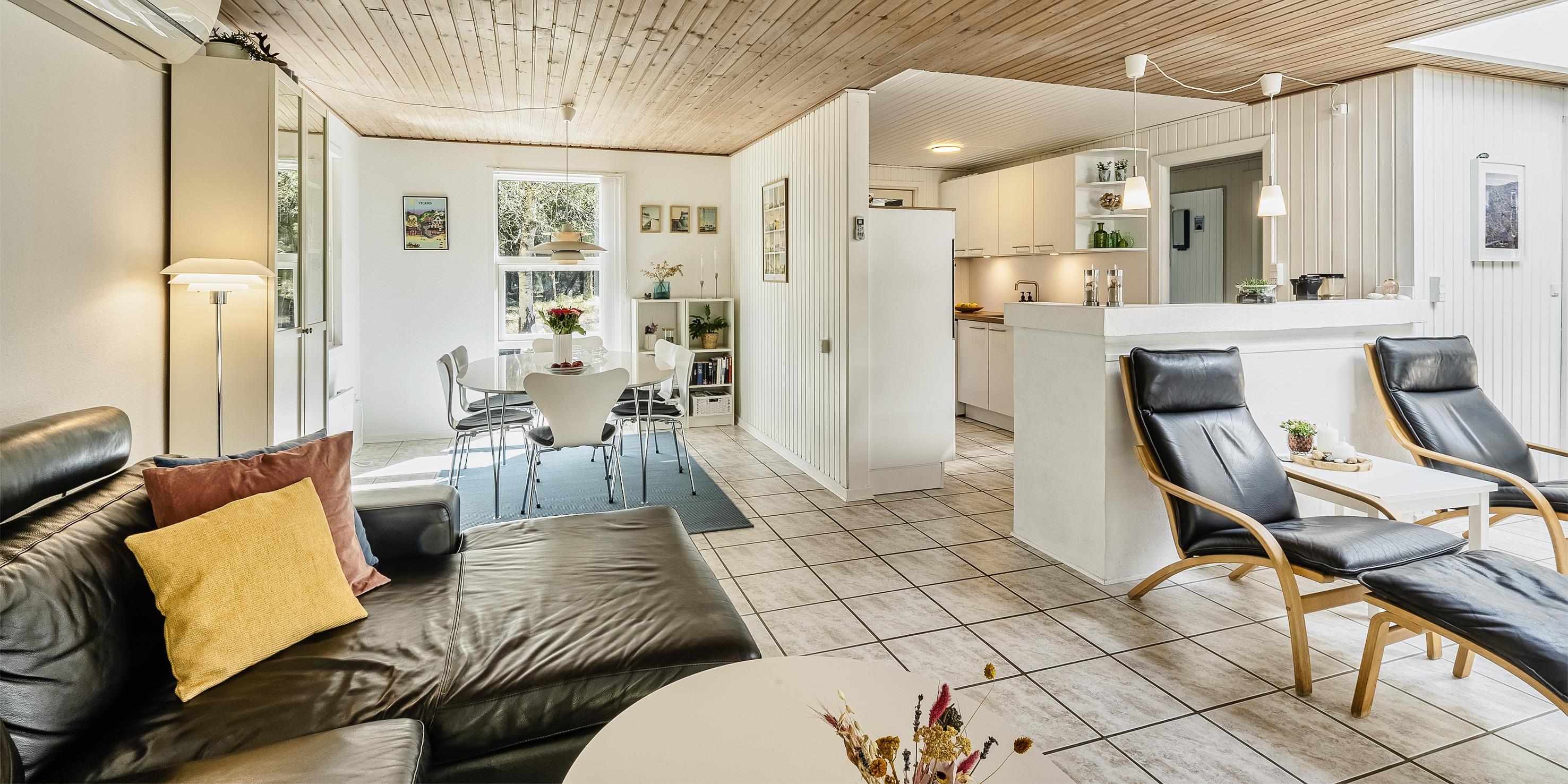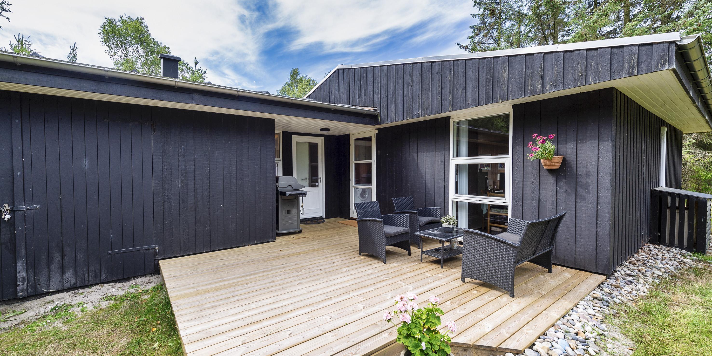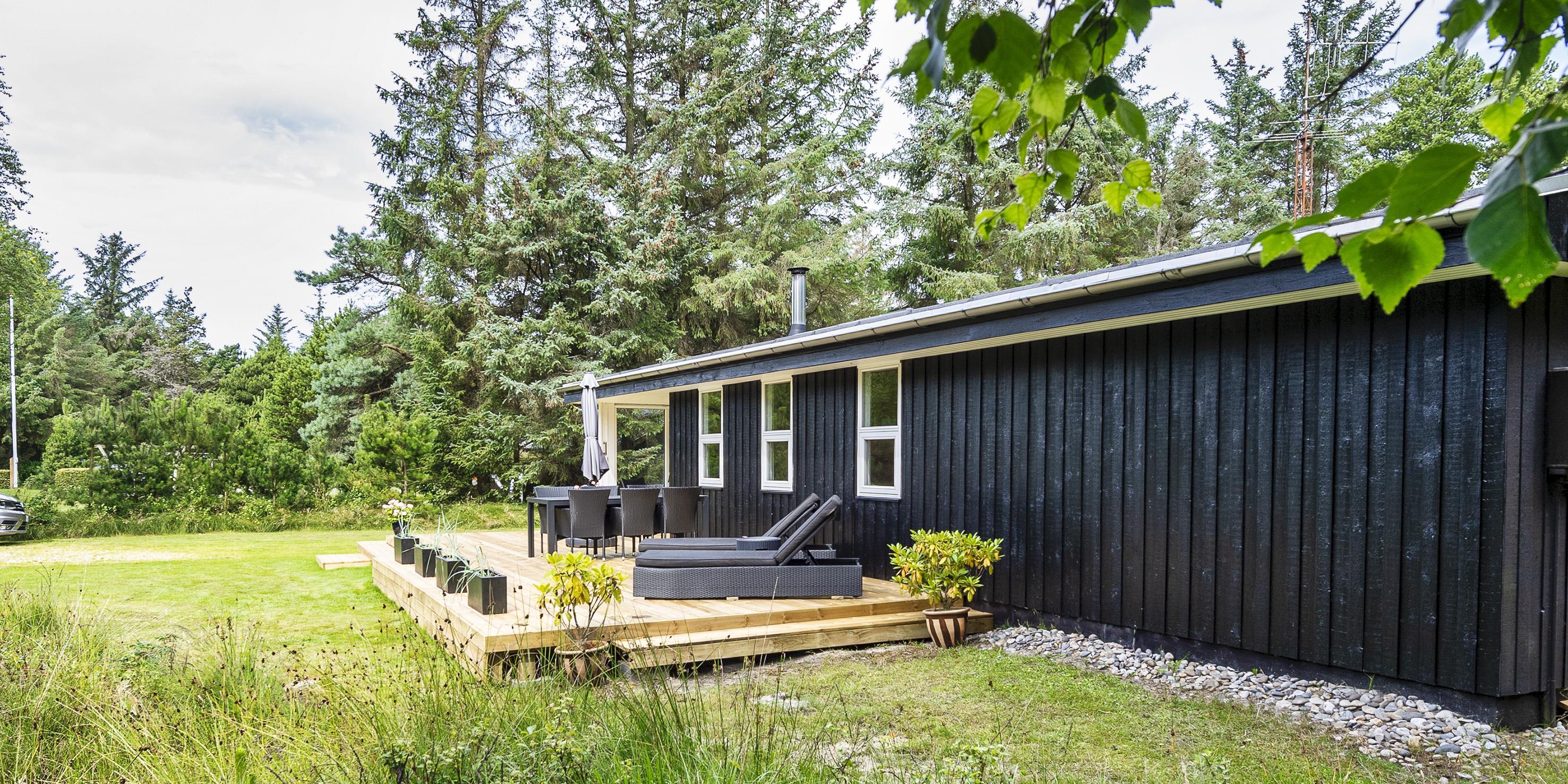 Nydeligt sommerhus til 6 personer, beliggende på ugeneret naturskøn grund, ca. 2.000 meter fra stranden. Stue med brændeovn, fjernsyn og parabol (Stofa sommerhuspakke). Varmepumpe. Nyt køkken med mikroovn og opvaskemaskine og med udgang til terrassen. Ny badeværelse med bruser/wc og sauna. 3 soveværelser: DS + DS + 2S. 1 soveværelse med 1 dobbeltseng, 1 soveværelse med 2 enkeltsenge og 1 soveværelse med 1 sovesofa. Shelter, terrasse. Huset har en gas grill, som må benyttes. Gas til grillen er inklusiv i lejen. Grillen stilles rengjort tilbage efter brug. Trådløs internet (1000/1000 Mbit). Kombineret vaskemaskine og tørretumbler. Adgang Golf i Ho for 2026. Rygning og katte er ikke tilladt. Byggeår 1972. Delvis renoveret i 2022.
