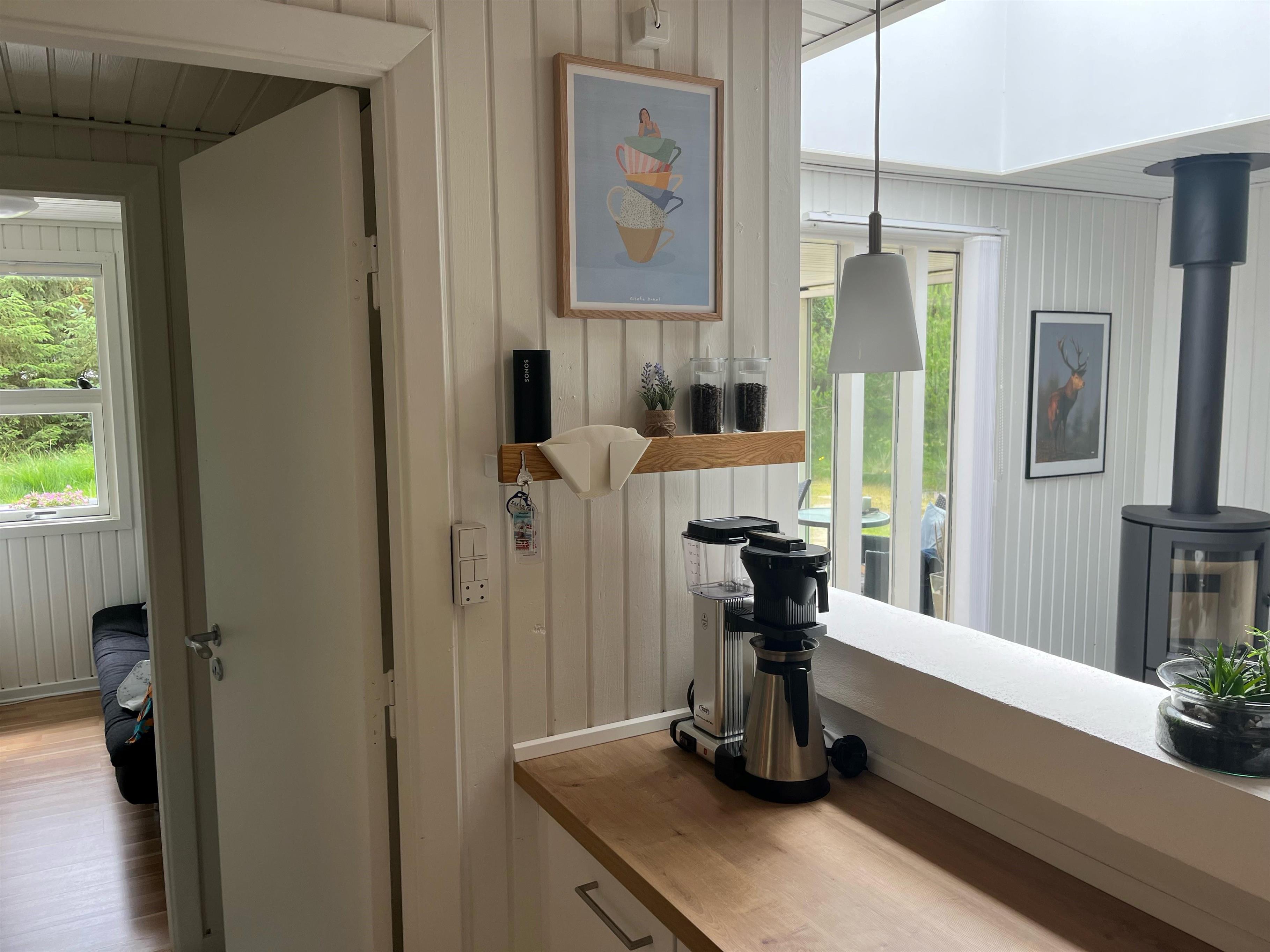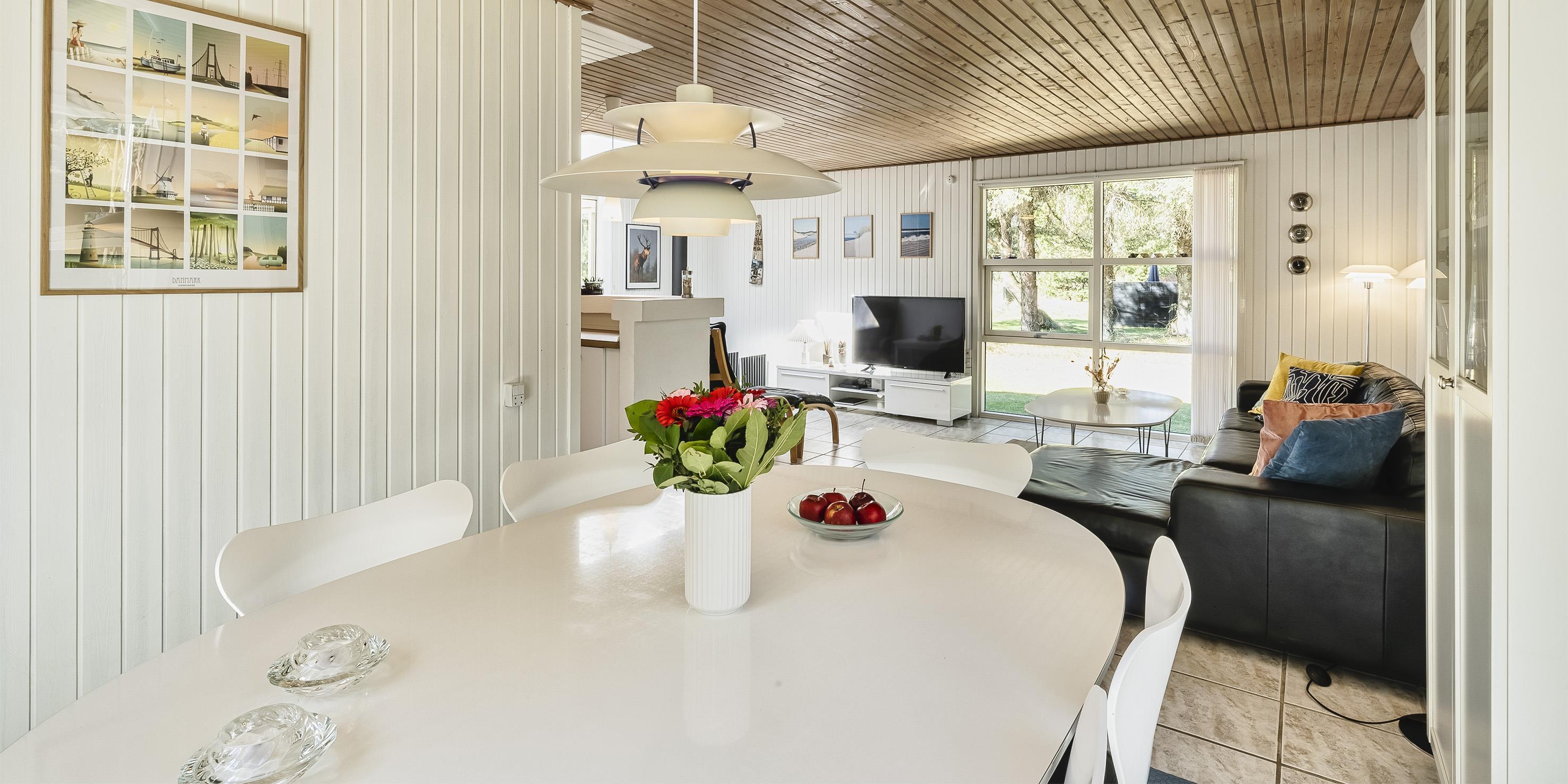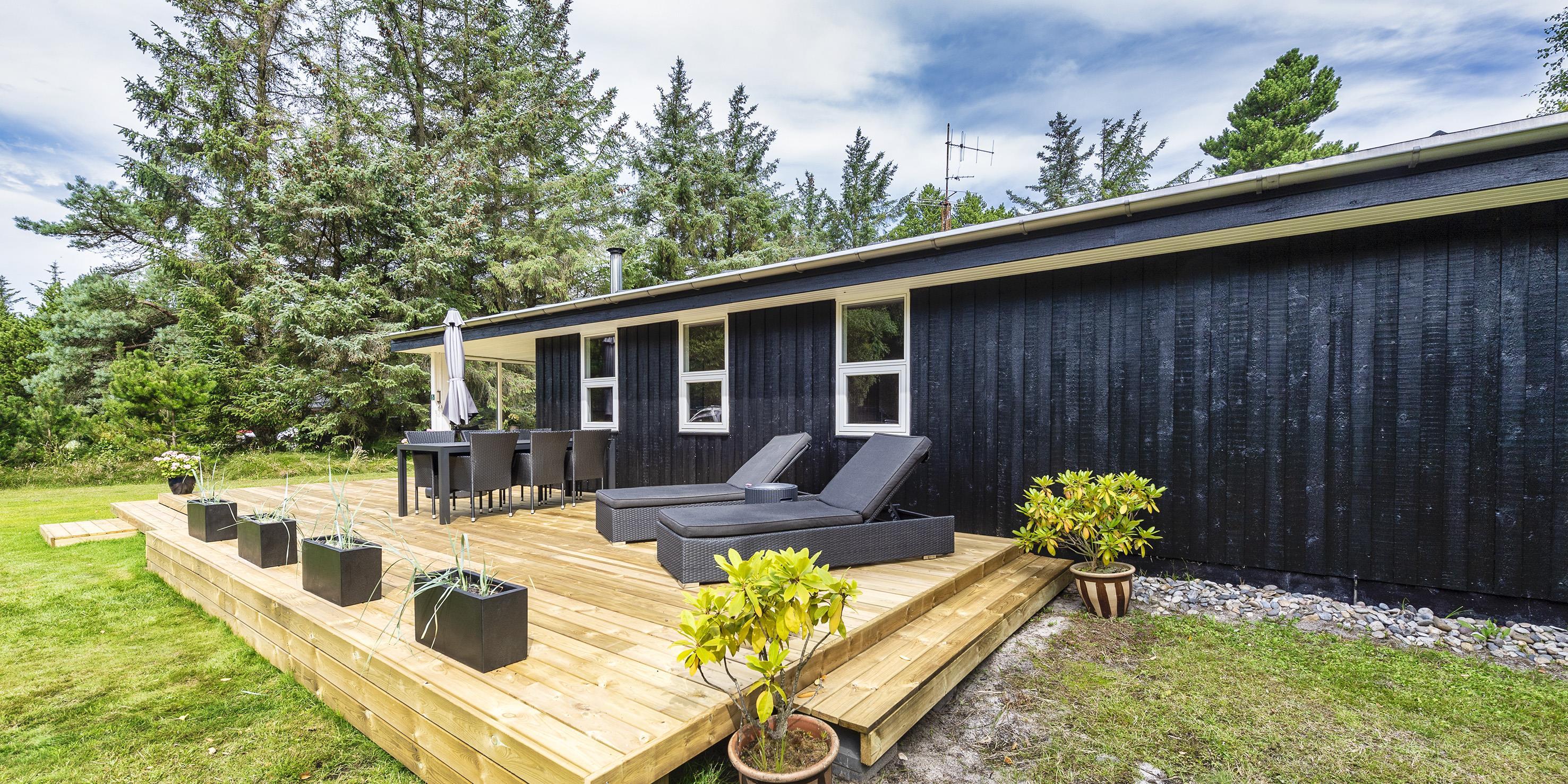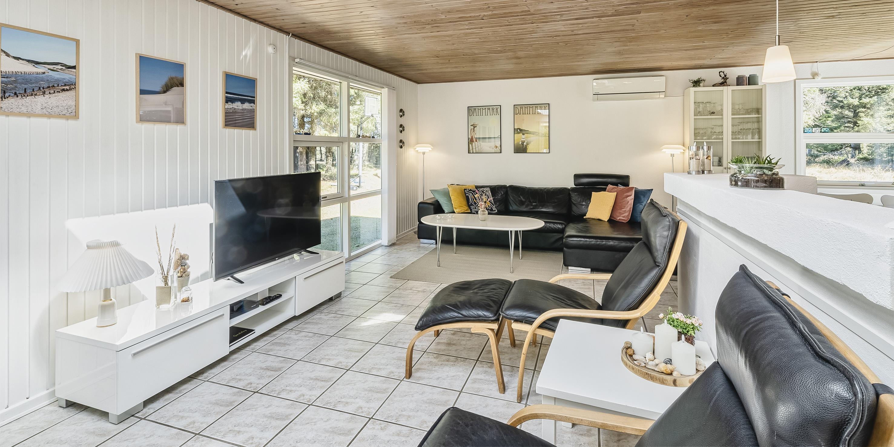 Nydeligt sommerhus til 6 personer, beliggende på ugeneret naturskøn grund, ca. 2.000 meter fra stranden. Stue med brændeovn, fjernsyn og parabol (Stofa sommerhuspakke). Varmepumpe. Nyt køkken med mikroovn og opvaskemaskine og med udgang til terrassen. Ny badeværelse med bruser/wc og sauna. 3 soveværelser: DS + DS + 2S. 1 soveværelse med 1 dobbeltseng, 1 soveværelse med 2 enkeltsenge og 1 soveværelse med 1 sovesofa. Shelter, terrasse. Huset har en gas grill, som må benyttes. Gas til grillen er inklusiv i lejen. Grillen stilles rengjort tilbage efter brug. Trådløs internet (1000/1000 Mbit). Kombineret vaskemaskine og tørretumbler. Adgang Golf i Ho for 2026. Rygning og katte er ikke tilladt. Byggeår 1972. Delvis renoveret i 2022.