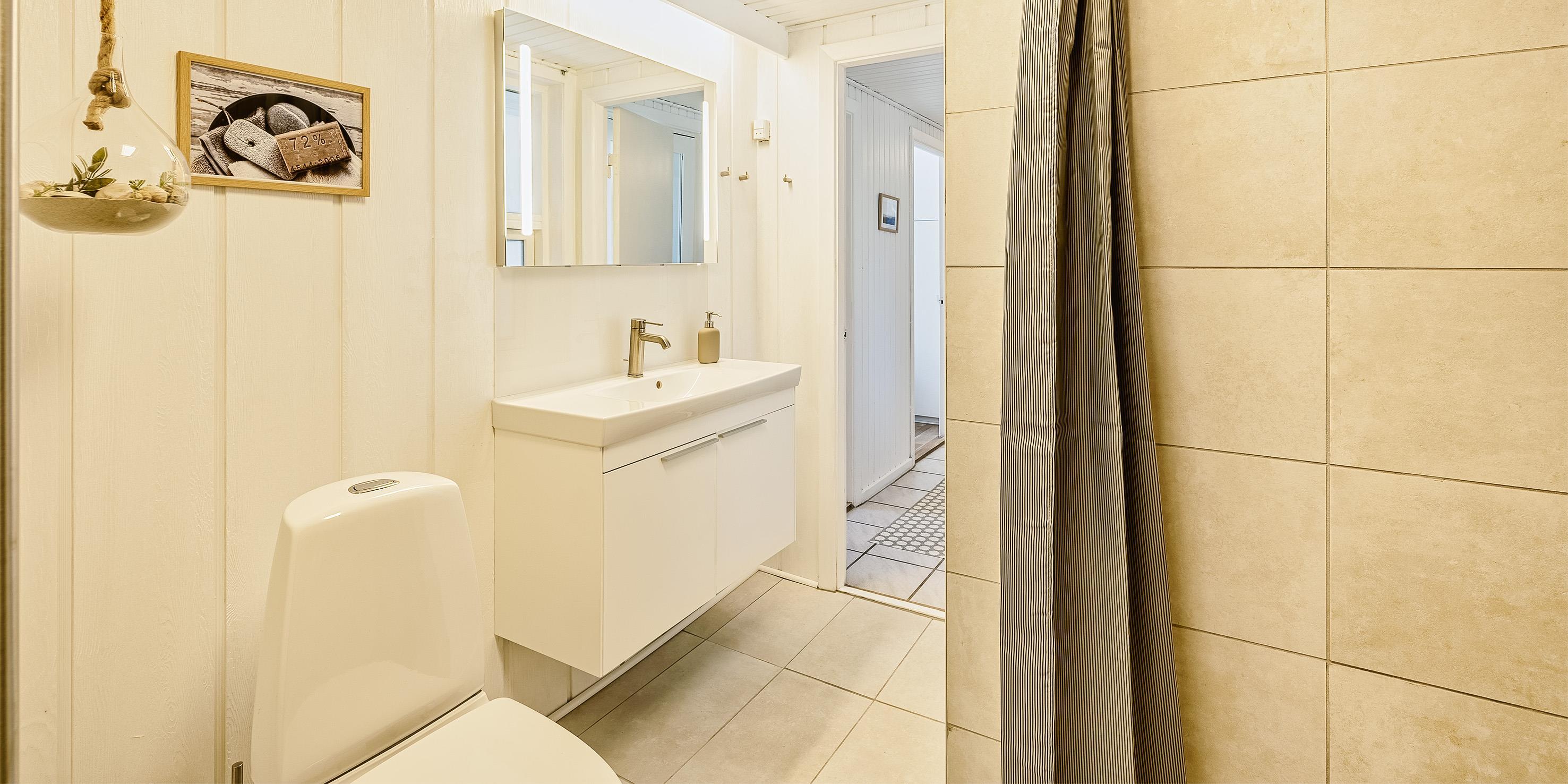 Bad med toilet, bruser og vask