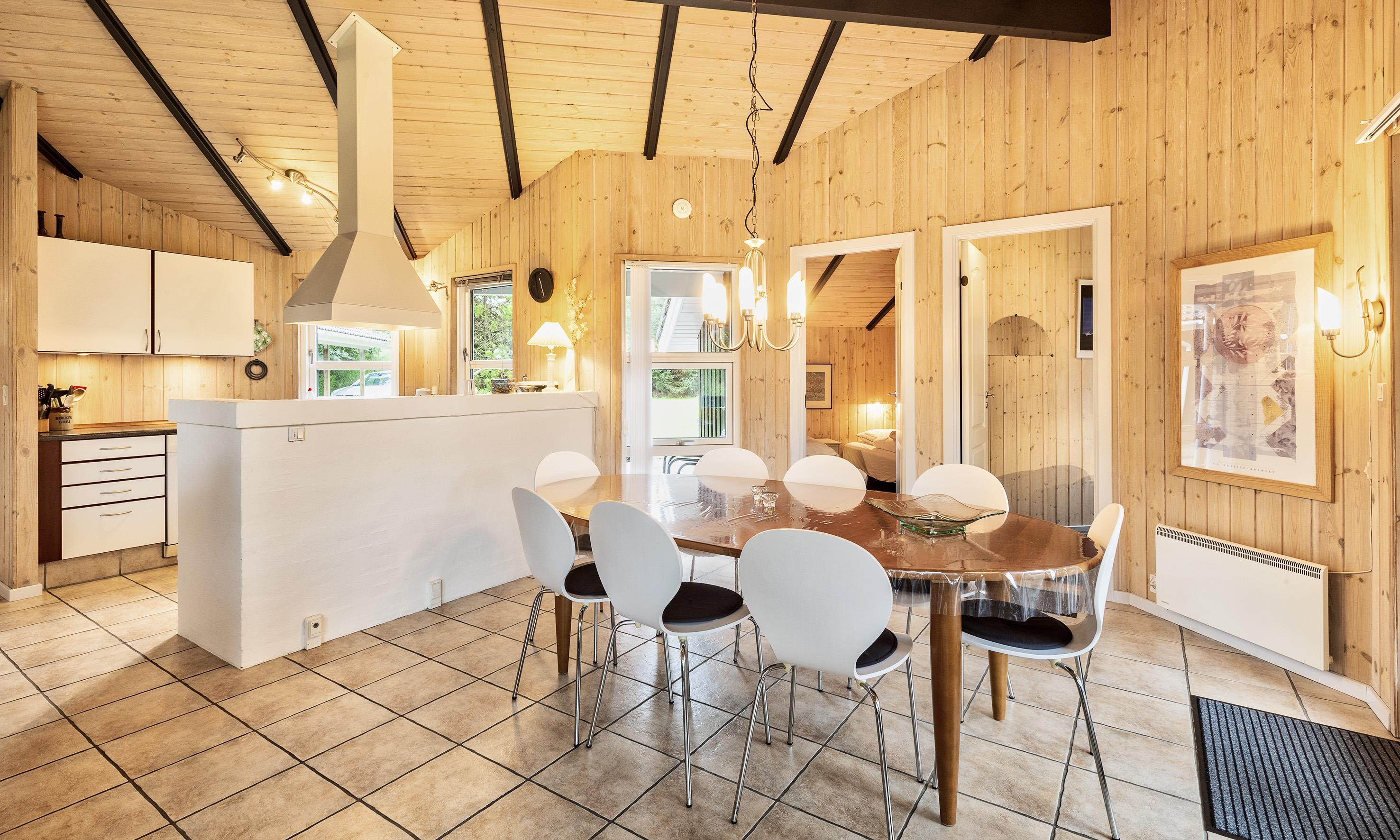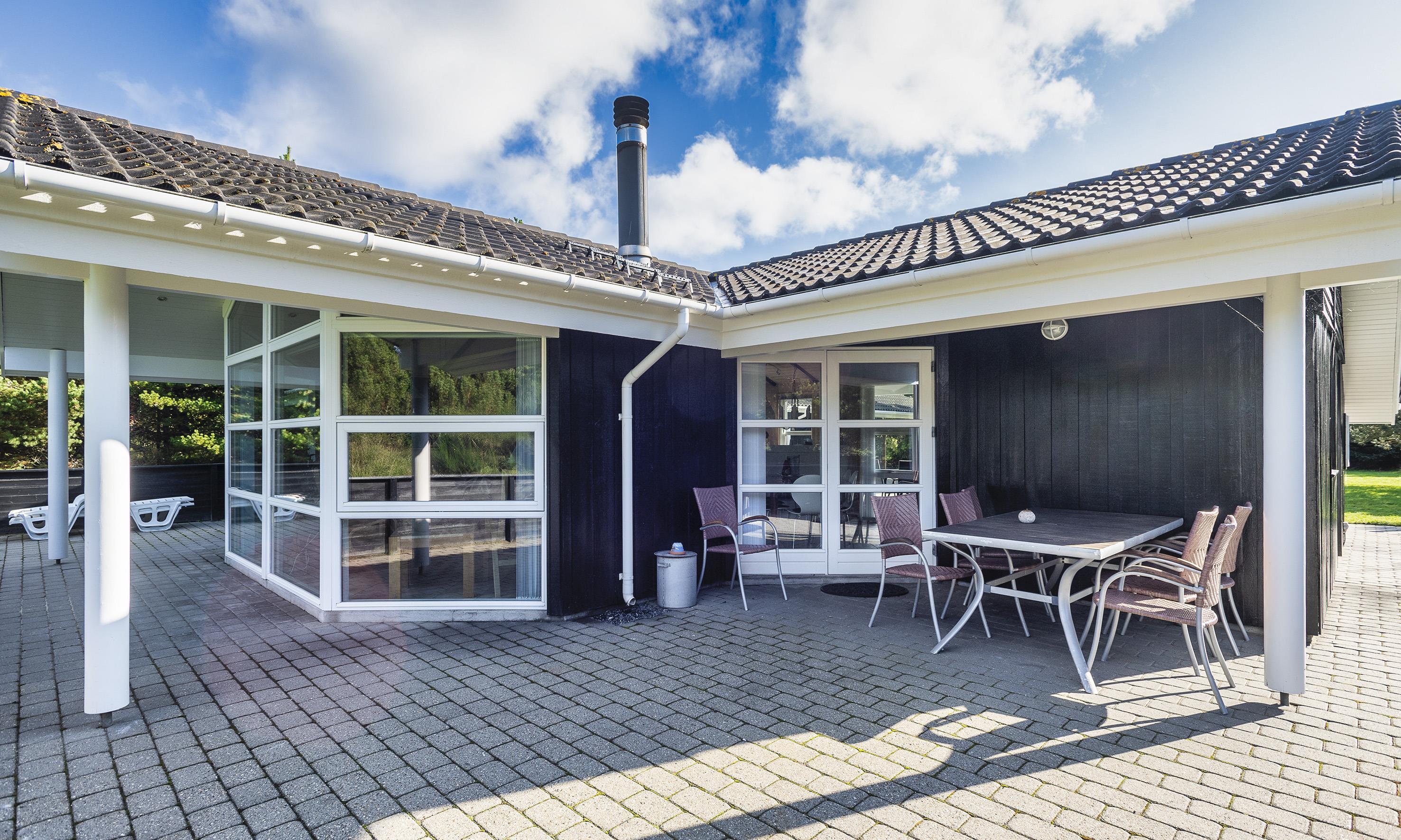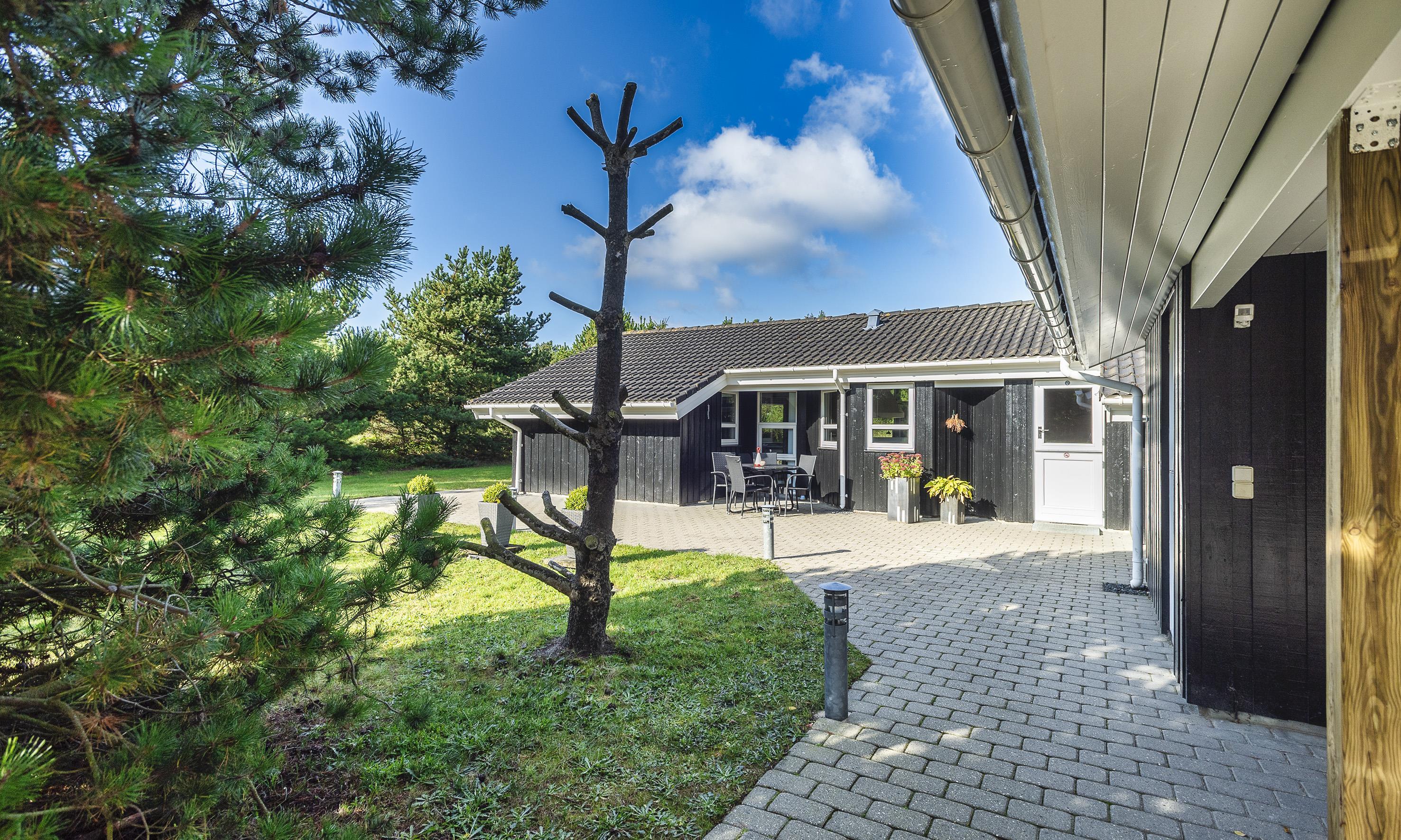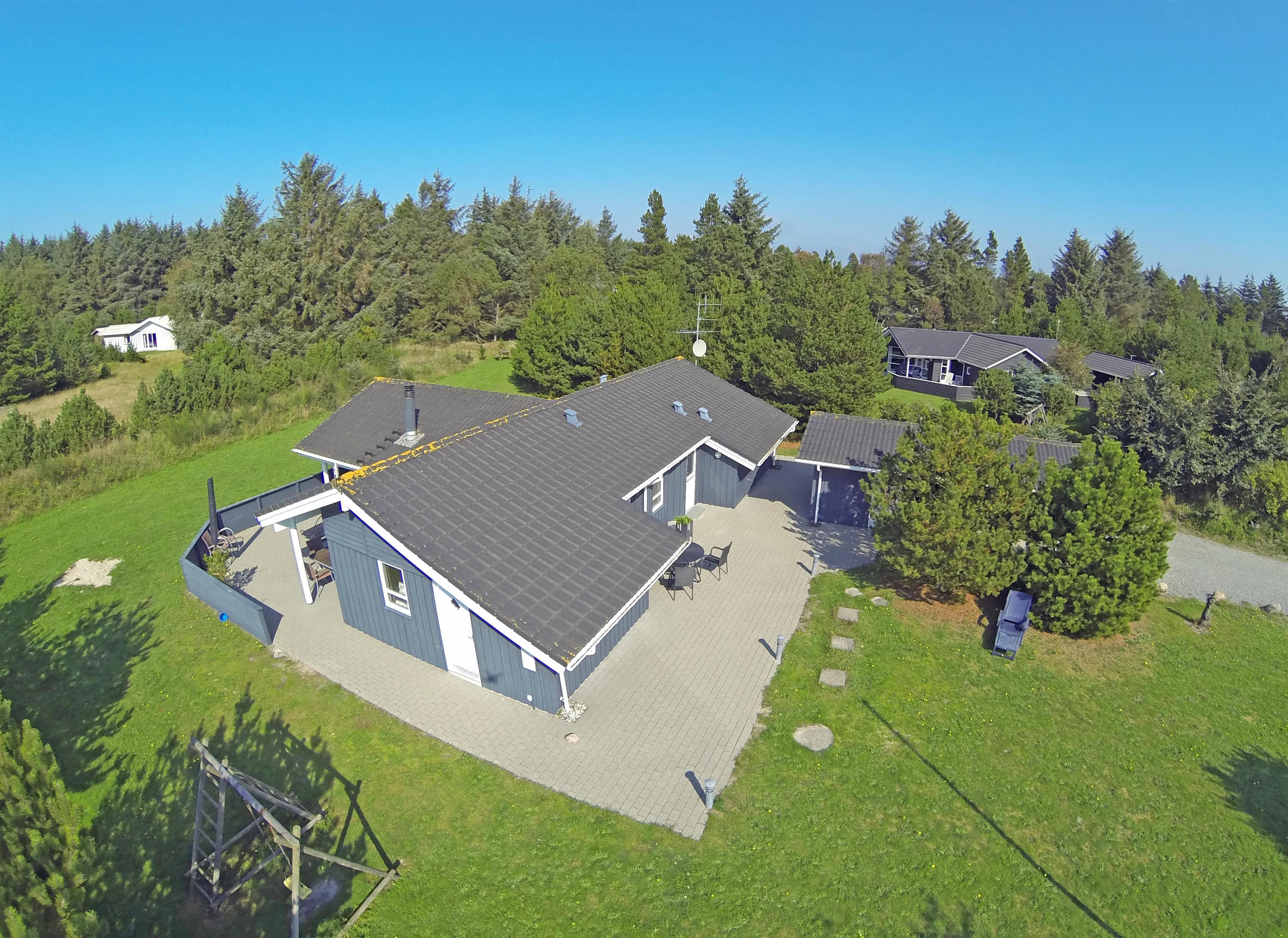 Pragtfuldt sommerhus til 8 personer, ca. 1000 meter fra stranden. Huset er beliggende på en 2250 kvm stor grund der er omkranset med træer.