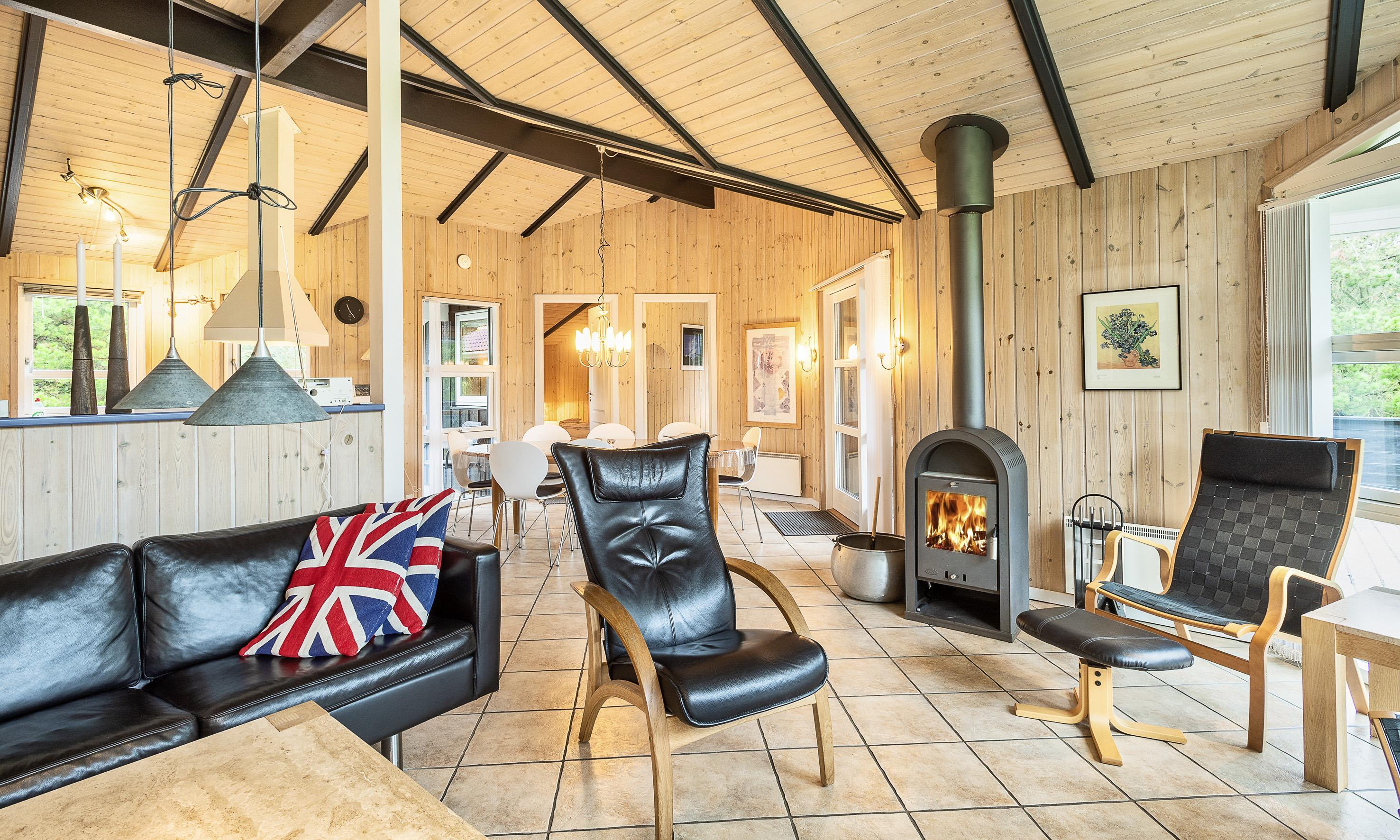 Huset indeholder: stor entre fordelingsgang med god garderobeplads. Fra entreen kommer man over i det store opholdsrum med loft til kip. Stue med brændeovn, Smart-Tv, Stofa-Tv samt stort køkken-alrum med opvaskemaskine, køle-fryseskab og mikroovn, gulvarme i køkken. 4 soveværelser: DS + DS + DS + 2S. Stort badeværelse med bruser/wc, spa og sauna. Gæstetoilet med bruser. Vaskemaskine og tørretumbler. Trådløs internet igennem Stofa. Stor dejlig terrasse og carport. Gynge. Rygning er ikke tilladt! Byggeår 2003.