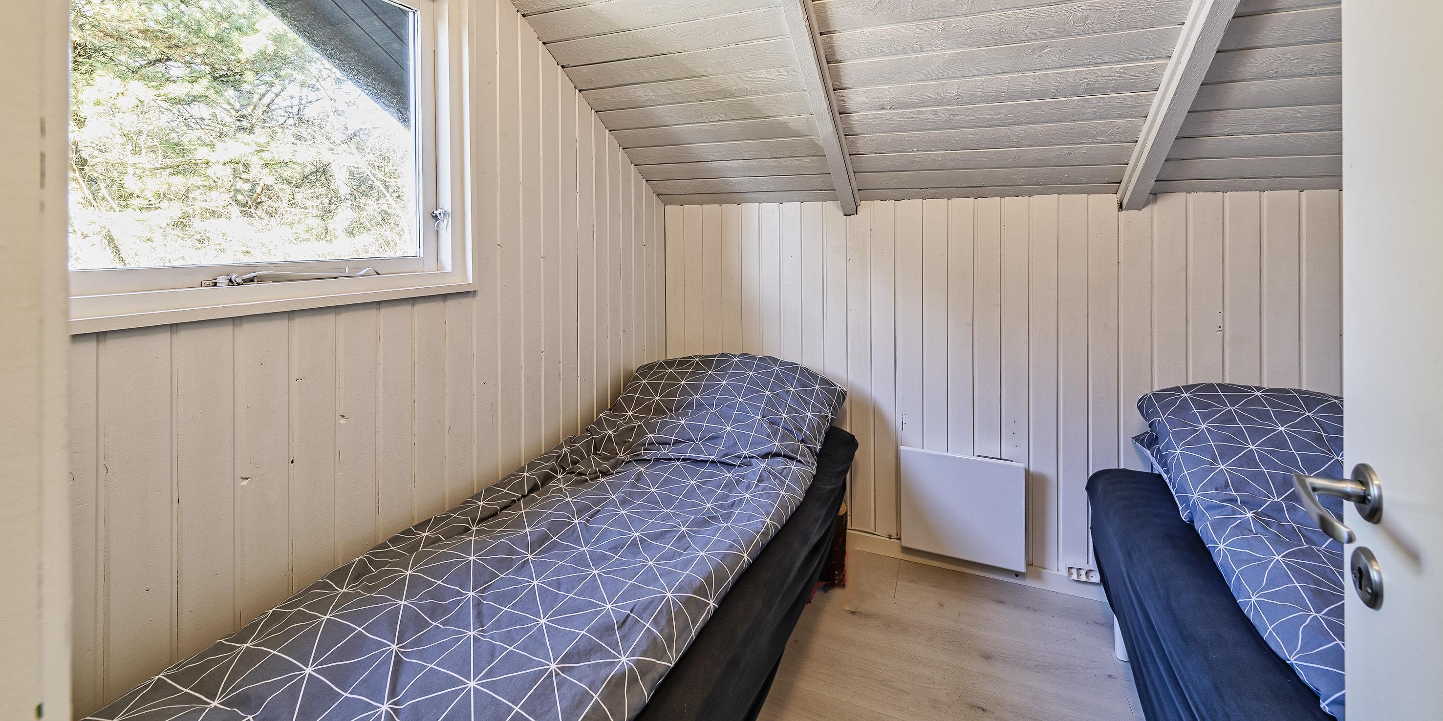 2 soveværelser. 1 med dobbeltseng 160x200 cm. 1 med 2 enkeltsenge (á 90x200 cm)
