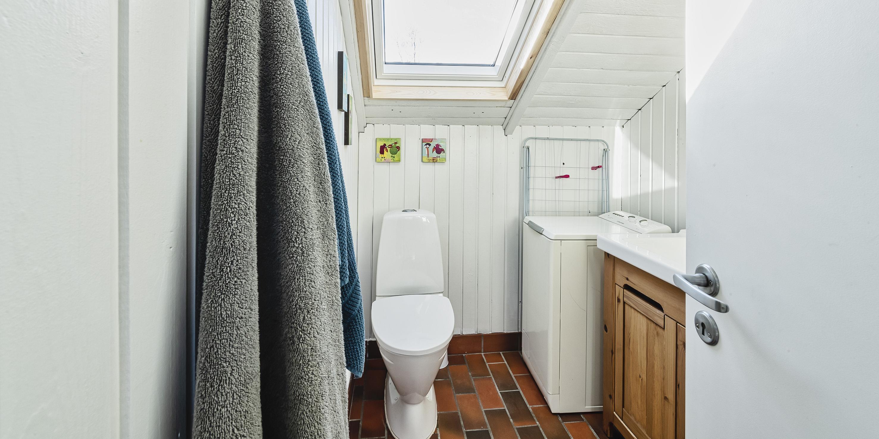 Bad med toilet, bruser og vask