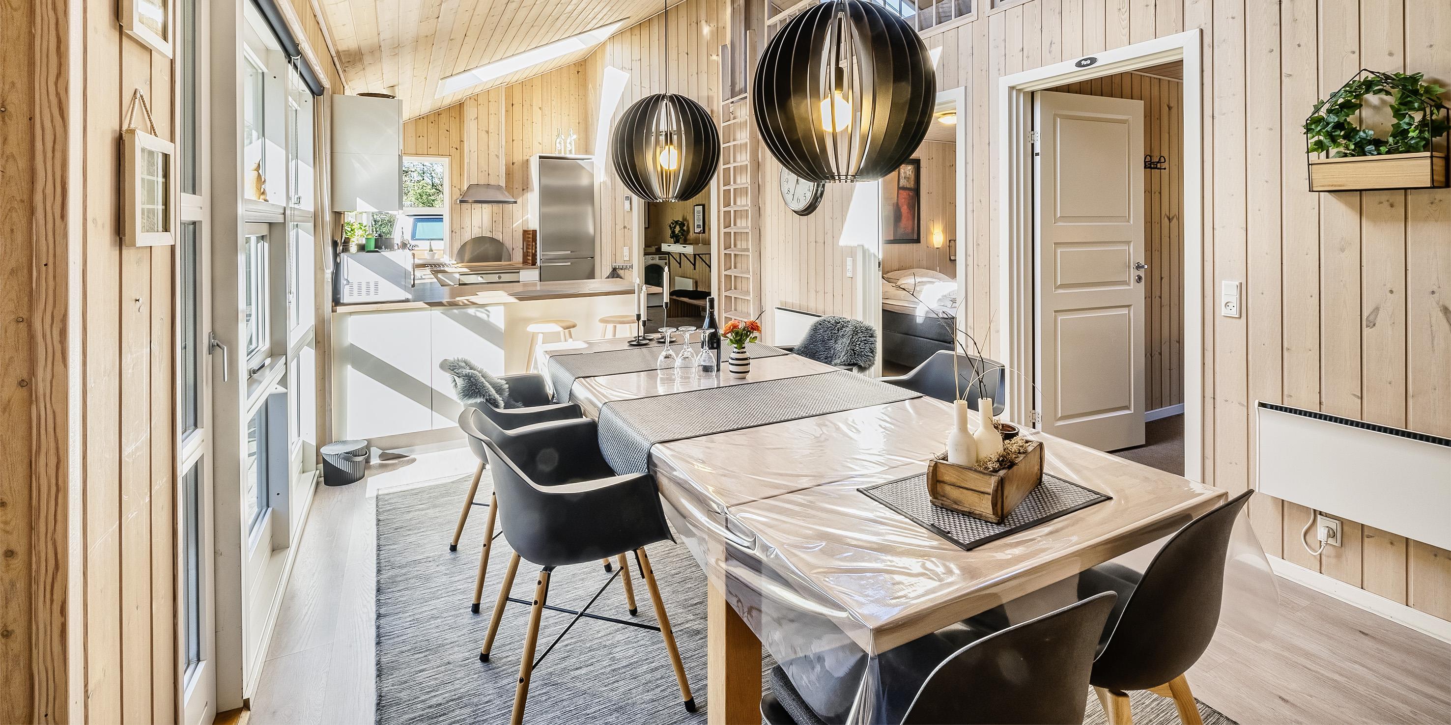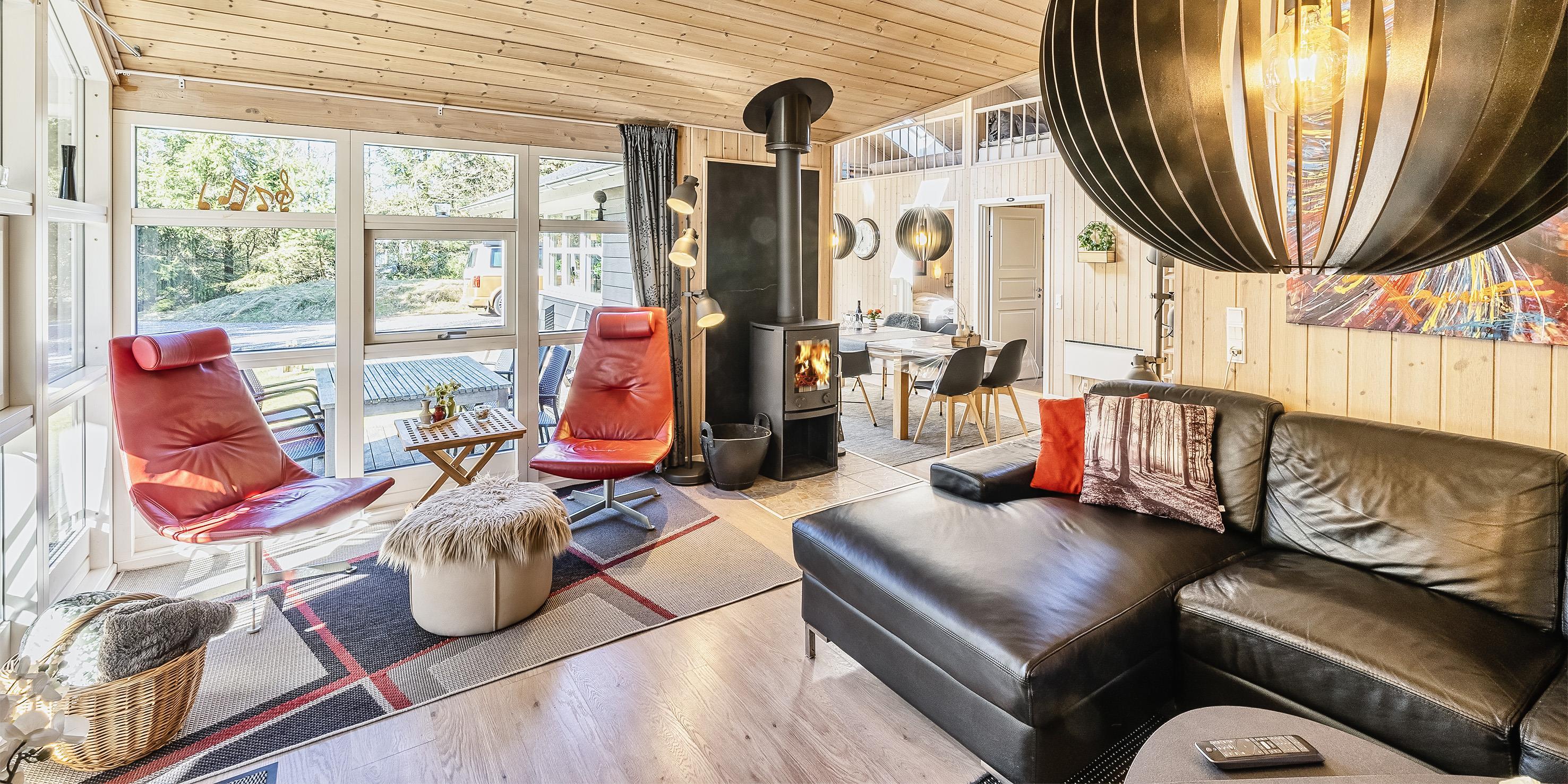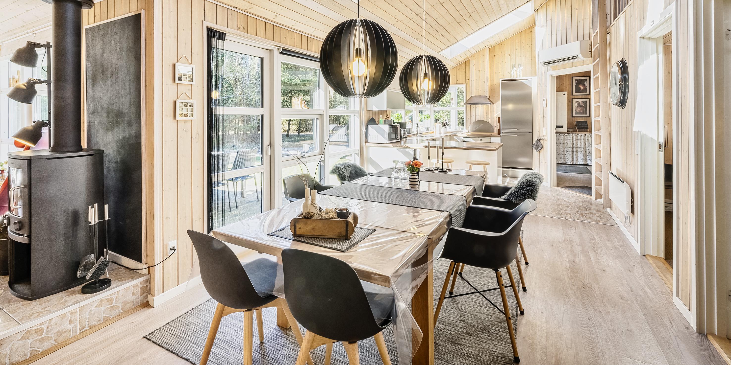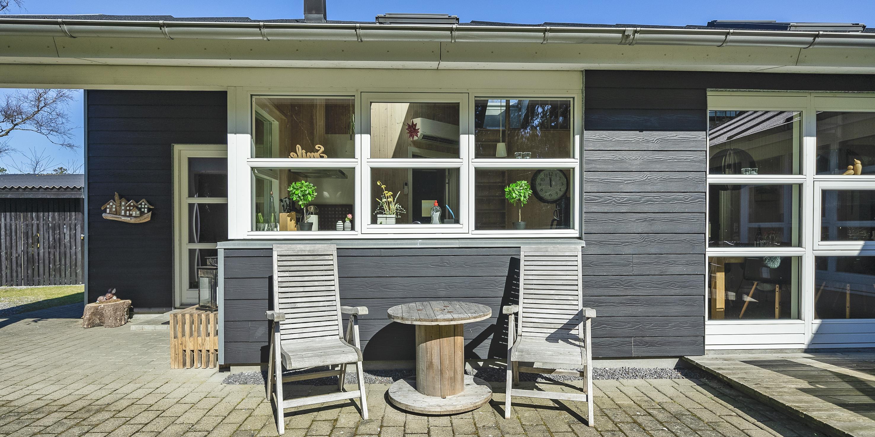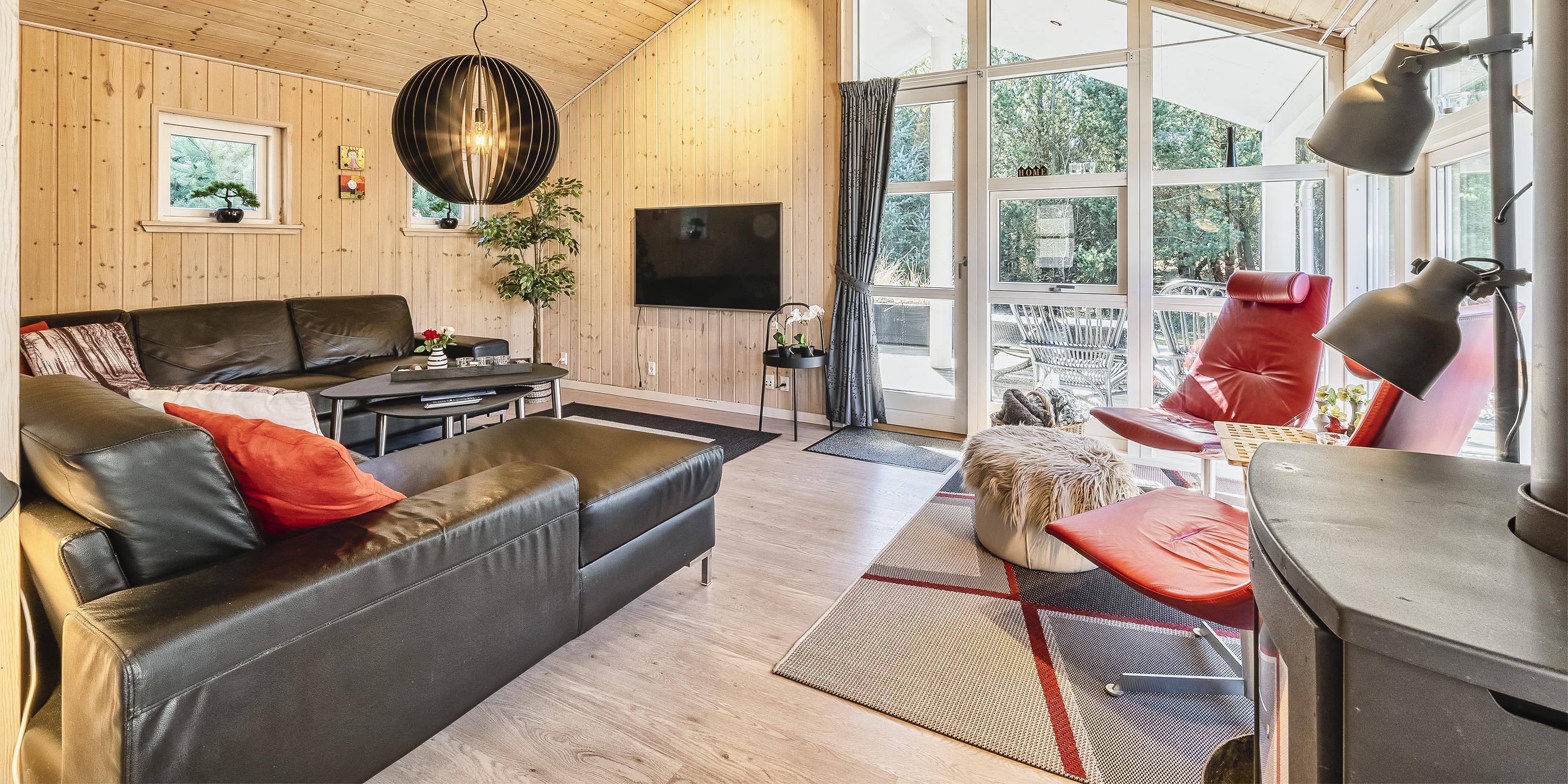 Moderne og velindrettet sommerhus til 6 personer, ca. 1.500 meter fra stranden, beliggende på stor delvis lukket grund. Mange træer er fældet rundt om huset sådan at solen rigtig kan komme ind og man kan nyde det på den skønne terrasse. Stor træterrasse i flere niveauer og en delvis overdækket terrasse. Huset indeholder: Entre indgangsparti med garderobeplads og vaskemaskine. Fra entré kommer man over i det store køkken-alrum med loft til kip, delvis flisegulve som parketgulve. Lyst og venligt vinkelkøkken med bageovn, keramisk kogeplade, opvaskemaskine, mikroovn og køle-/fryseskab. Stor spisestue med godt lysindfald fra 2 tagvinduer. Fra køkken-alrummet er der 2 hemse. Fra spisestuen går man et trin op i en hyggelig opholdsstue med brændeovn, fjernsyn med tv kanaler over Stofa (lille pakke). Smart-Tv. Trådløs internet (50/50). Playstation 3 samt diverse spil. Varmepumpe . Der er 3 soveværelser: DS + DS + DS. Master badeværelse med bruser/wc, sauna og spa. Gæstetoilet med bruser. Der er tilladt 2 små hunde med en ryghøjde på max. 40 cm – eller én stor hund. Katte er ikke tilladt! Cykelskur med mere ude på grunden. Byggeår 2009.