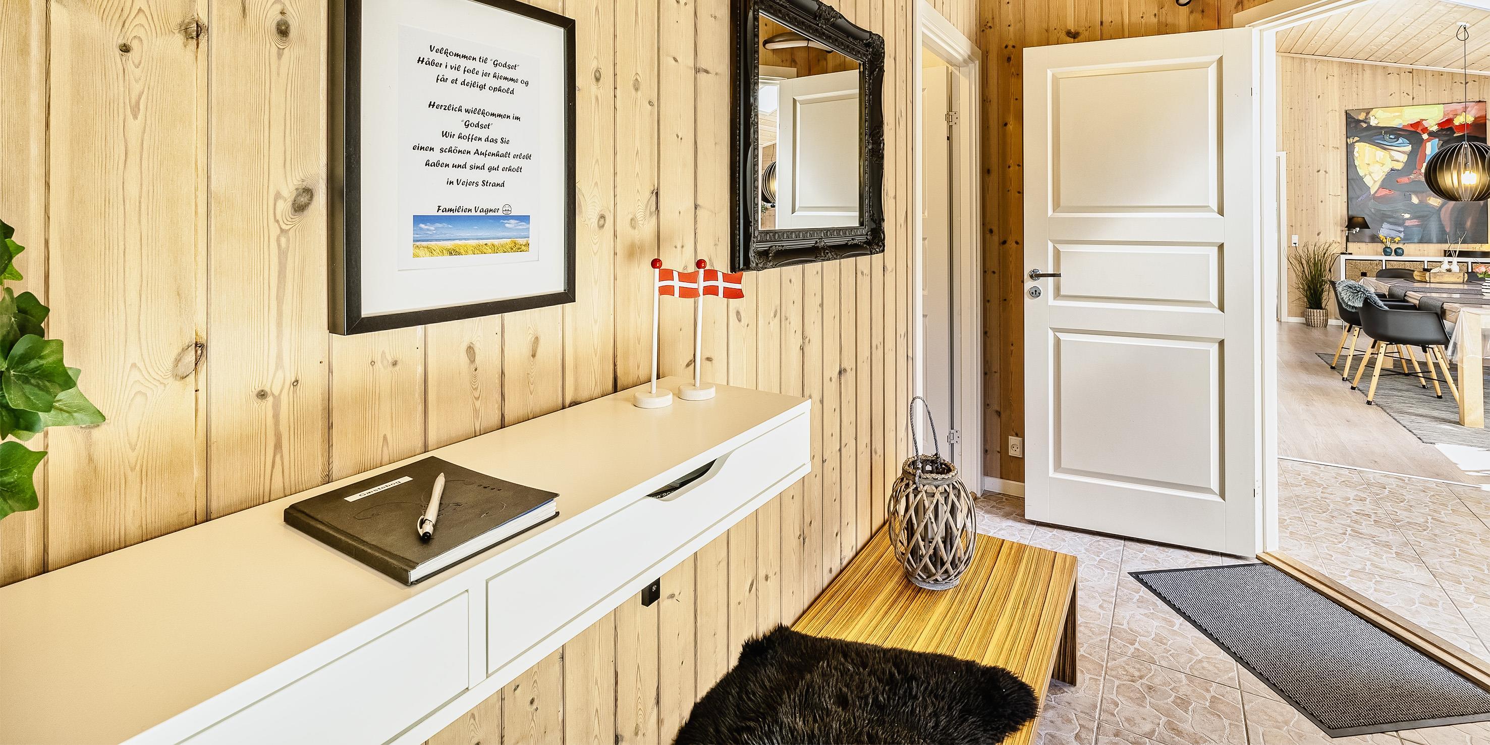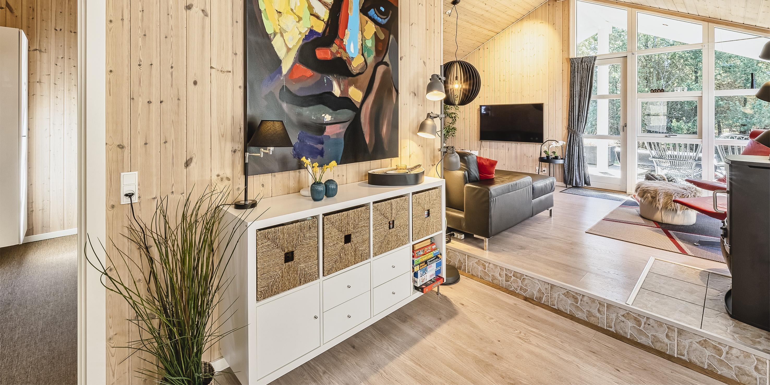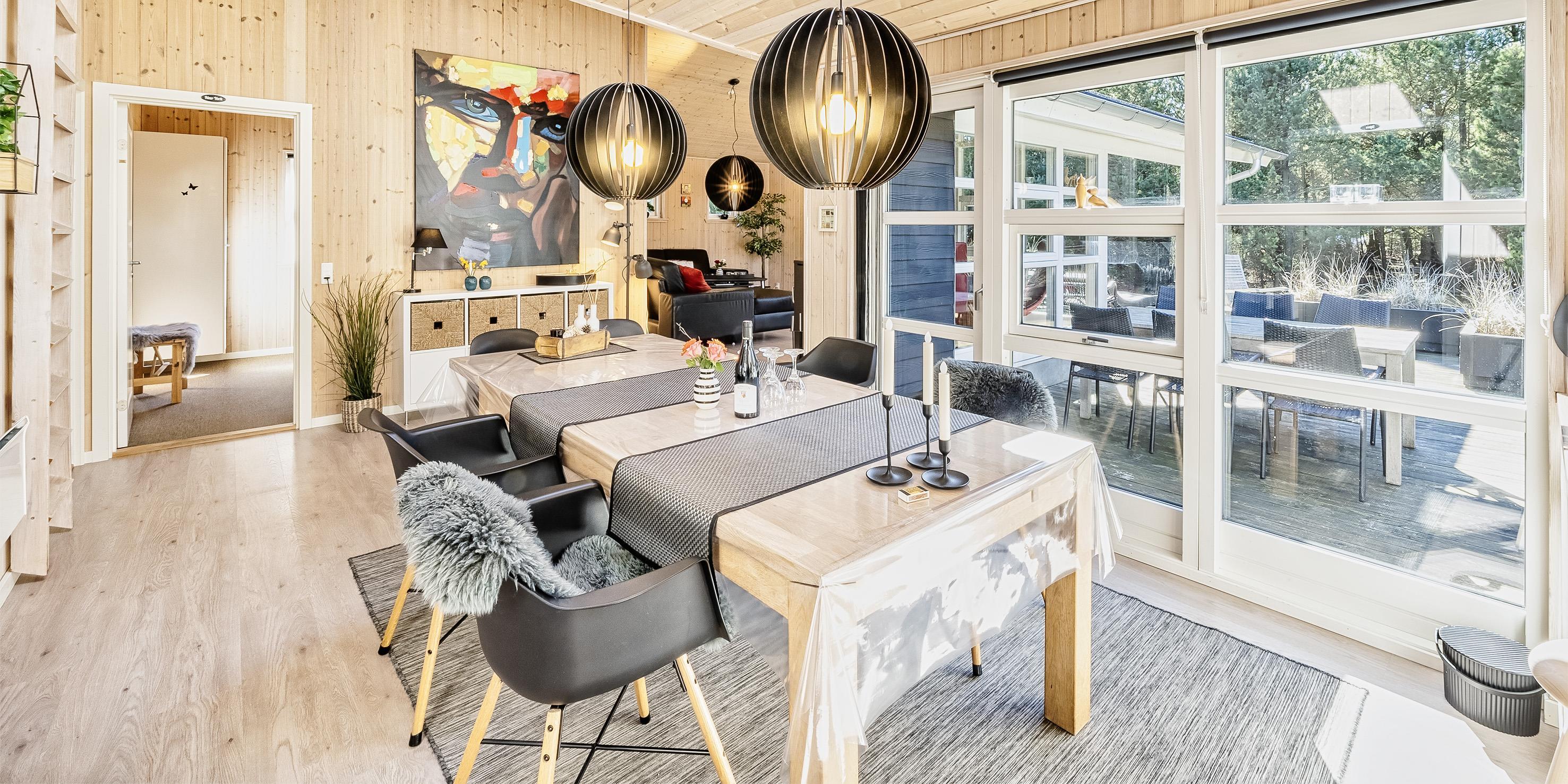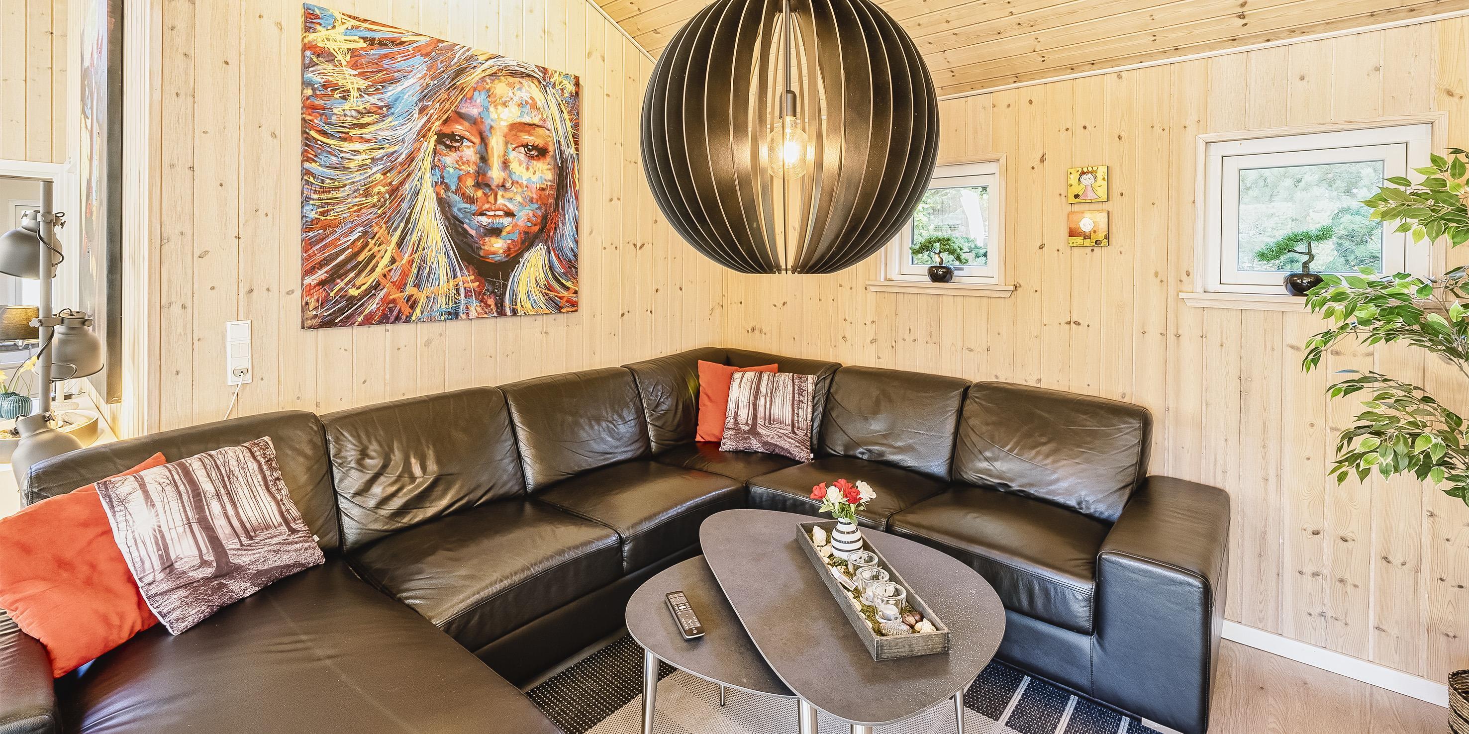 Moderne og velindrettet sommerhus til 6 personer, ca. 1.500 meter fra stranden, beliggende på stor delvis lukket grund. Mange træer er fældet rundt om huset sådan at solen rigtig kan komme ind og man kan nyde det på den skønne terrasse. Stor træterrasse i flere niveauer og en delvis overdækket terrasse. Huset indeholder: Entre indgangsparti med garderobeplads og vaskemaskine. Fra entré kommer man over i det store køkken-alrum med loft til kip, delvis flisegulve som parketgulve. Lyst og venligt vinkelkøkken med bageovn, keramisk kogeplade, opvaskemaskine, mikroovn og køle-/fryseskab. Stor spisestue med godt lysindfald fra 2 tagvinduer. Fra køkken-alrummet er der 2 hemse. Fra spisestuen går man et trin op i en hyggelig opholdsstue med brændeovn, fjernsyn med tv kanaler over Stofa (lille pakke). Smart-Tv. Trådløs internet (50/50). Playstation 3 samt diverse spil. Varmepumpe . Der er 3 soveværelser: DS + DS + DS. Master badeværelse med bruser/wc, sauna og spa. Gæstetoilet med bruser. Der er tilladt 2 små hunde med en ryghøjde på max. 40 cm – eller én stor hund. Katte er ikke tilladt! Cykelskur med mere ude på grunden. Byggeår 2009.