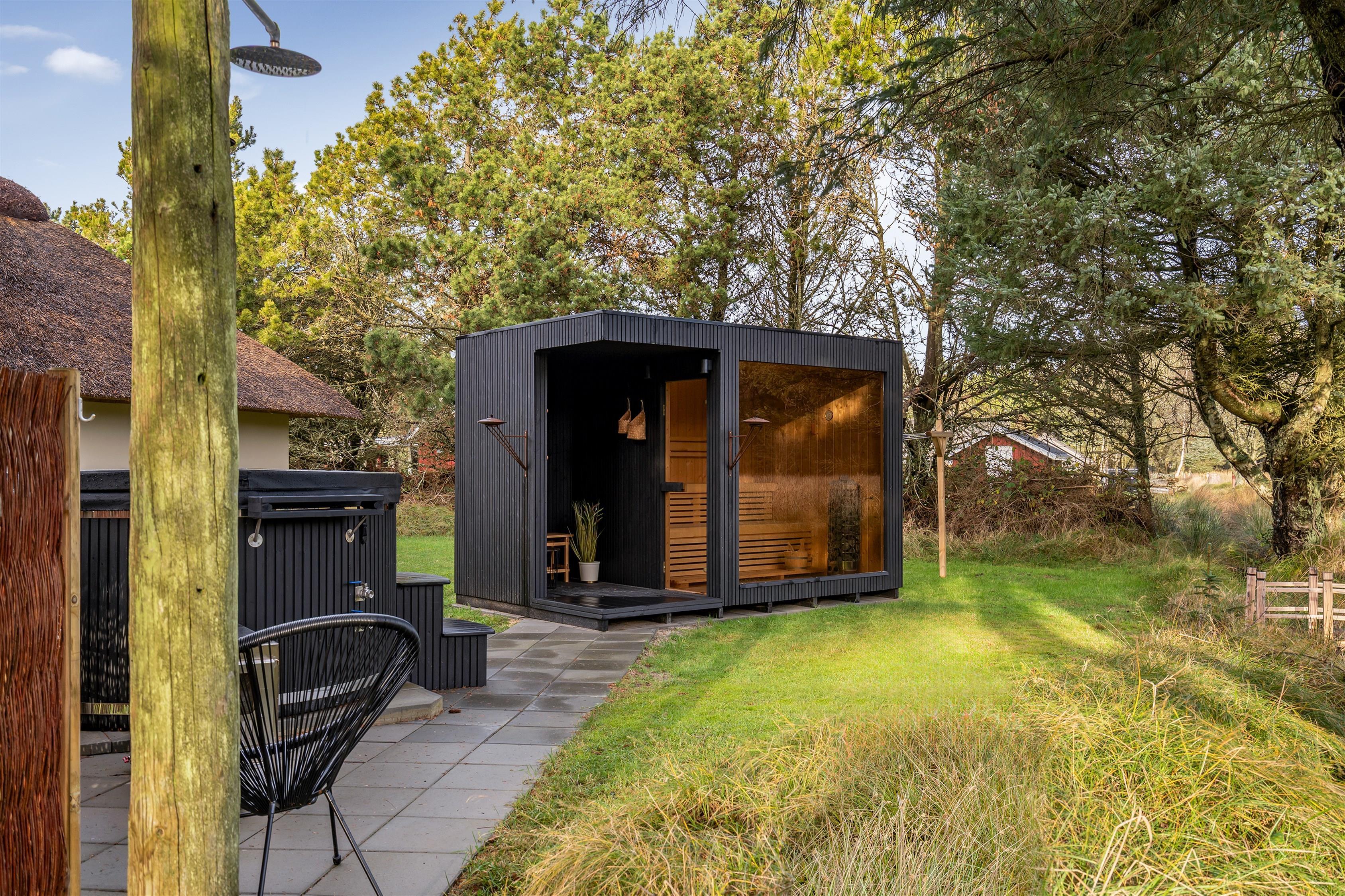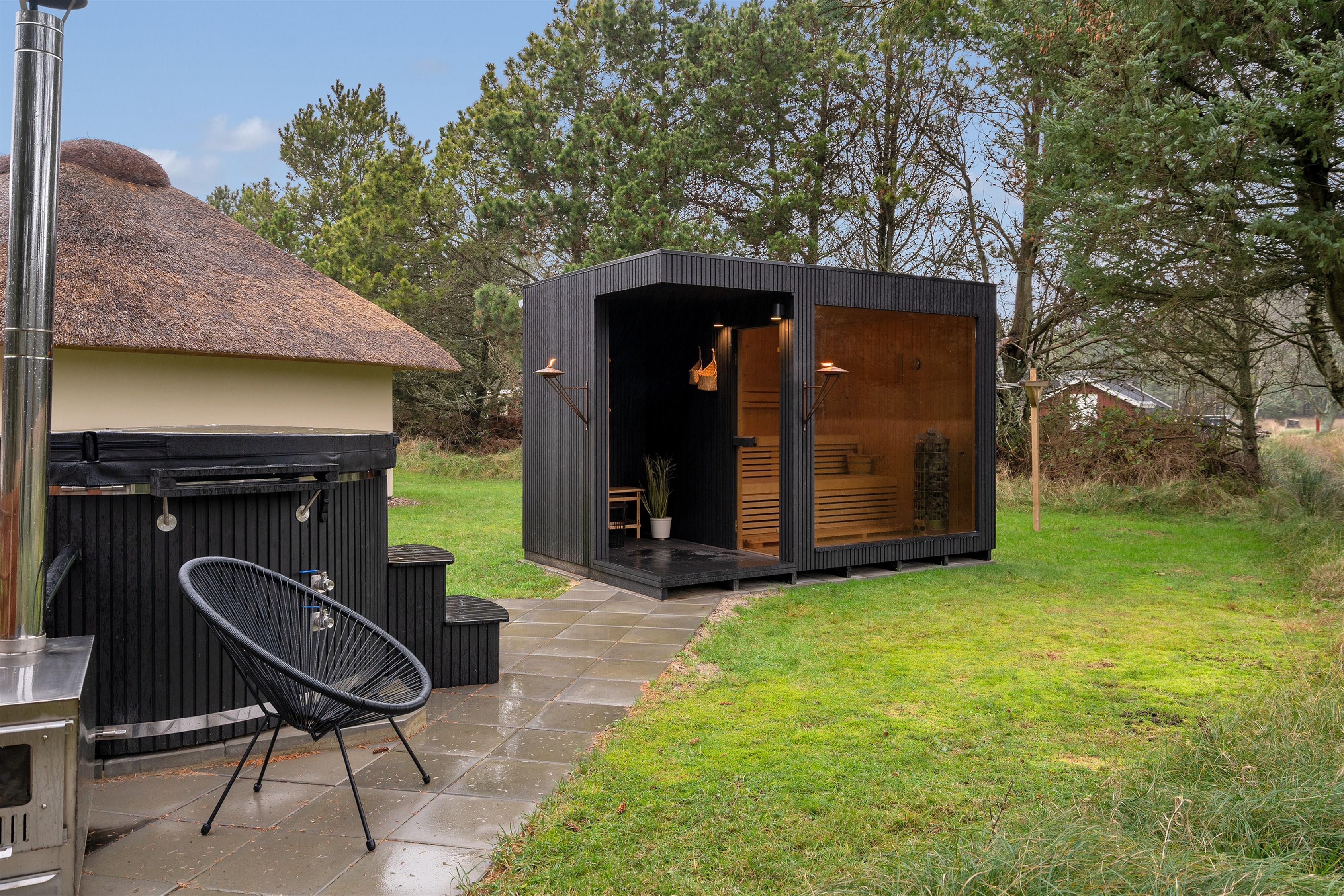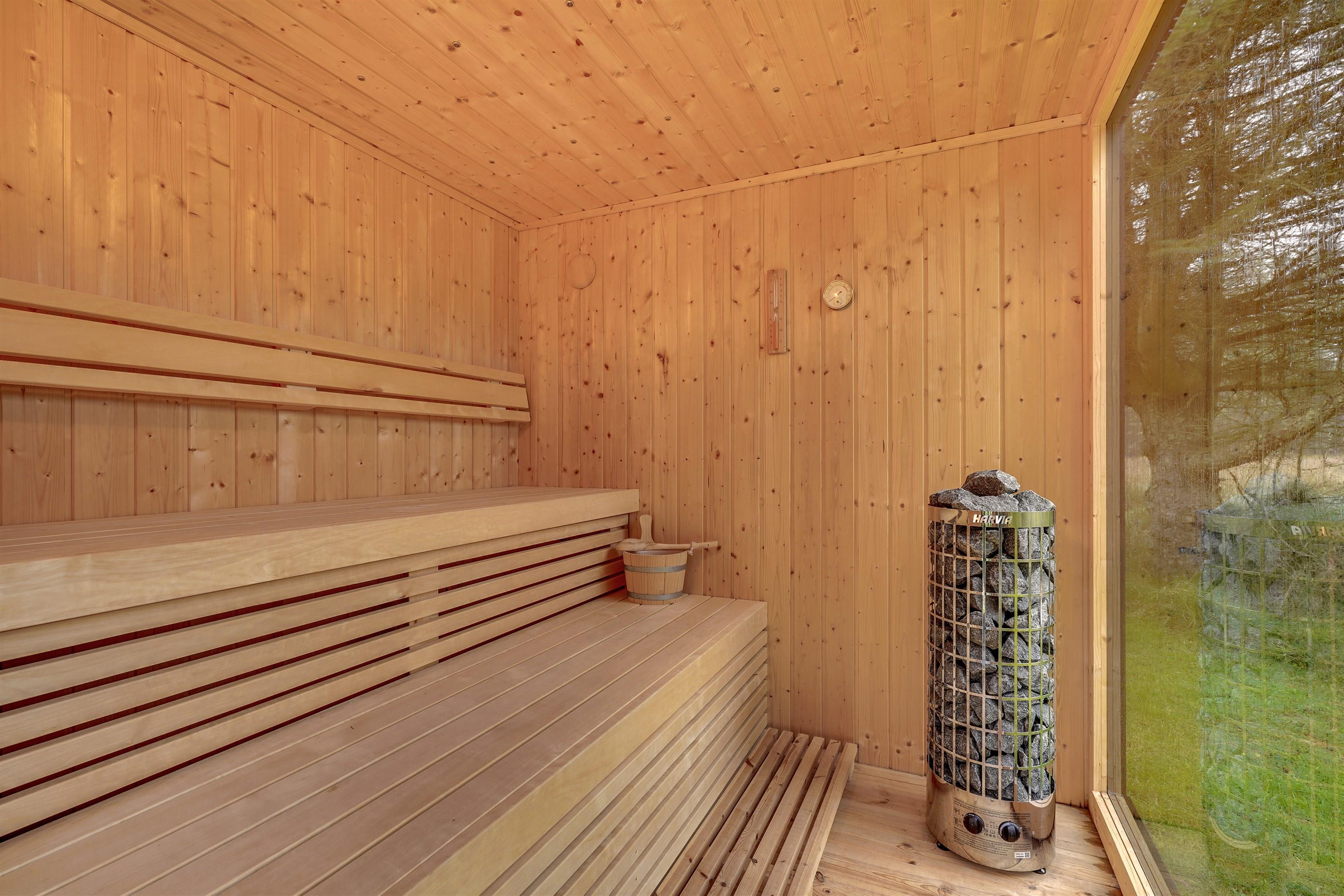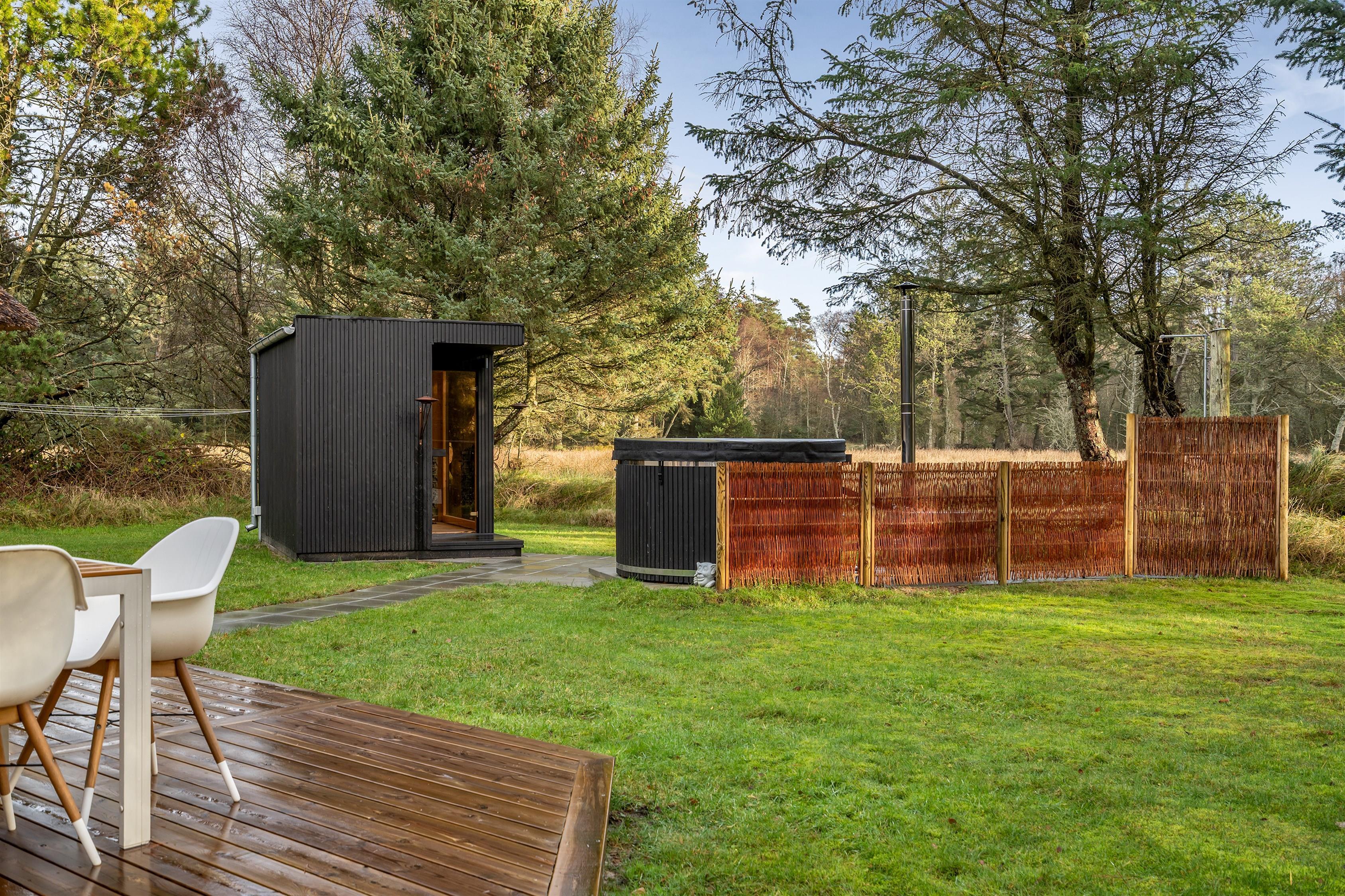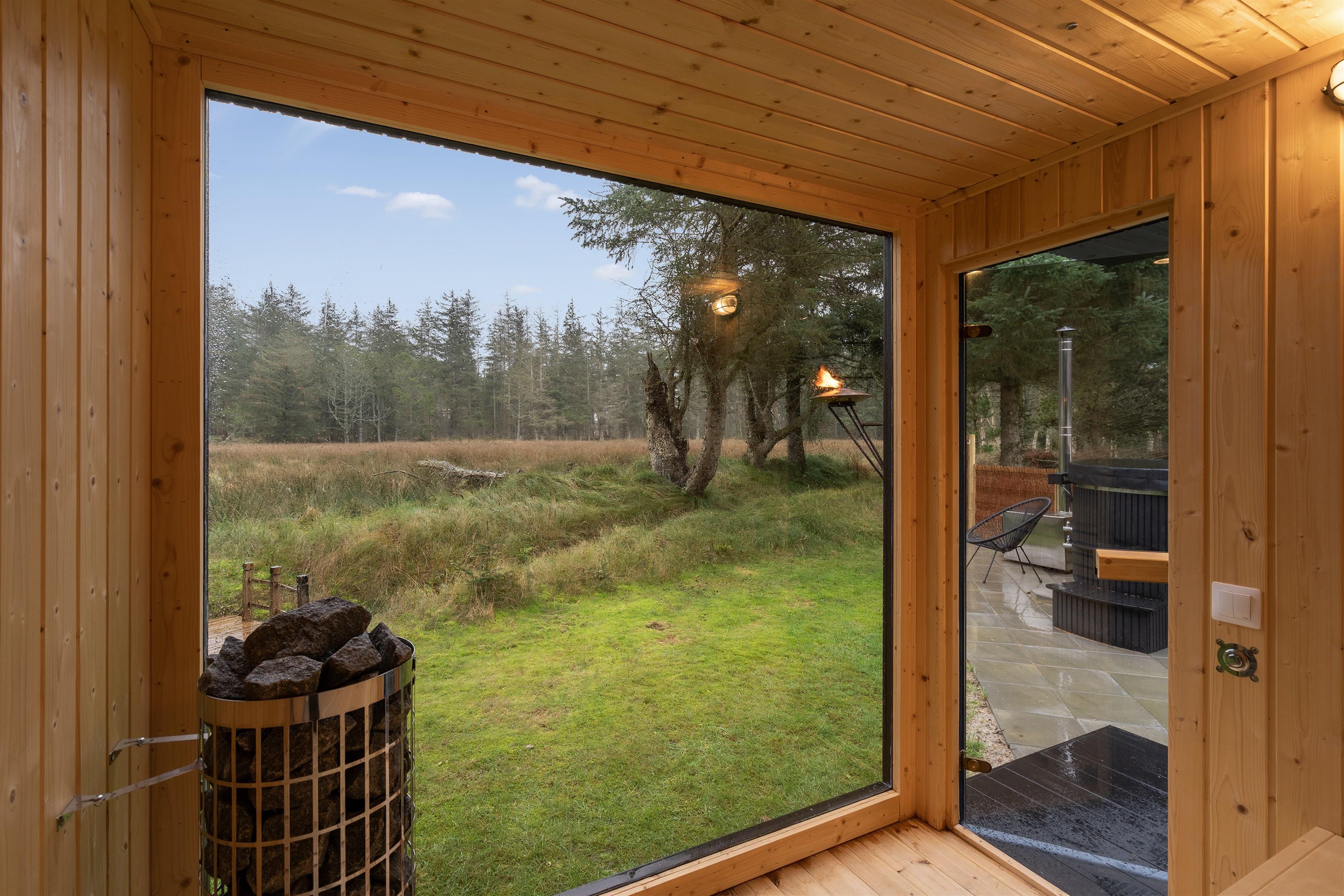 Forkæl jer selv og tænd op for den fritliggende sauna eller vildmarksbaddet og nyd udsigten over det naturskønne område og skoven.
