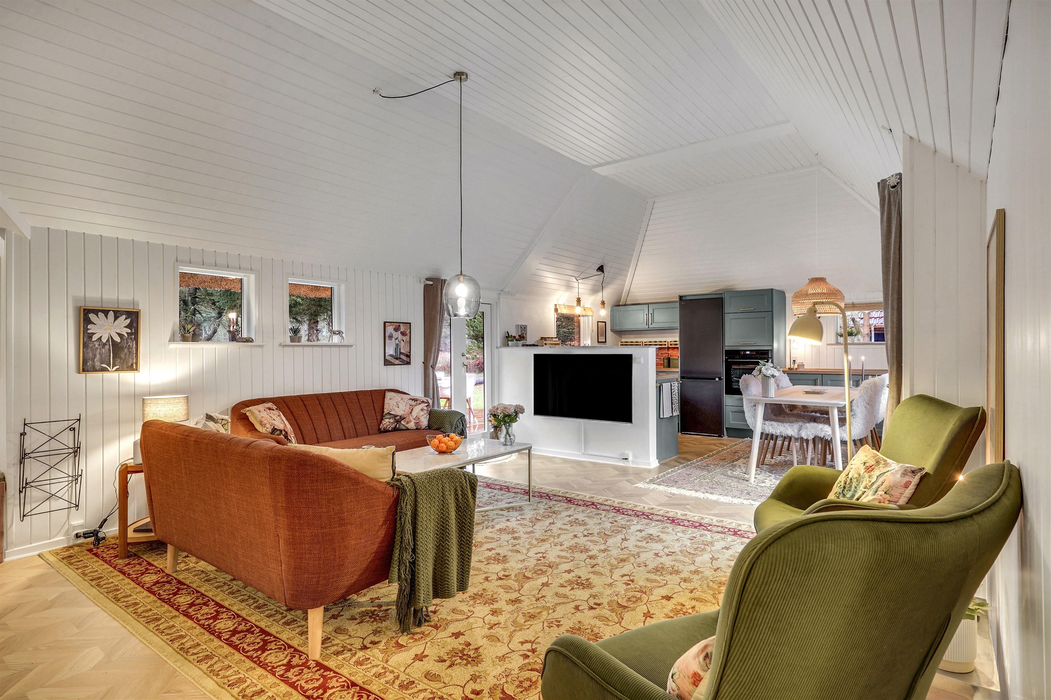 Indenfor er huset funktionelt indrettet og opført i hyggelig og charmerende stil der oser af ægte sommerhusstemning.