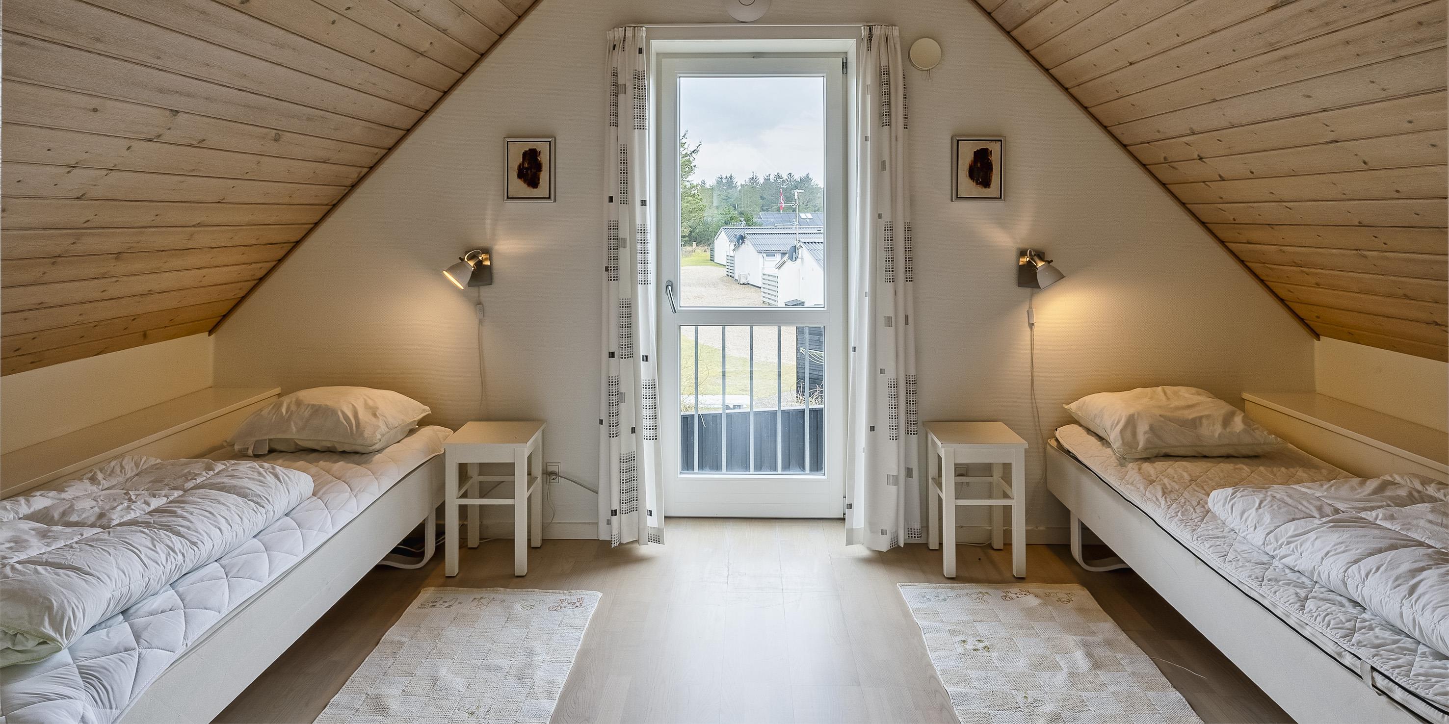 3 soveværelser.. 2 med dobbeltseng 180x200 cm. 1 med 2 enkeltsenge. (á 90x200)