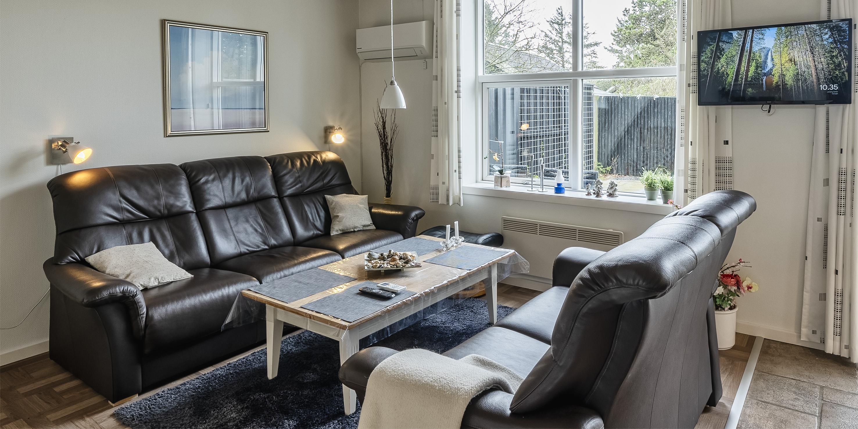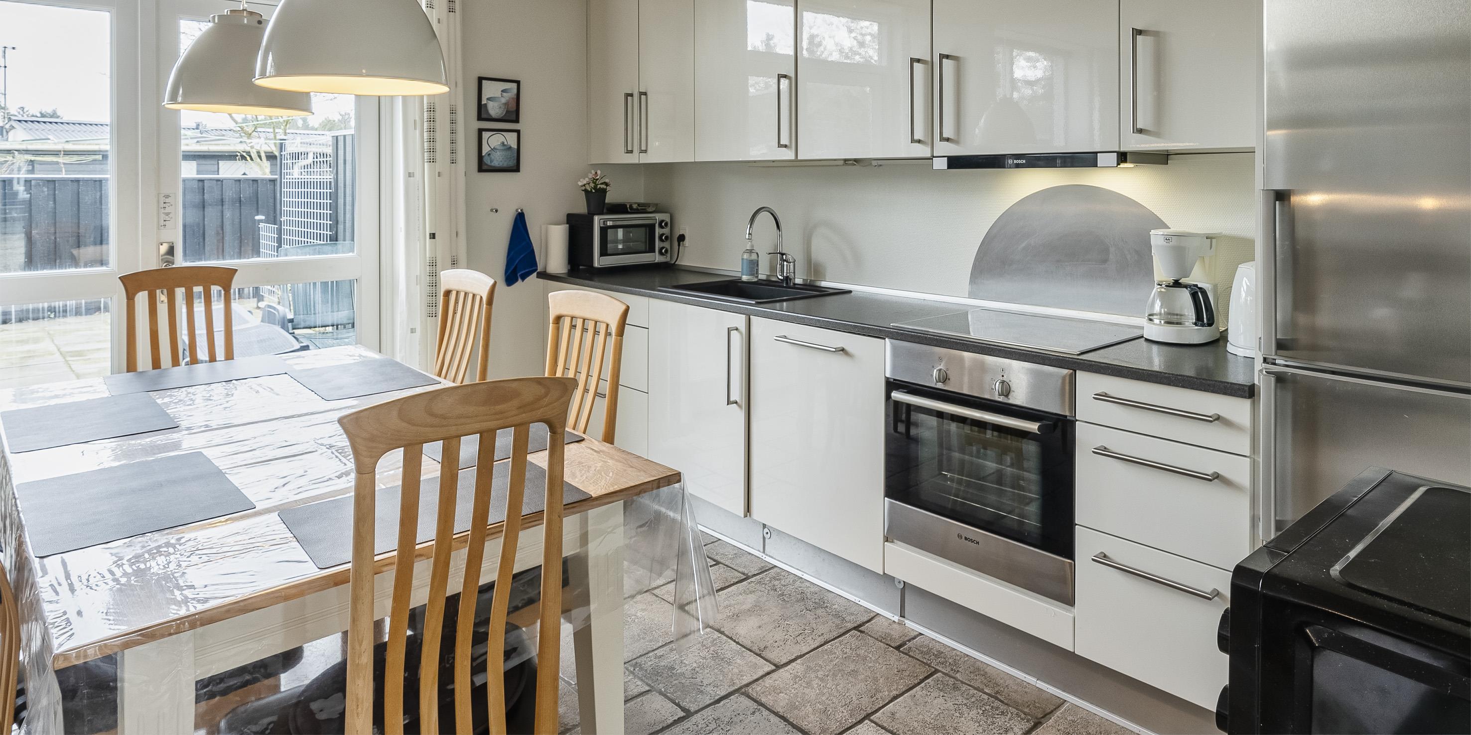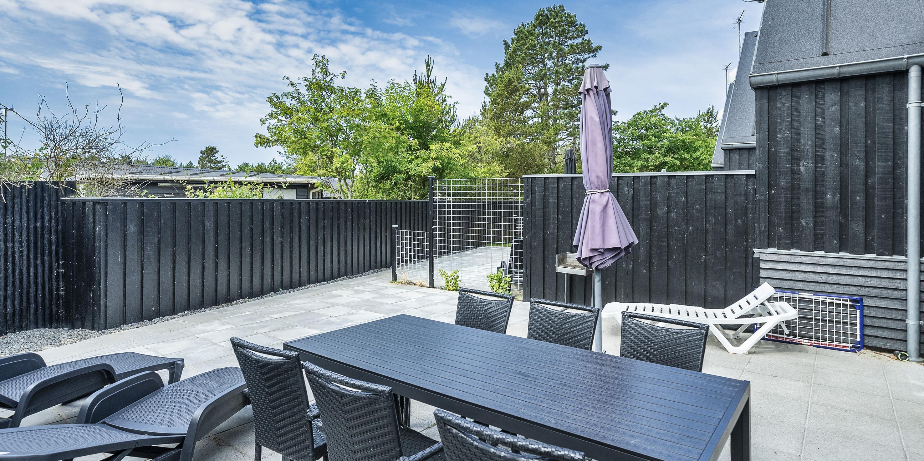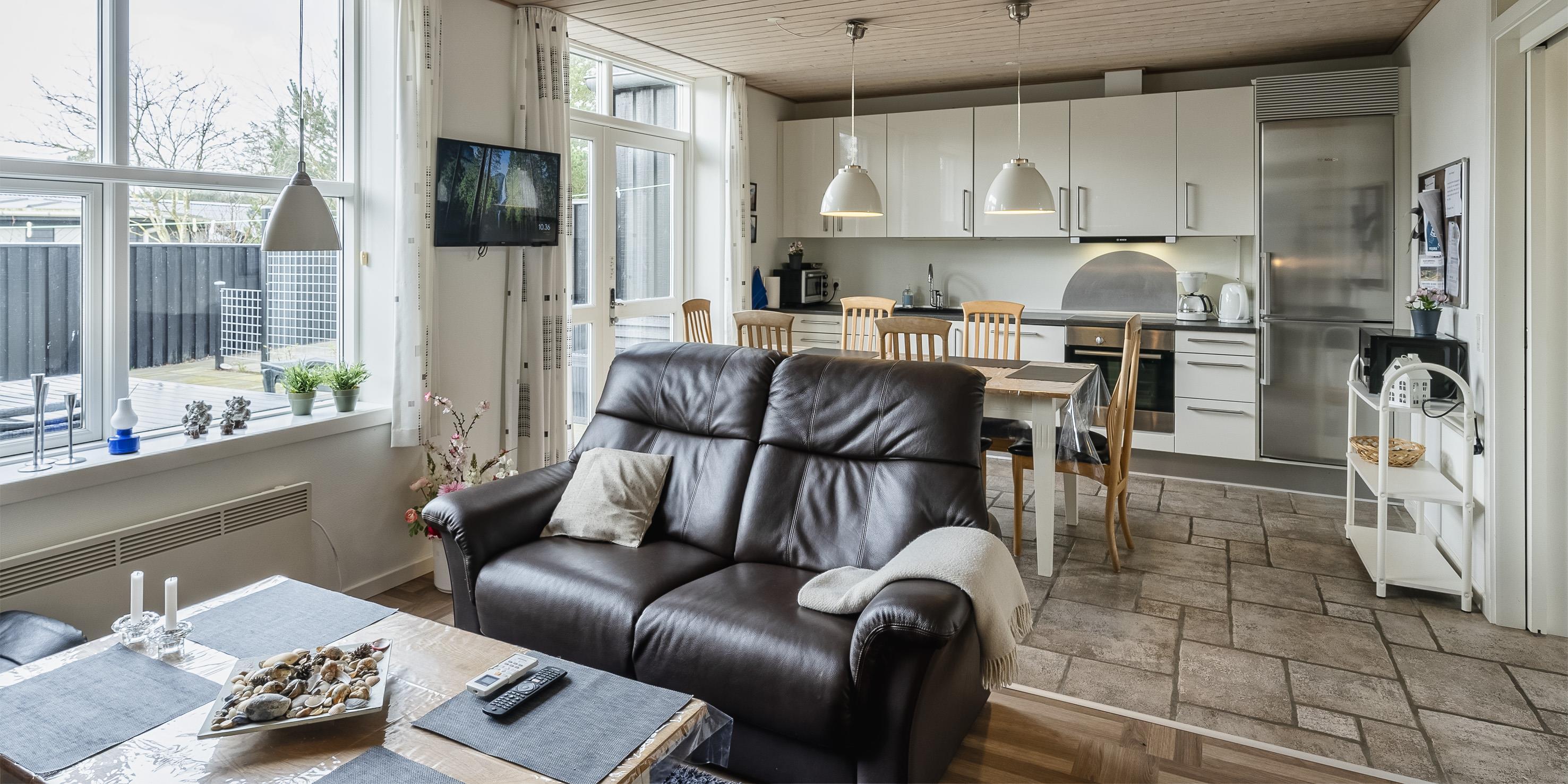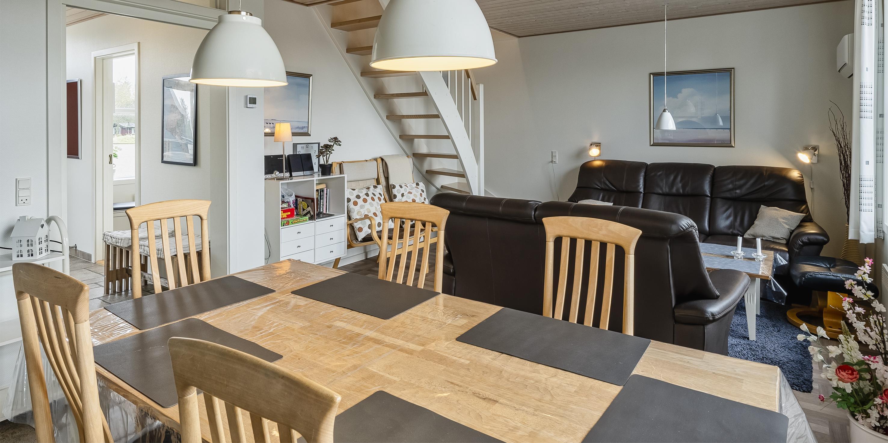 Stueetagen: Stor entre med god plads til garderobe, her forefindes et teknikskab. Fra entreen kommer man ind i huset opholdsrum. Her forefindes et lyst åbent køkken. Køkkenet er indrettet med kølefryseskab, keramisk kogeplade, emhætte, mikroovn, miniovn, indbygningsovn og opvaskemaskine. Spisestue afdeling er i åben forbindelse med køkkenet og med kig til haven igennem det store vinduesparti, som ydermere giver adgang den sydvendte terrasse. Stuen er indrettet med 2 behagelige sofaer hvorfra der er kig til haven. I Opholdsrumemt forefindes et fjernsyn med Tv programmer igennem Yousee og trådløs internetforbindelse og Chromcast. I stueplan forefindes der ydermere 1 soveværelse med 1 dobbeltseng og 1 klædeskab. Dejligt badeværelse med bruser/wc og en vaskemaskine og tørretumbler. På 1. sal forefindes der ydermere 2 soveværelser, 1 soveværelse med 1 dobbeltseng samt 1 soveværelser med 2 enkeltsenge. ved huset er der 2 dejlige terrasser, foran huset kan morgensolen nydes og ydermere en sydvendt terrasse. Gratis adgang til badeland og bowling i Varde 2026. Rygning er IKKE tilladt! Byggeår 2009. Ekstra udgift for vandforbrug.