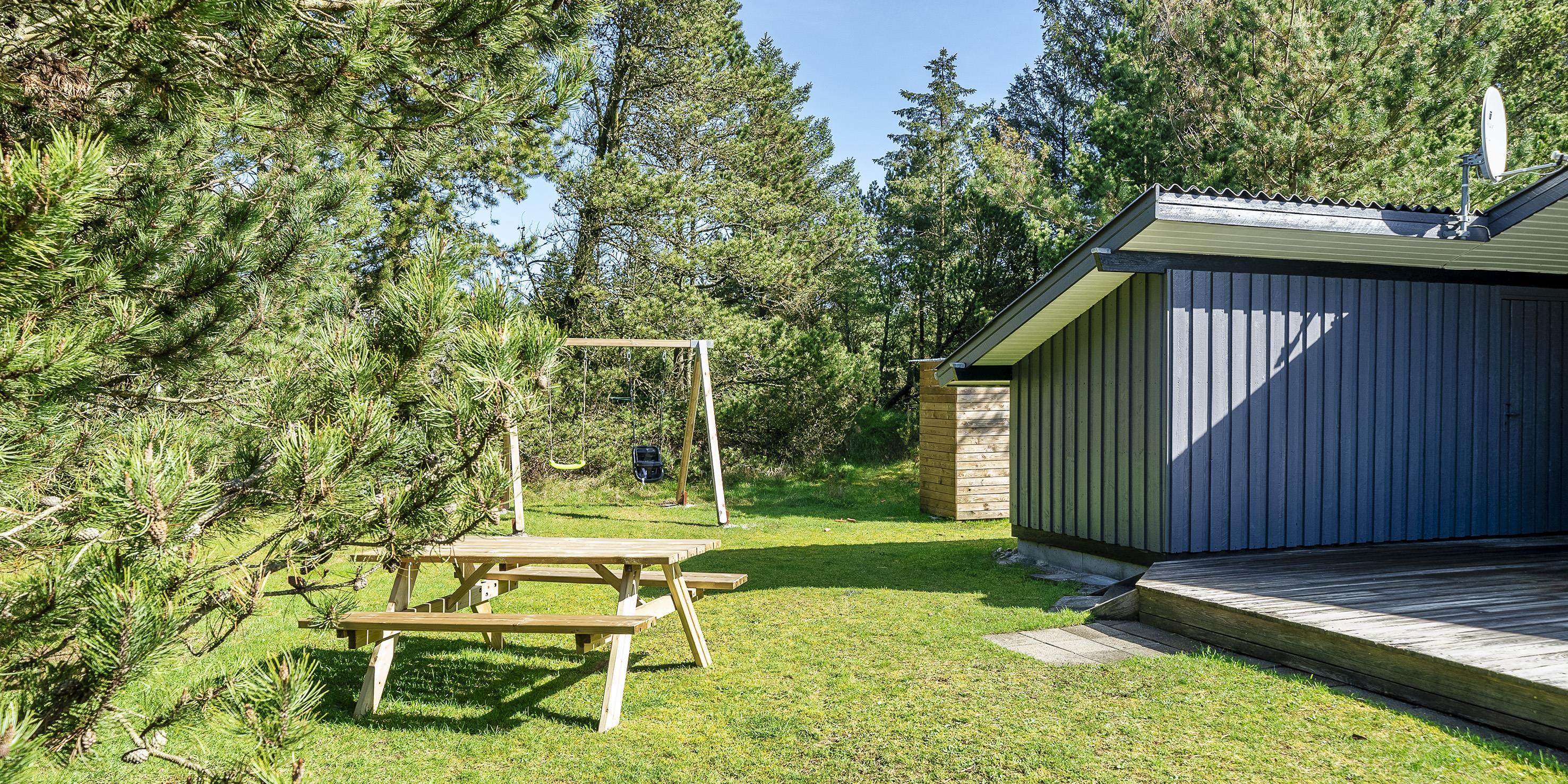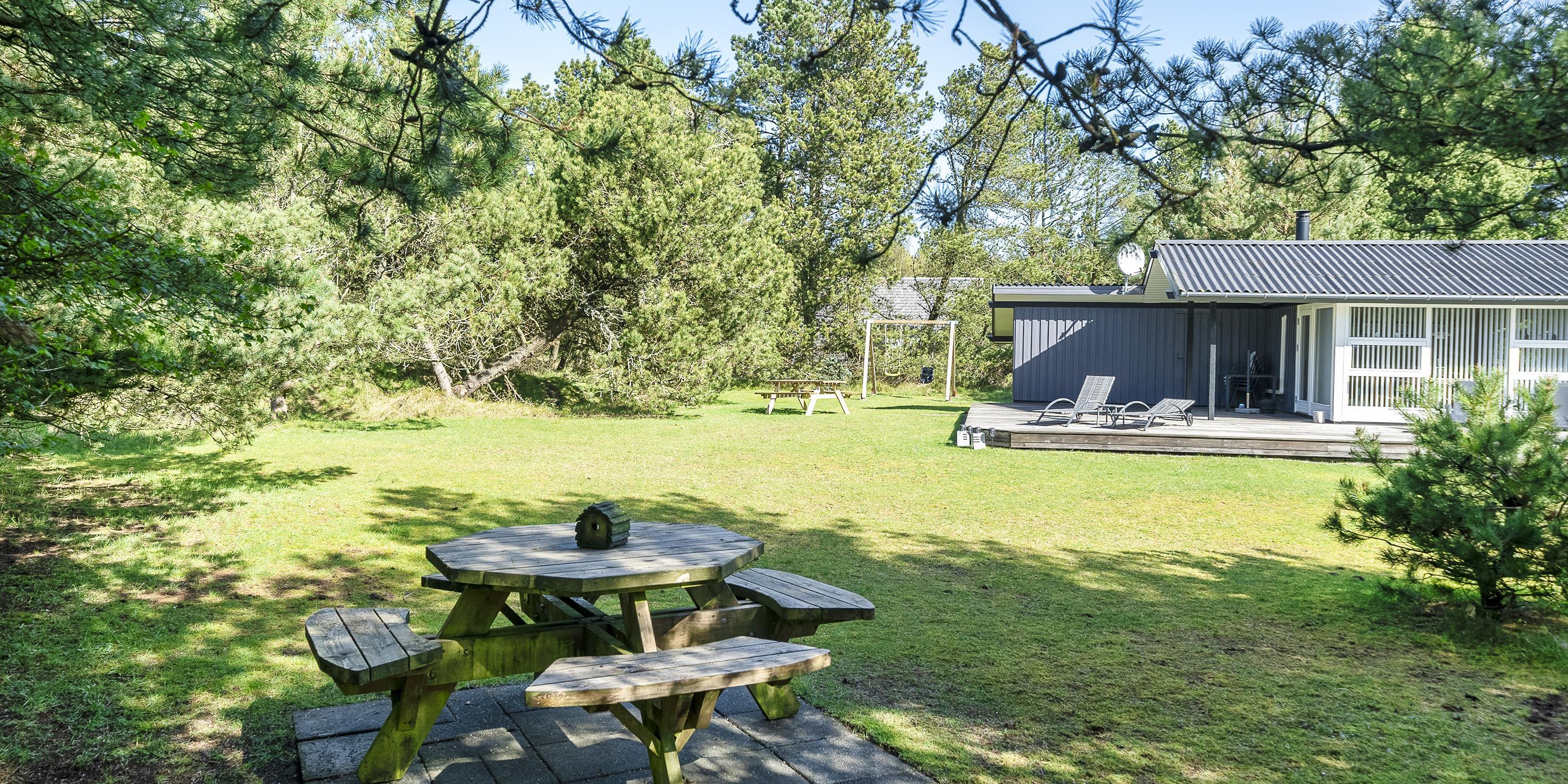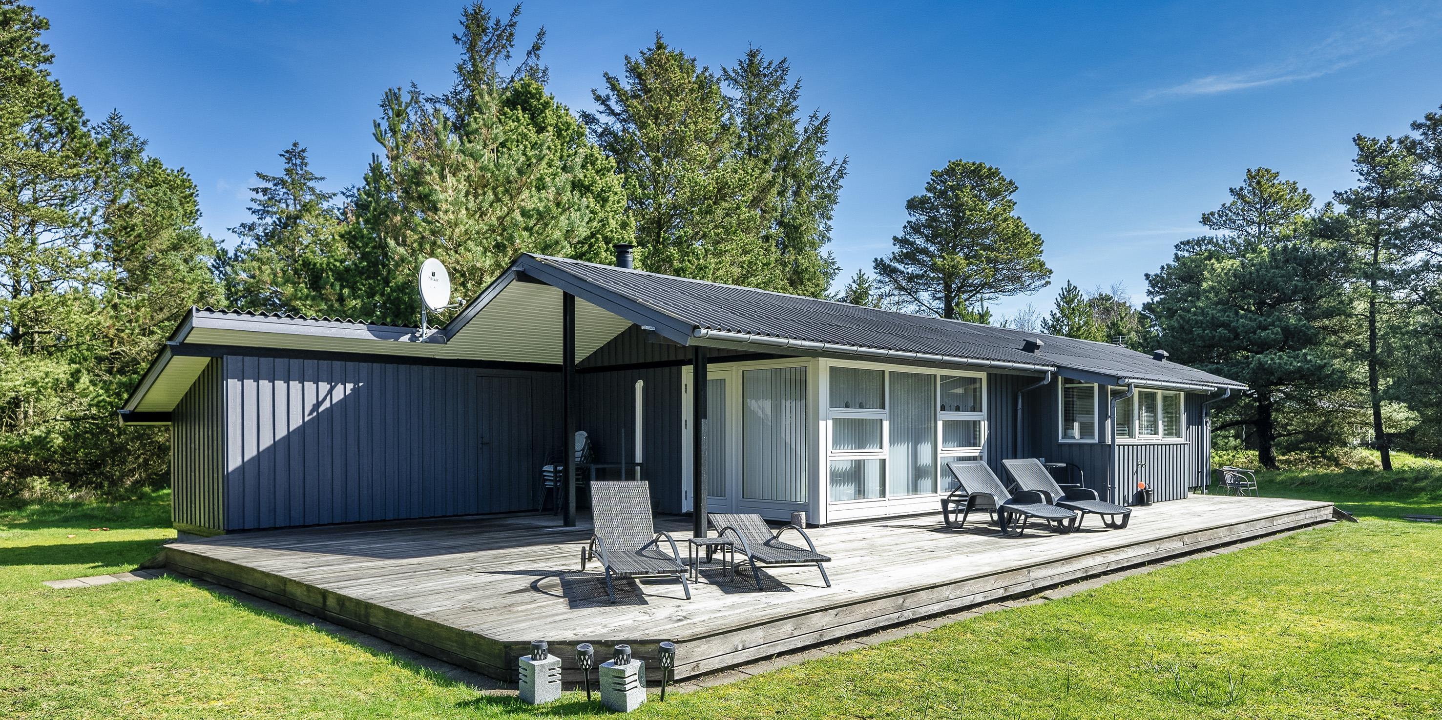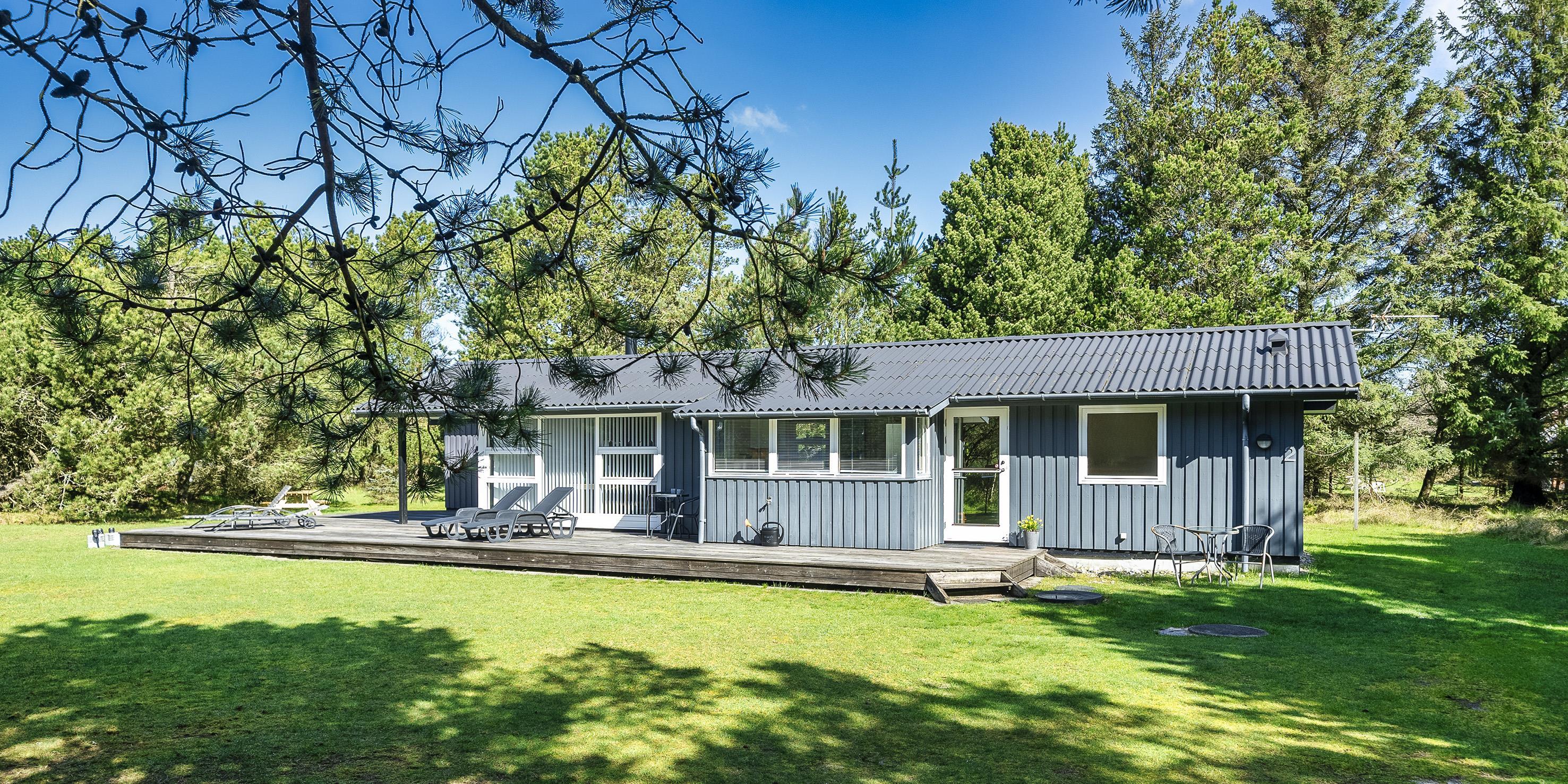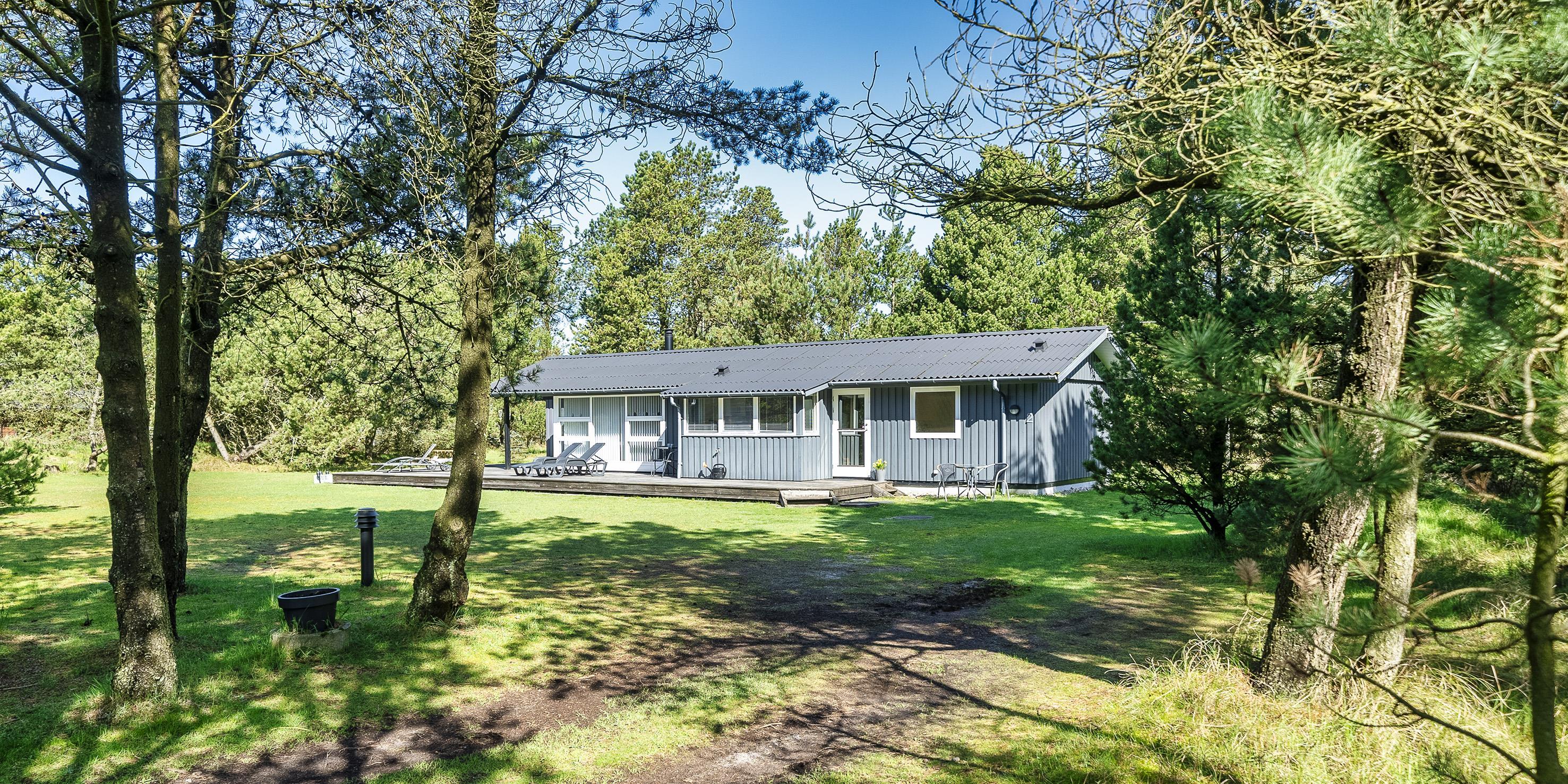 Dejligt og hyggeligt sommerhus på 70 m2 til 4 personer. Huset er beliggende på en skøn lukket grund, tæt ved skovområde, hvor der er gode stiforbindelser indtil Vejers sydlige plantagehede. Grunden er en stor naturgrund på 2572 kvm, som er omkranset af fyrtræer.