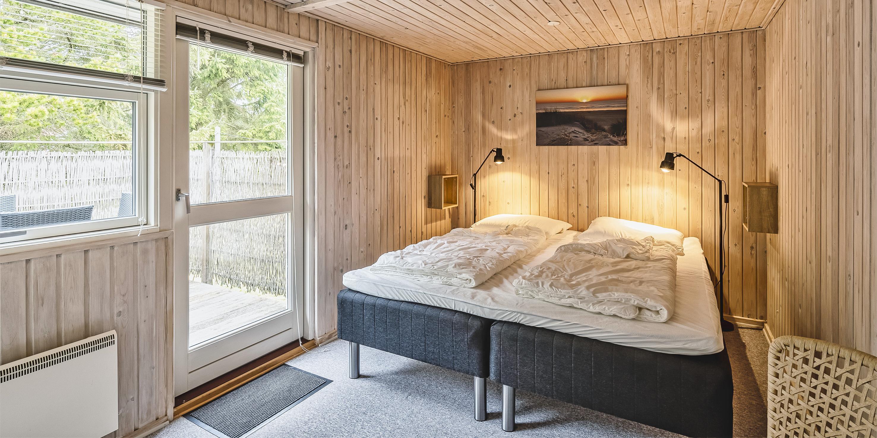 2 soveværelser. 1 med dobbeltseng 180x200 cm. 1 med 2 enkeltsenge (á 90x200 cm)