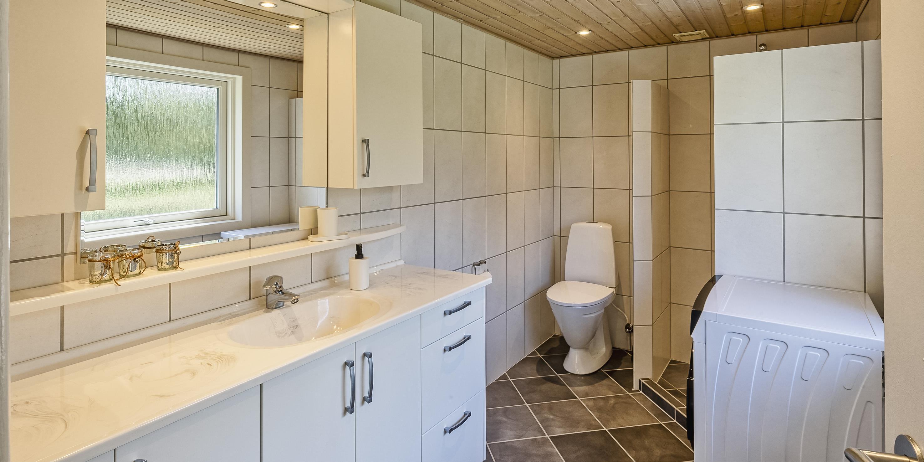 Bad med toilet, bruser og vask