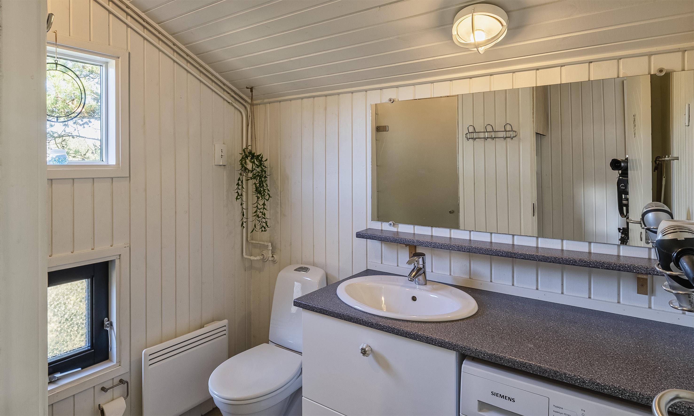 Bad med toilet, bruser og vask