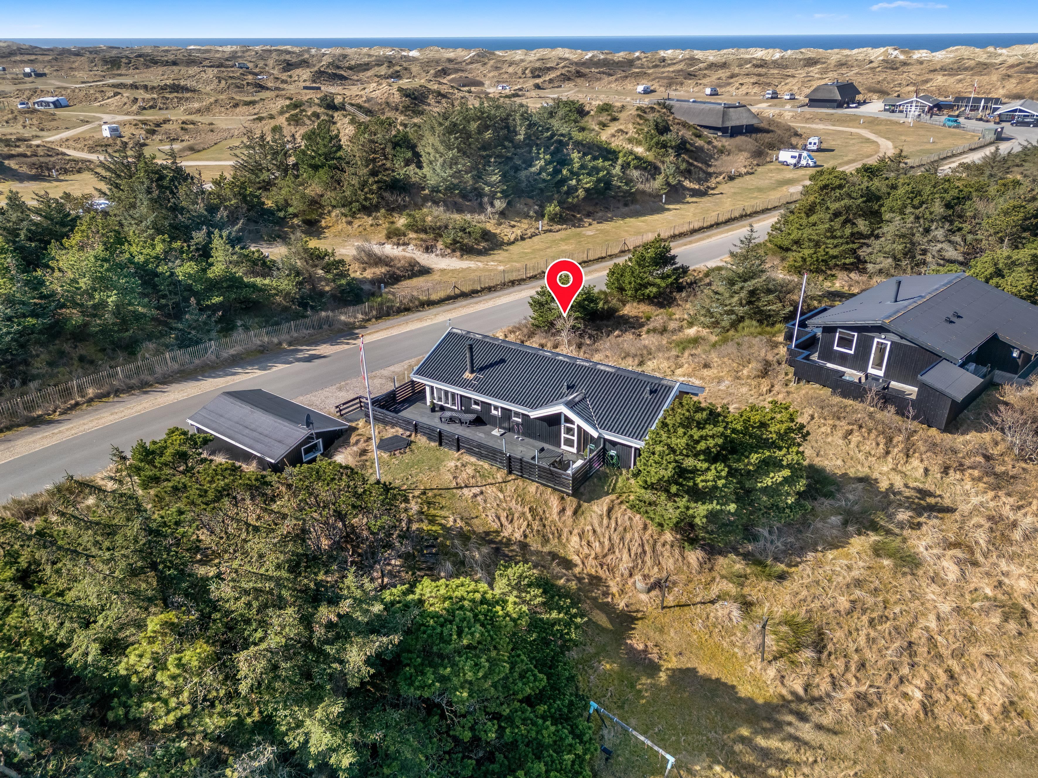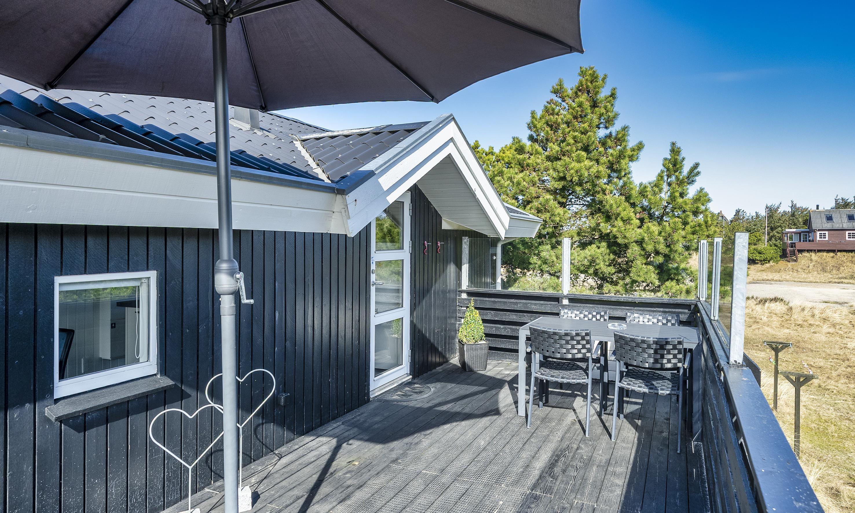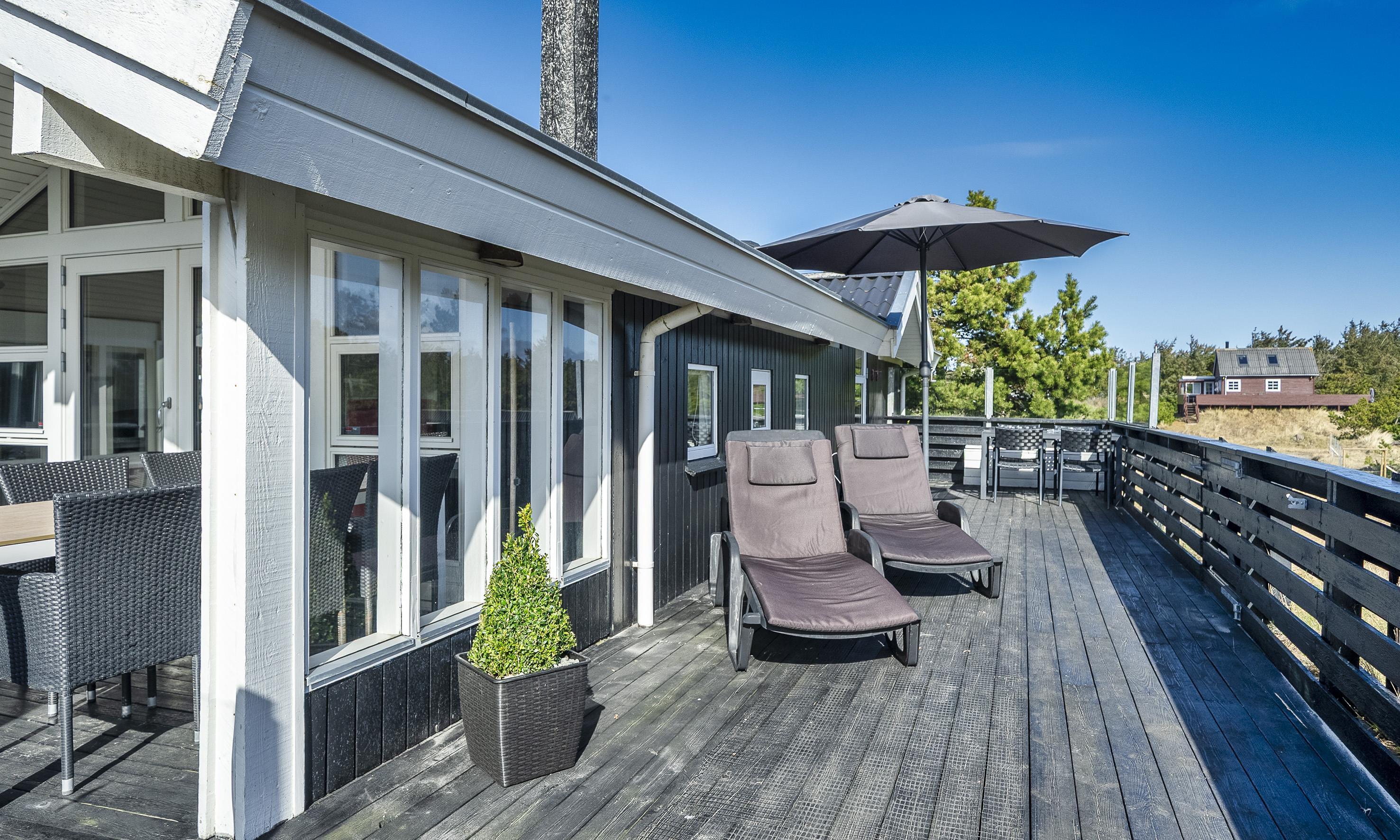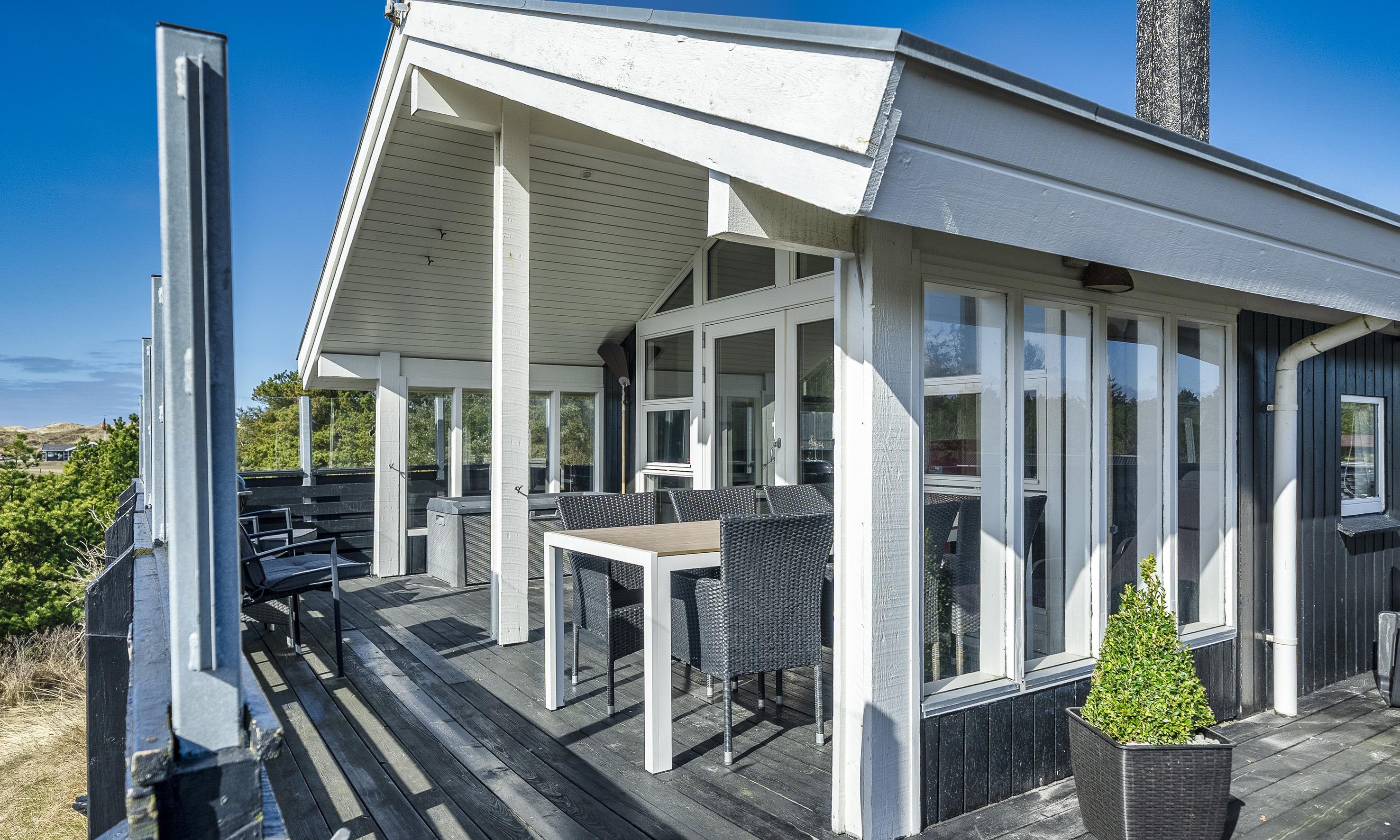 Med flere skønne terrasser omkring huset er der altid en perfekt plads til at nyde kaffen i morgensolen eller et glas vin i aftenskumringen, mens himlen maler sine farver over klitterne.