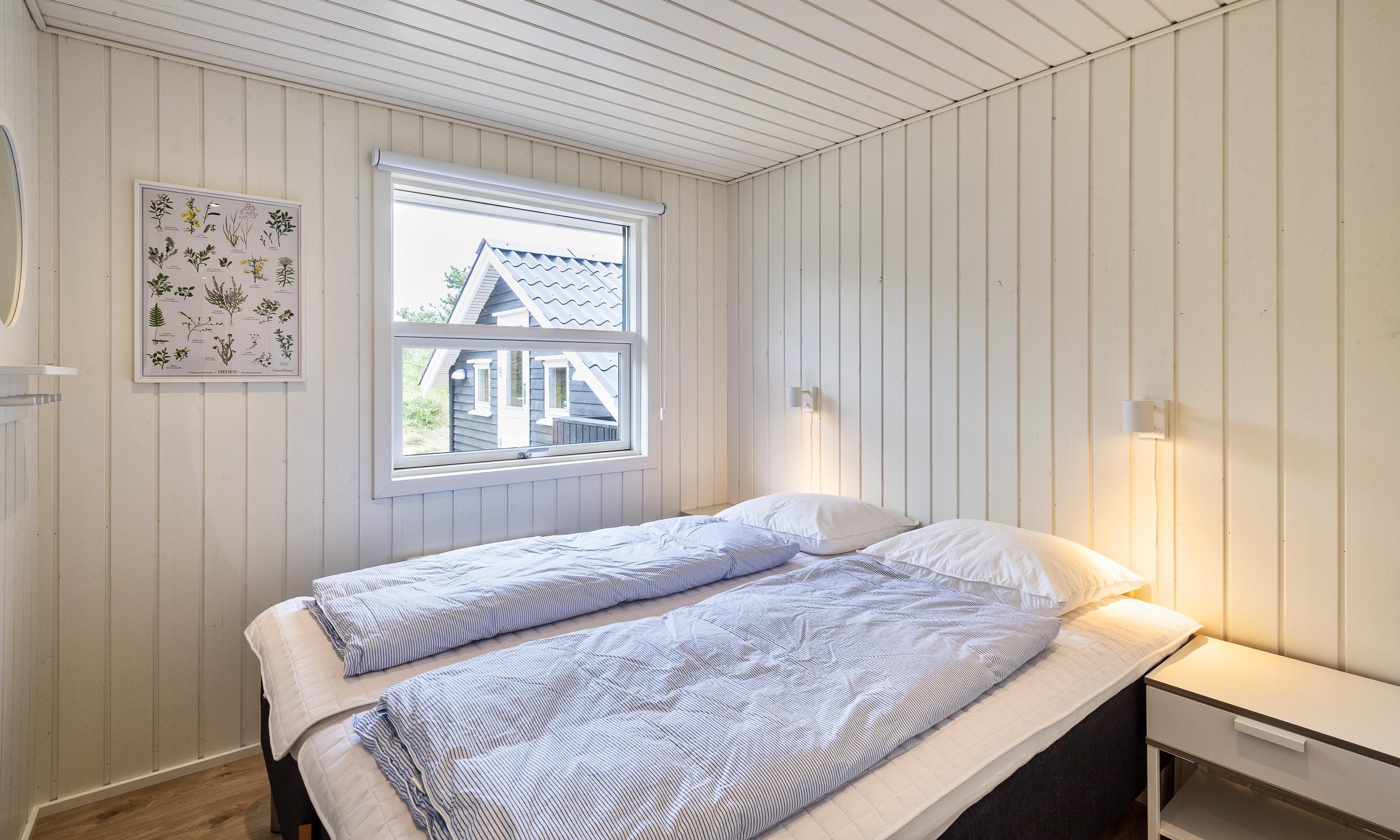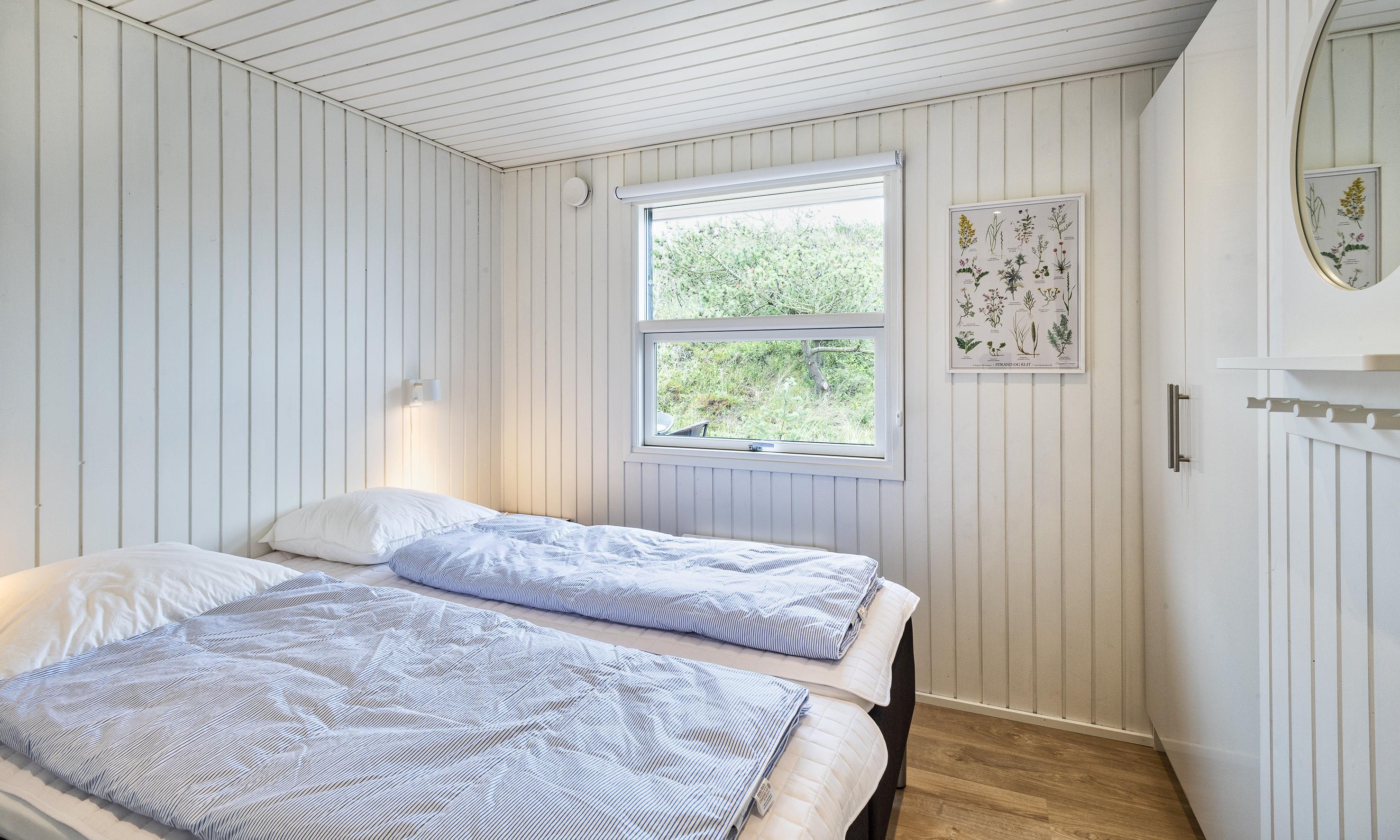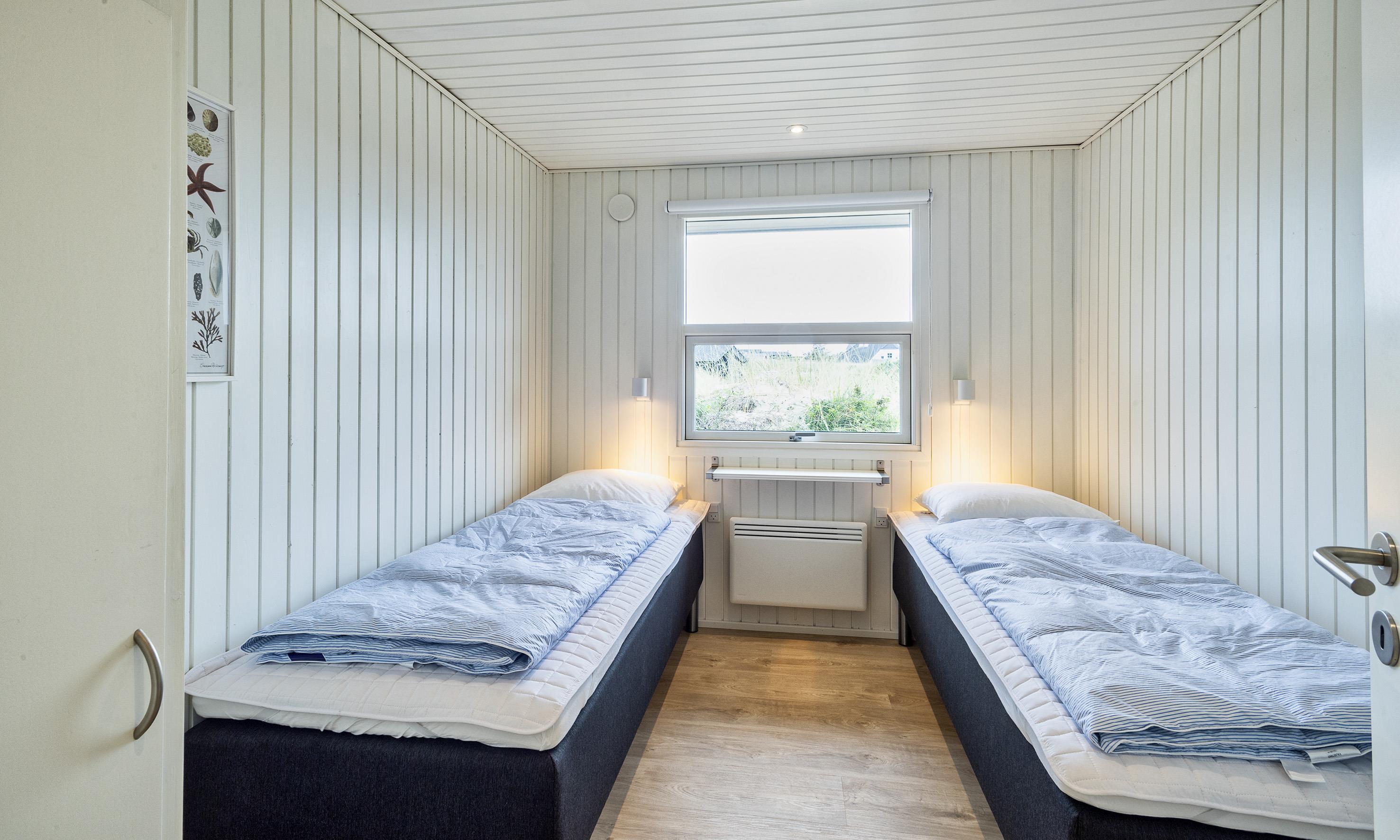 3 soveværelser. 2 med dobbeltseng 180x200 cm. 1 med 2 enkeltsenge (á 90x200 cm)