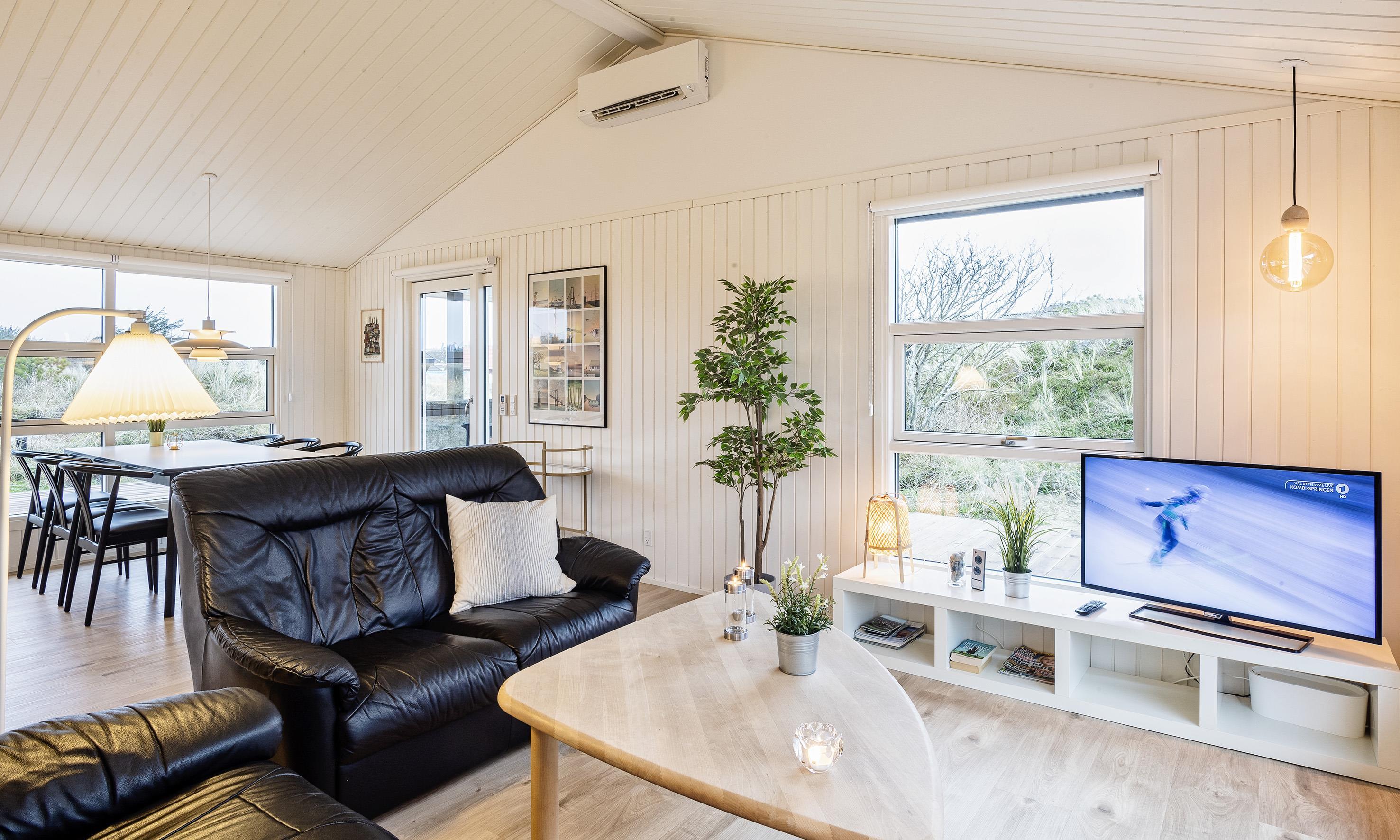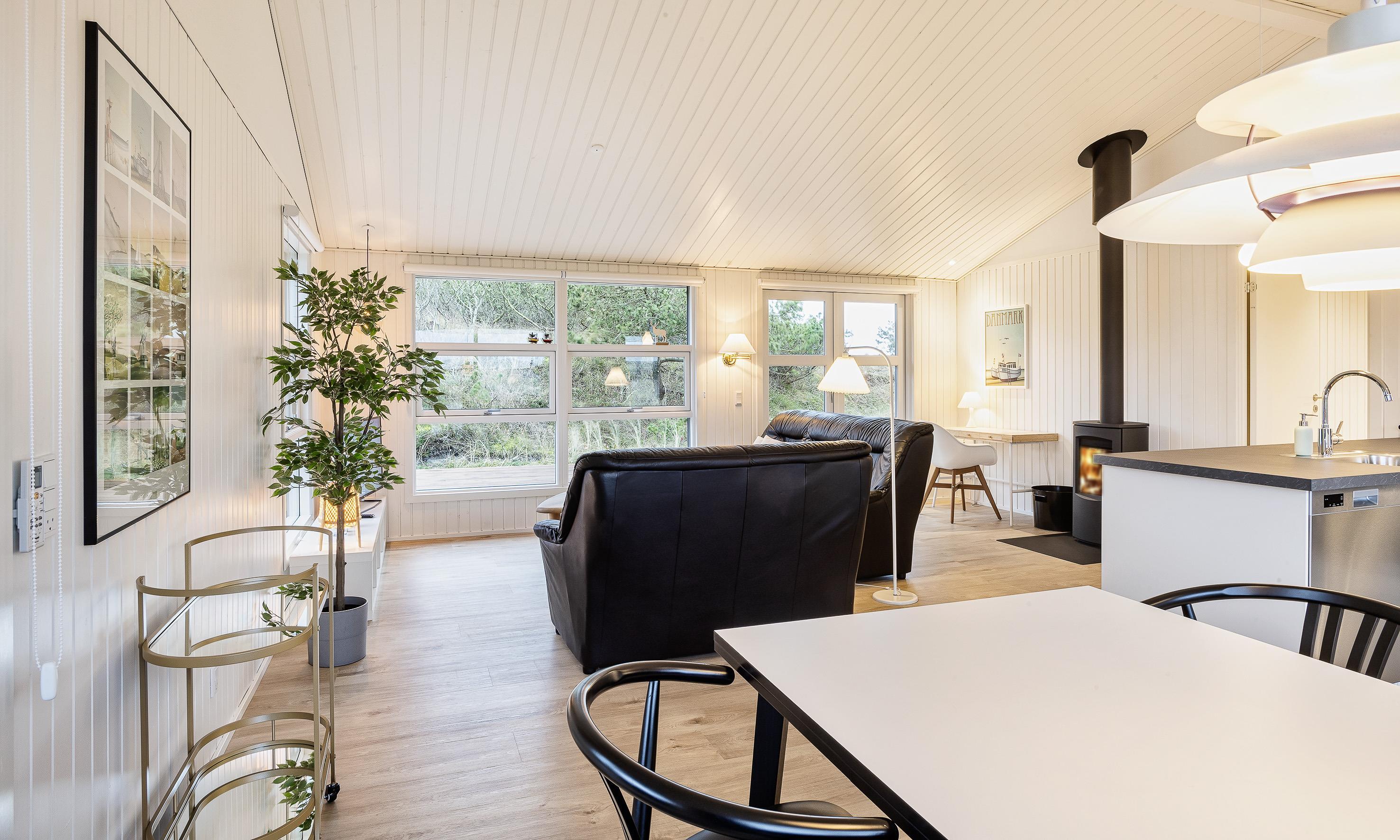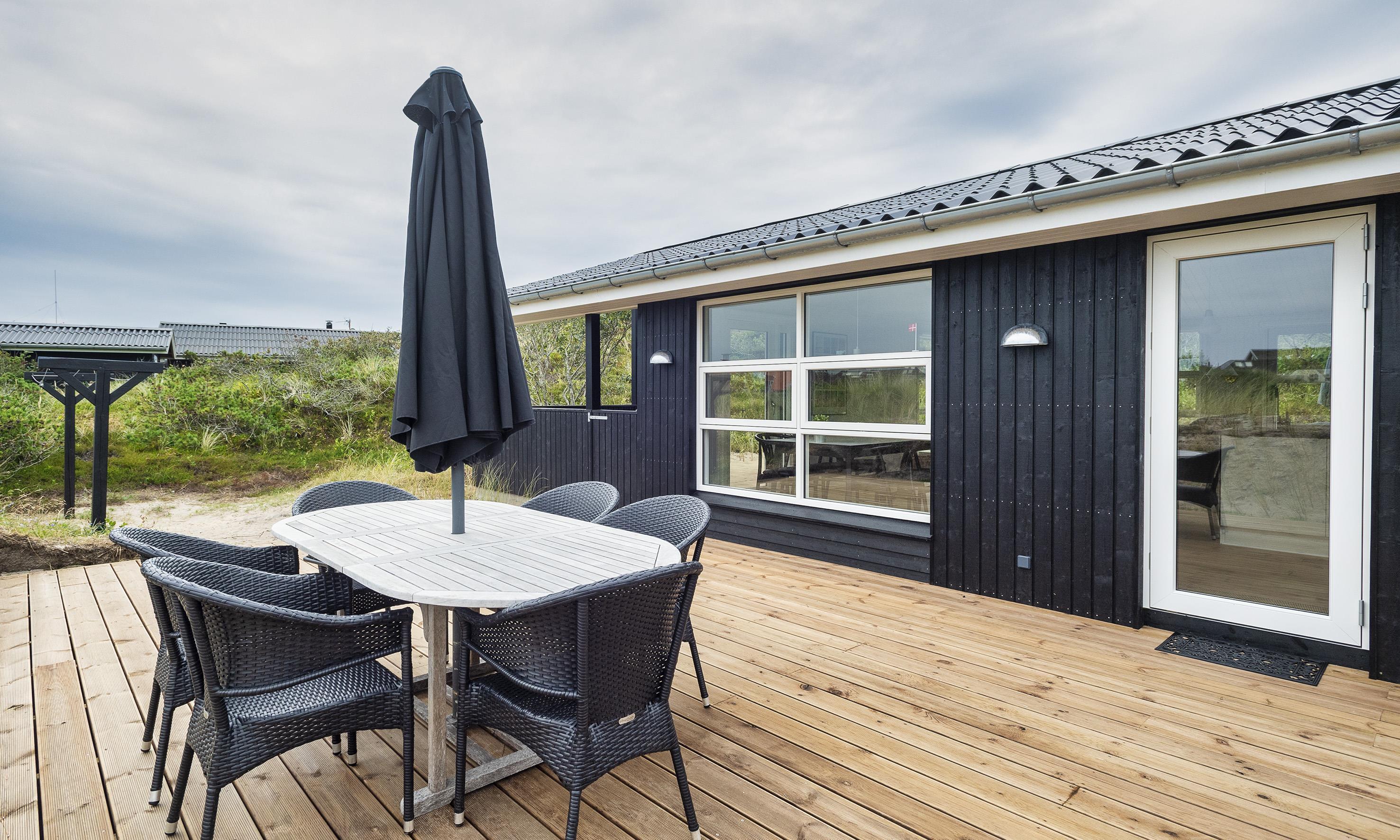 Smagfuldt sommerhus til 6 Vejers fans, beliggende i en lomme, ca. 150 meter fra stranden. Huset indeholder, entre fordelingsgang med kombineret vaskemaskine med tørretumbler. 3 soveværelser: DS +DS + 2S. Oprindelig men nyere badeværelse med toilet, håndvask og bruser. Fra fordelingsgangen kommer man ind i en dejlig stue med loft til kip, brændeovn og sofahjørne med fjernsyn (Stofa-sommerhuspakke) samt kig til terrassen. Trådløs internetadgang. Åbent køkkenalrum med køle-/frysekombination, bageovn, induktionskogeplade og opvaskemaskine. Dejlig spisestueplads med kig til stor terrasse og udgang til delvis overdækket terrasse. Varmepumpe. Rundt om huset er der en stor træterrasse, hvor solen kan nydes fra morgen til aften. Husdyr er ikke tilladt. Rygning er ikke tilladt. Totalrenoveret 2019.