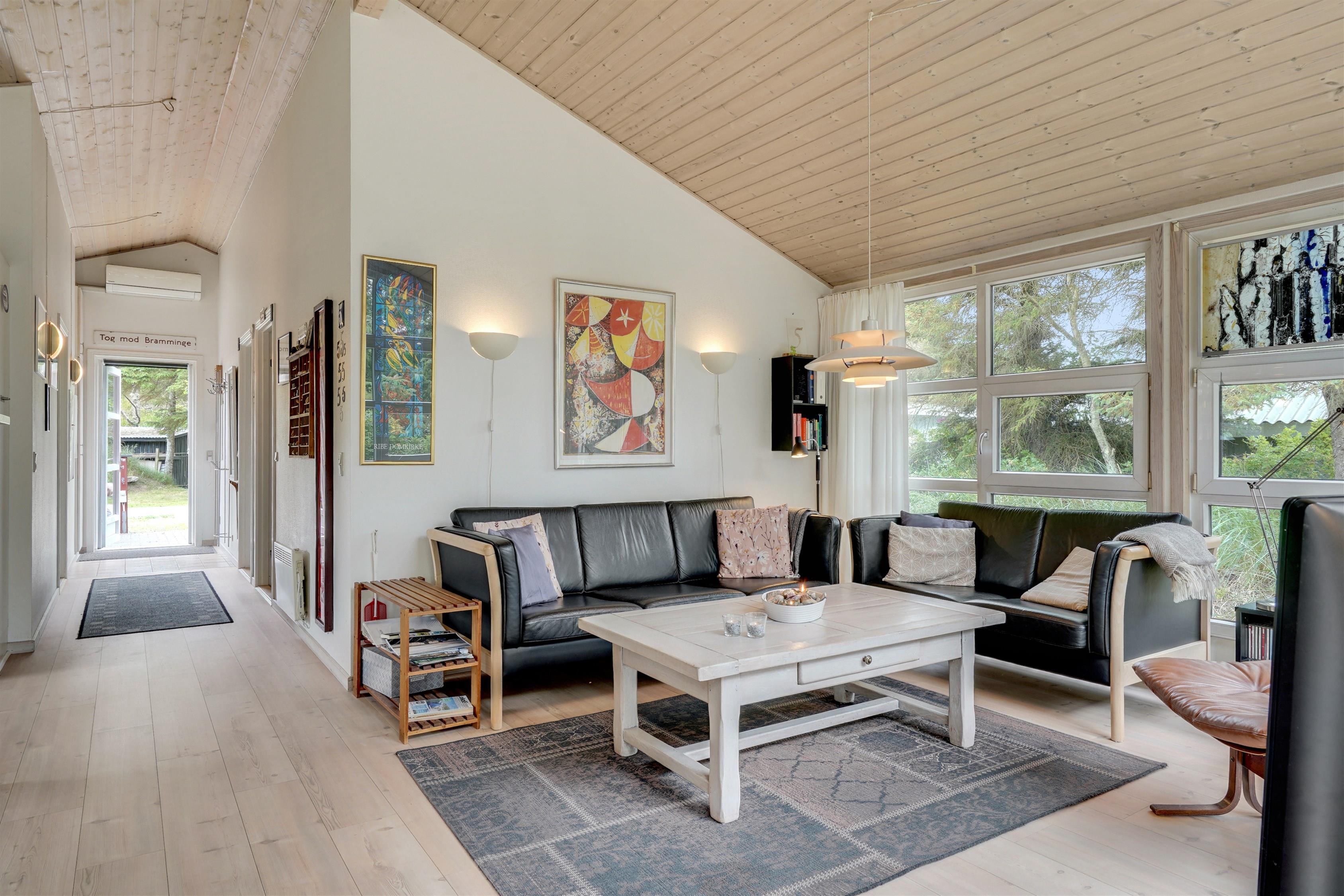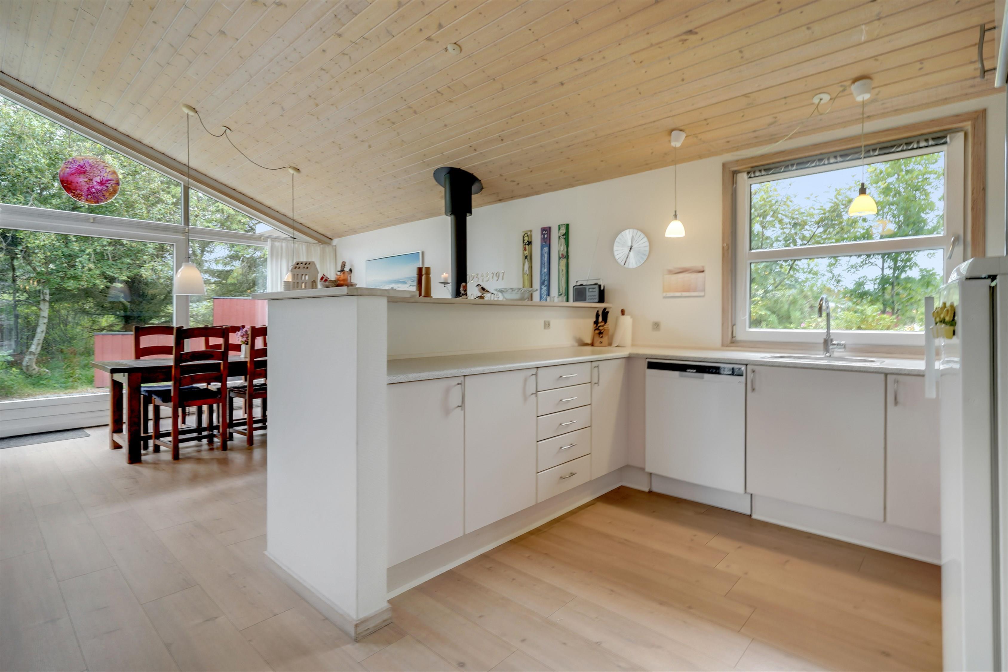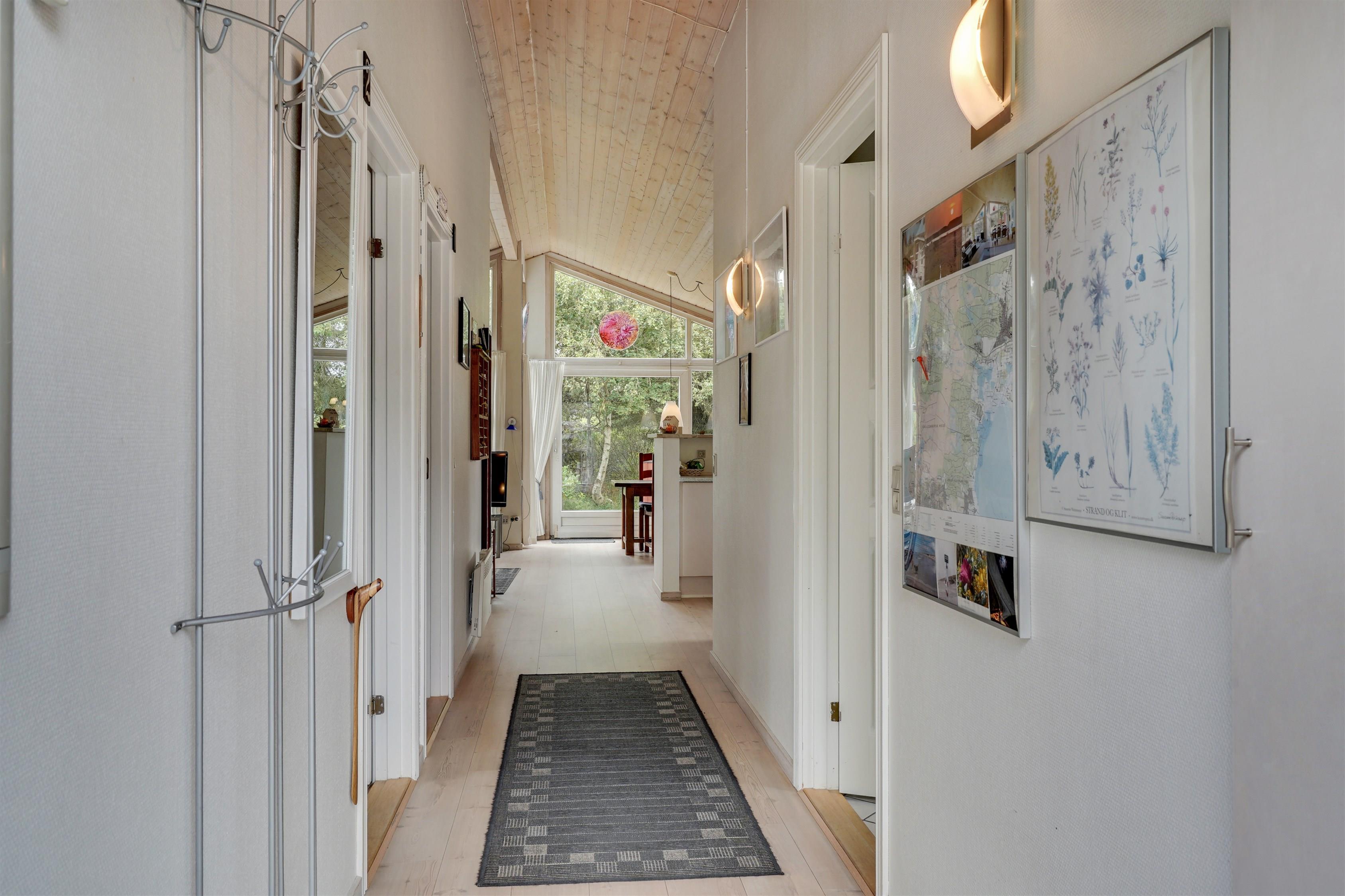 Meget smagfuldt sommerhus til 4 personer, beliggende på naturskøn grund, ca. 200 meter fra stranden. Stue med brændeovn, fjernsyn, parabol, fibernet samt radio med CD-afspiller med Ipod-/Iphonetilslutning (Stofa sommerhuspakke). Varmepumpe. Køkken med opvaskemaskine og mikroovn. 2 soveværelser: DS + DS. Badeværelse med bruser/wc og sauna. Vaskemaskine og tørretumbler. Terrasse med pavillon. Trådløs Internetadgang. Rygning er ikke tilladt. Byggeår 1956, renoveret 2004. Max 3 hunde og max 2 katte. Carport med ladeboks til elbil.