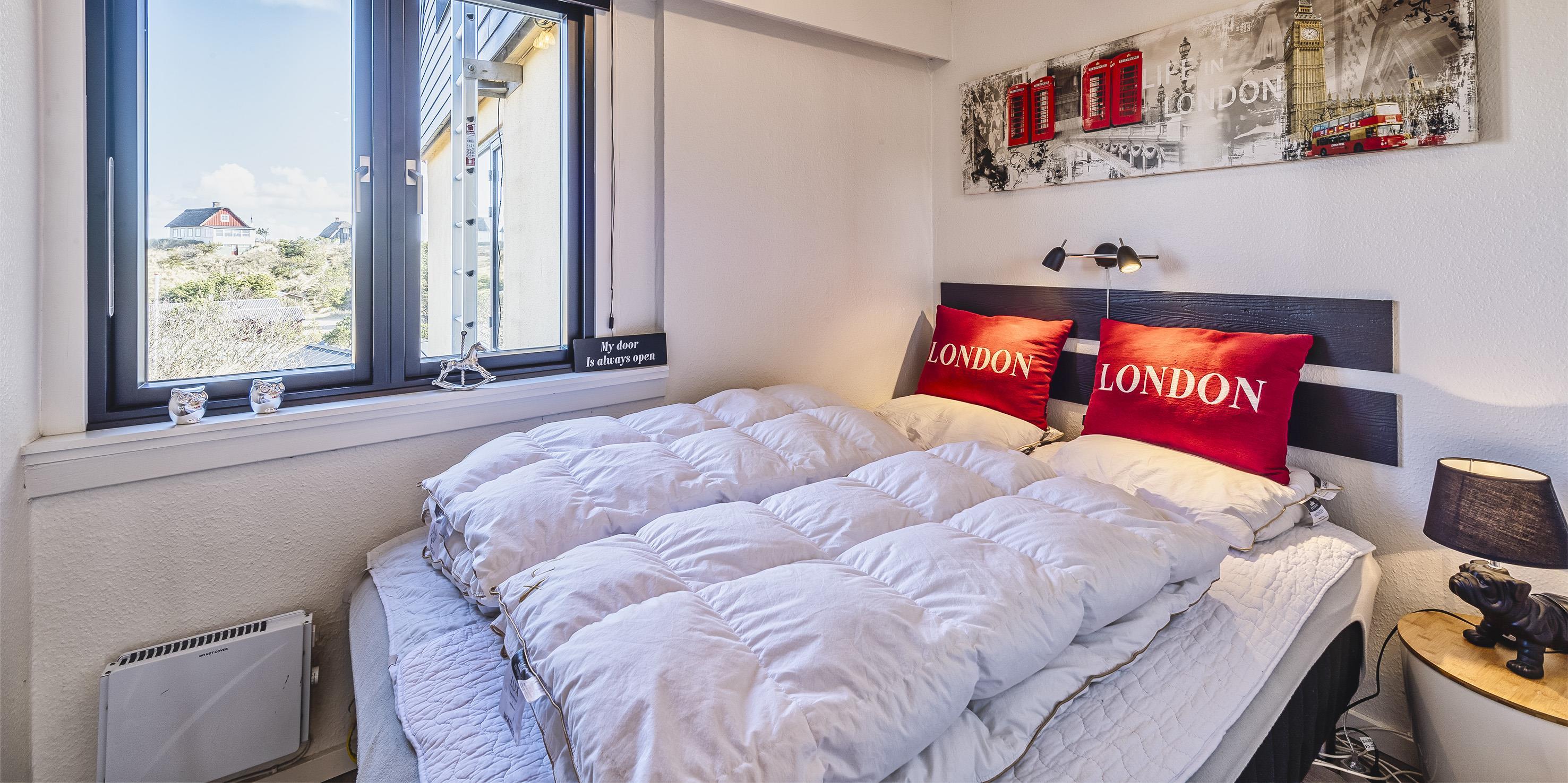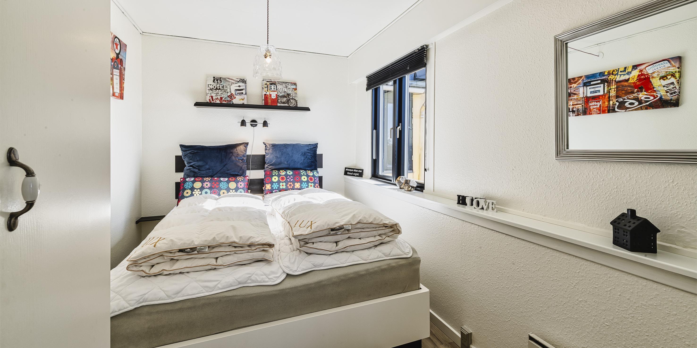 2 soveværelser med dobbeltseng. 1 á 180x200 cm. 1 á 160x200.