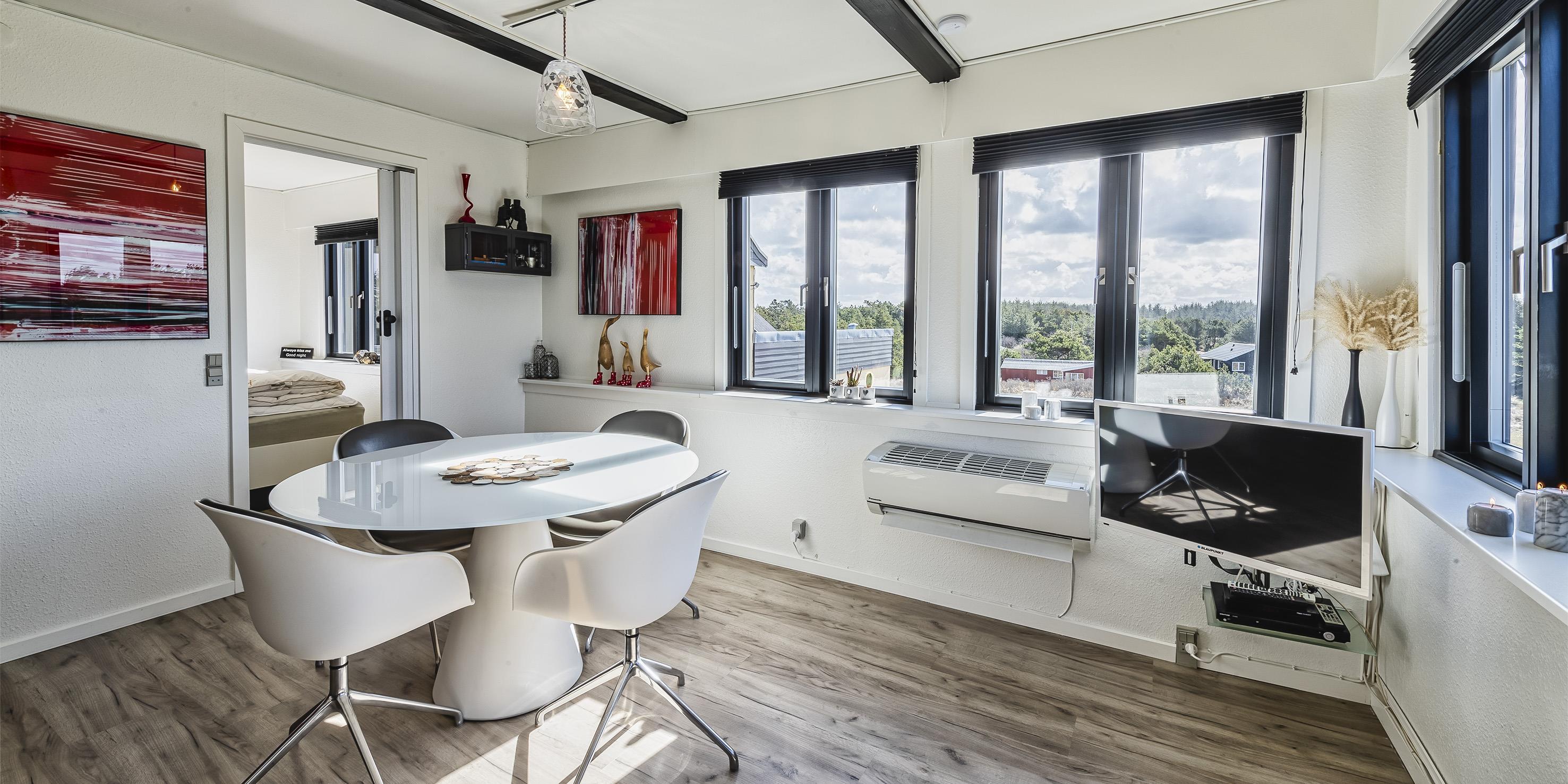 Smagfuldt og ny renoveret ferielejlighed til 4 personer, beliggende i den sydvestlige del af Vejers, ca. 200 meter fra stranden. Lejligheden består af køkken med opvaskemaskine, køle-/frysekombination og mikroovn. Stue med fjernsyn, danske programmer via Chromecast, parabol til udlandske programmer. Varmepumpe. Badeværelse med bruser/wc. 2 soveværelser: DS + DS. Trådløs Internet. Flere fælles terrasser. Byggeår 1937, renoveret 2015. Adgang til Oksbøl badeland i 2026.