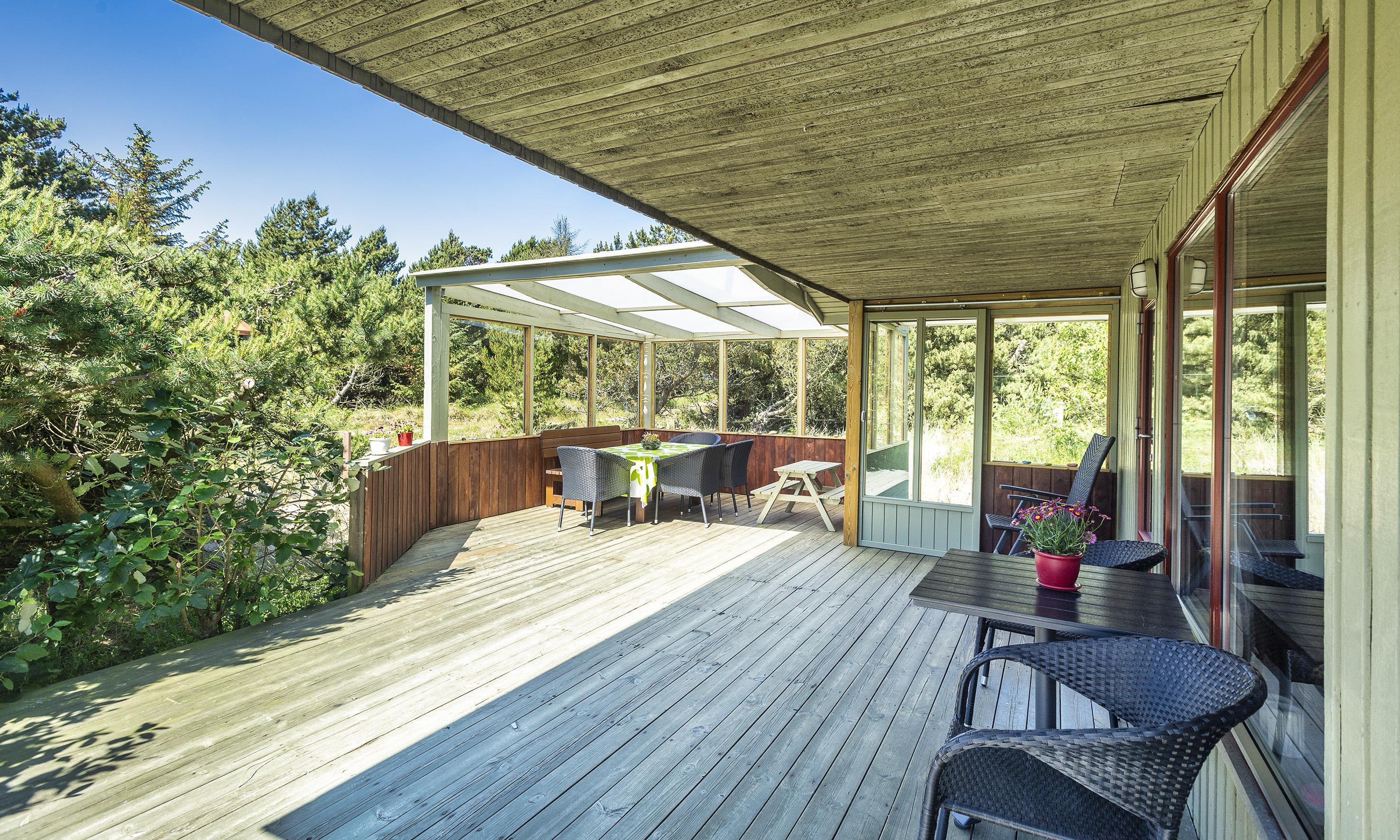 Hyggeligt sommerhus til 6 personer med skøn ugenert beliggenhed, ca. 300 meter fra stranden. Stue med brændeovn, fjernsyn(Smart-Tv) (Apple TV - telia) og parabol (ingen danske programmer - kan dog hentes via Apple tv og Chromecast) samt nyt åbent køkken med opvaskemaskine, køle-/fryseskab og mikroovn. Varmepumpe. Badeværelse med bruser/wc. Vaskemaskine og tørretumbler i annekset. 3 soveværelser: DS + DS + 2S. Trådløs internet. 2 terrasser, heraf 1 delvis overdækket. Gynge og sandkasse. Depotrum til cykler m.m. Husdyr er ikke tilladt - dog med undtagelse af én lille hund. Katte er ikke tilladt! Rygning er ikke tilladt. Adgang til Fitness i Vejers & Blåvand i 2026. Byggeår 1985. Ladestik til elbil Type2.