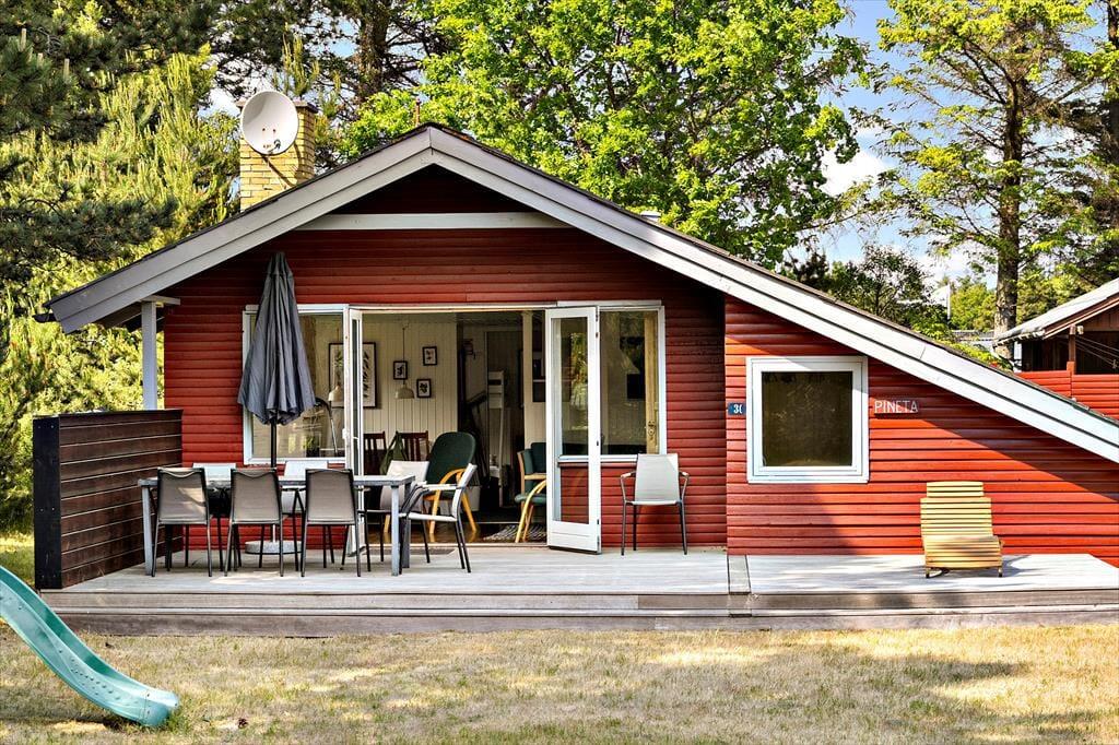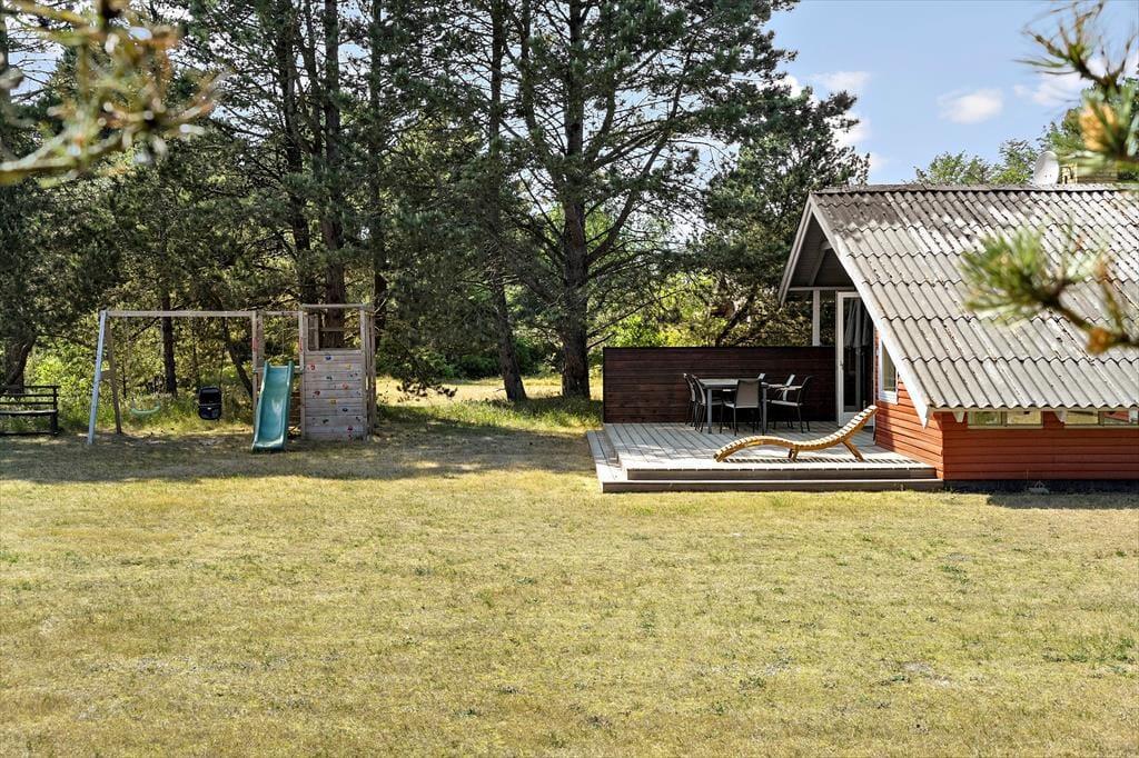 Hyggeligt sommerhus i Vejers med brændeovn, internet og stor grund, tæt på strand og by.