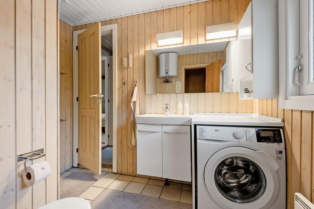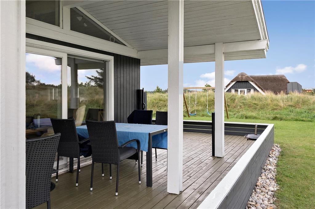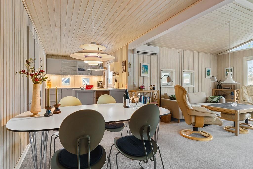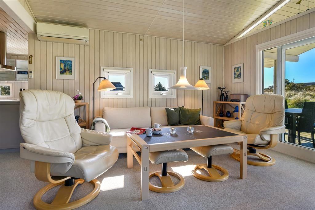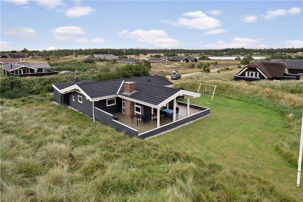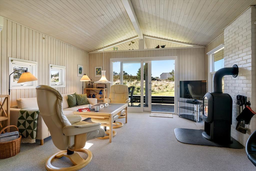 Sommerhus i Vejers, Vestjylland, med plads til 5 voksne. Der er en hyggelig indretning med bl.a. brændeovn, og du finder desuden vaskemaskine og opvaskemaskine i boligen.