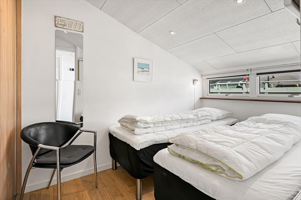 Når du træder indenfor i rækkehuset, bliver du mødt af en lys og venlig atmosfære. Indretningen er enkel og imødekommende, og det åbne opholdsrum indbyder til at bruge tid sammen – uanset om det er en stille morgen med kaffe og rundstykker eller en hyggelig aften med film på Smart-TV’et. Takket være Chromecast kan du nemt streame dine yndlingsserier eller dele feriebilleder direkte på skærmen. I spiseområdet kan I nyde dagens måltider med udsigt til haven, og gennem de dobbelte terrassedøre strømmer dagslyset ind og skaber en rar stemning. I soverummet står to enkeltsenge, der kan placeres samlet som dobbeltseng, så I kan indrette sovepladsen efter behov. En varmepumpe sørger for behagelig temperatur året rundt, så uanset årstiden er rammerne skabt for et dejligt ferieophold. For ekstra komfort har husets ejer monteret insektgardiner i både stue og soveværelse