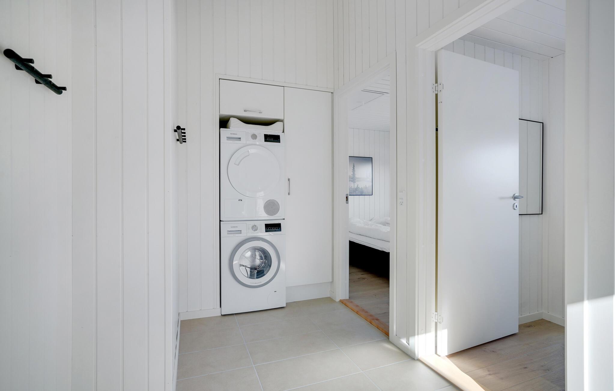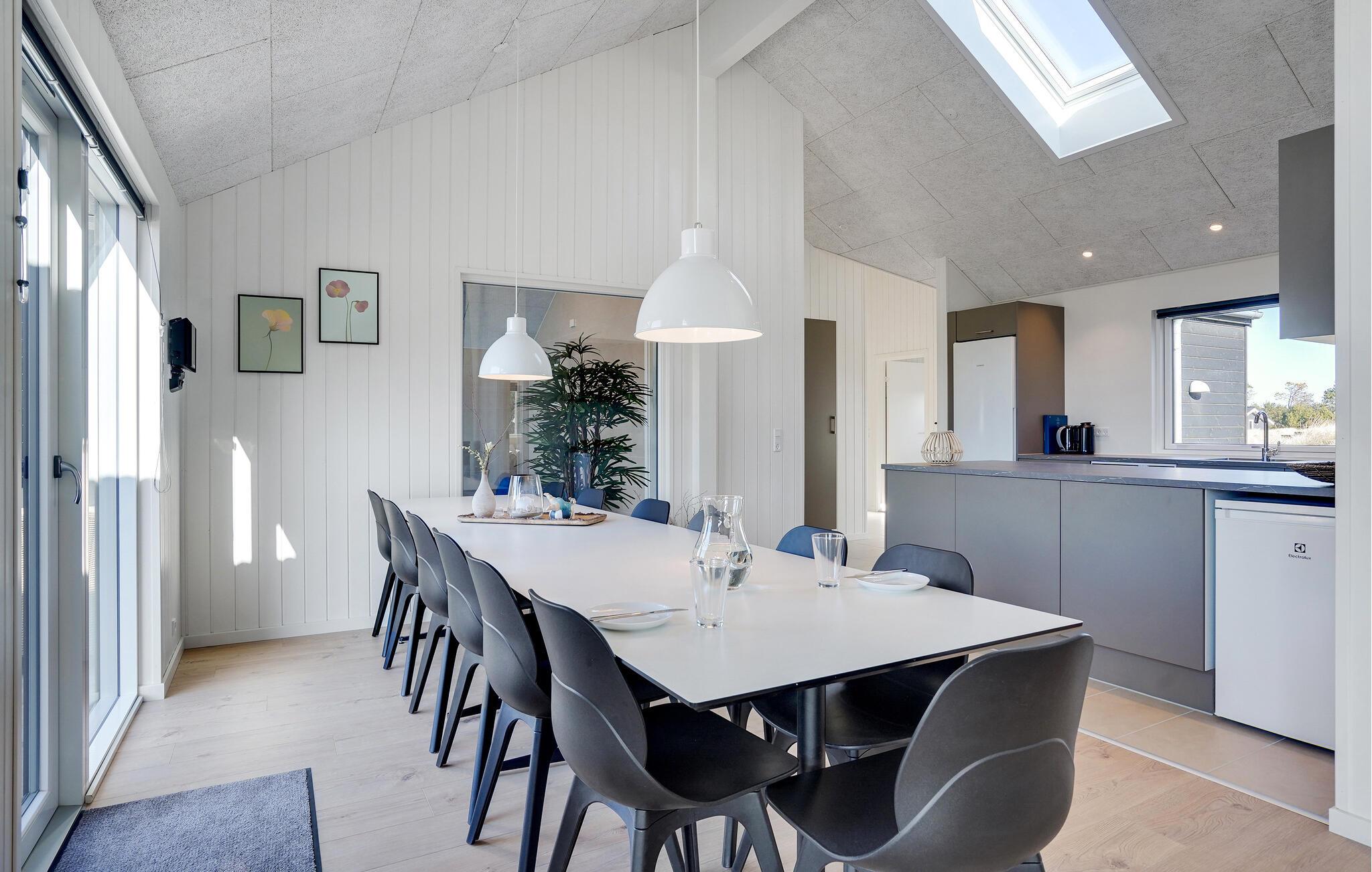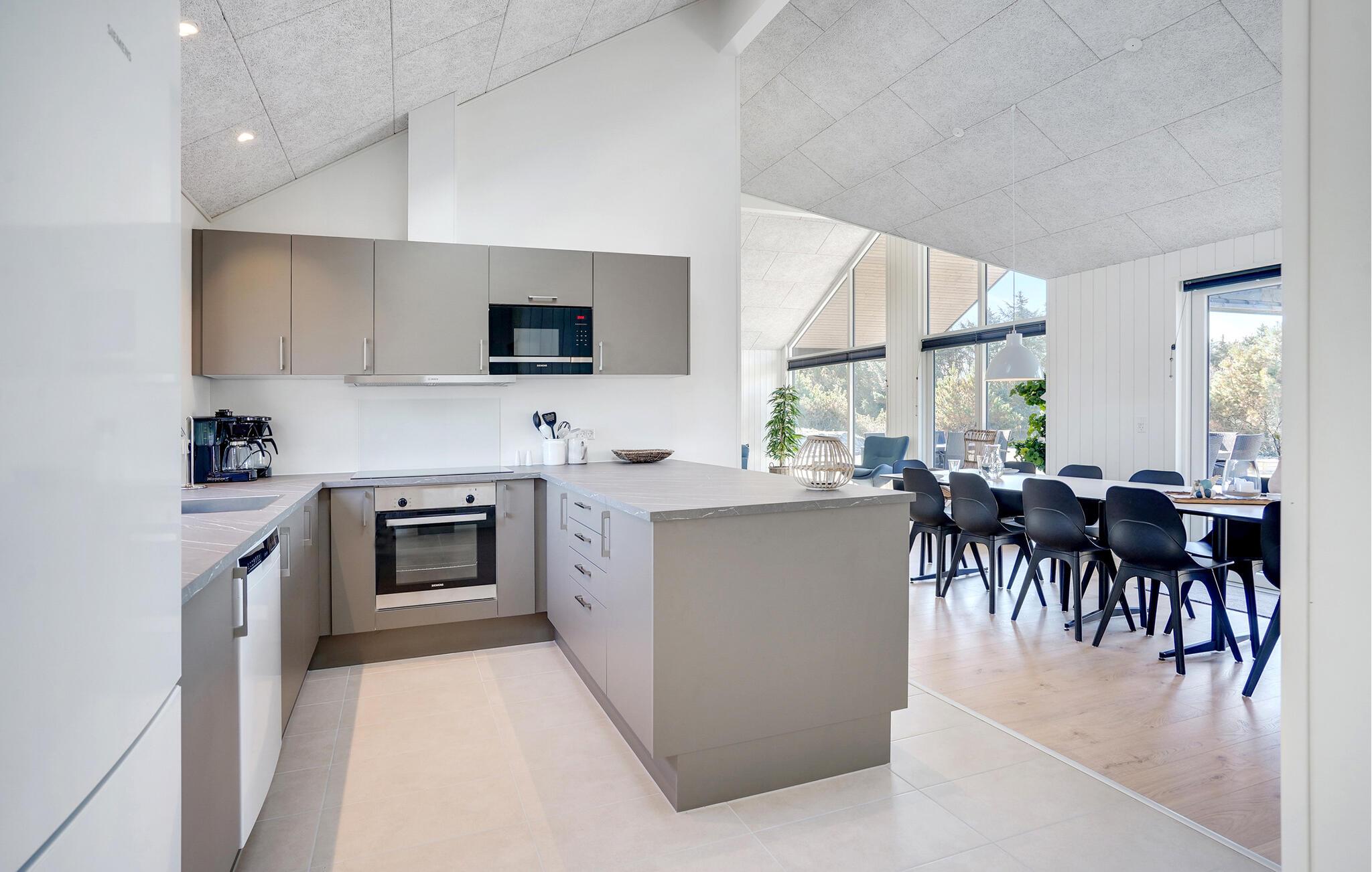 Det indre af dette sommerhus byder jer velkommen med et moderne design og rummelige, lyse værelser. Føl jer godt tilpas i den smagfuldt indrettede stue med en god film, spil billard eller dart og forkæl jer selv med afslappende timer i den indendørs pool eller sauna. Tilbered kulinariske delikatesser sammen i køkkenet af høj kvalitet.