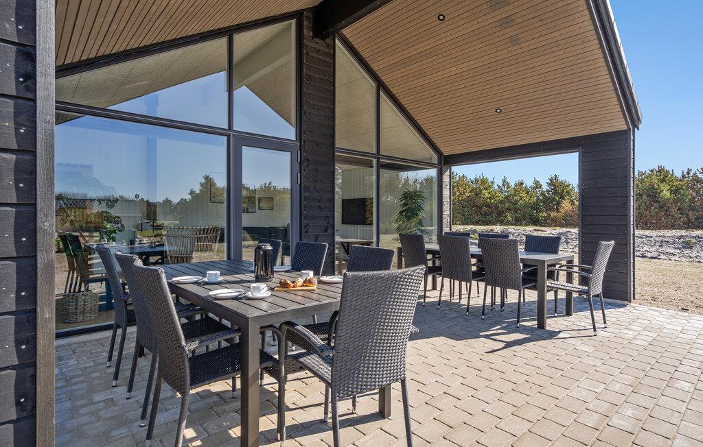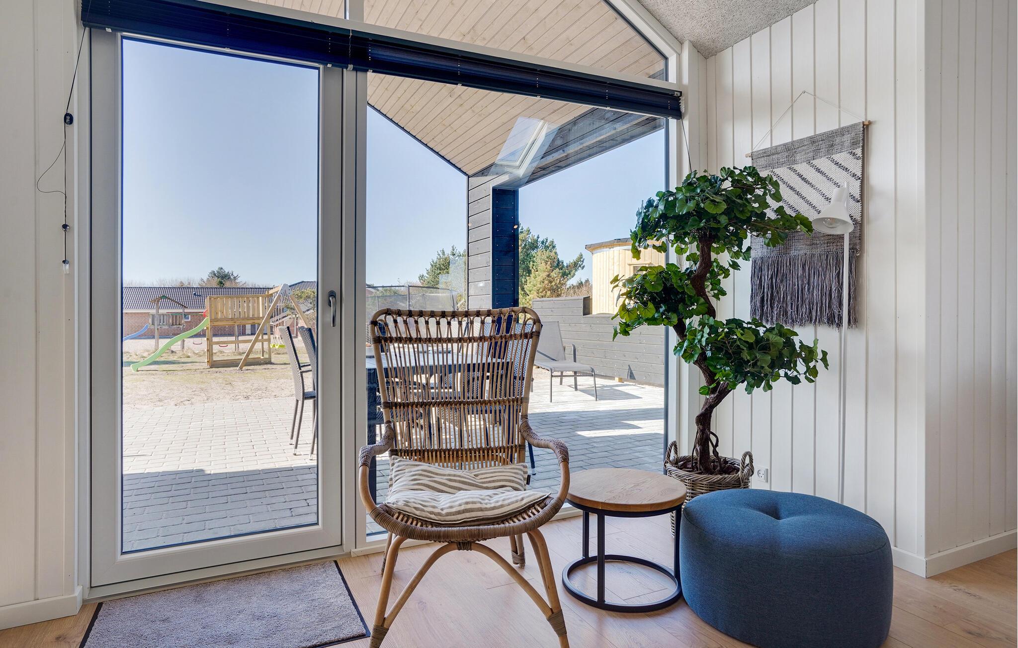 Moderne sommerhus ved Vejers Strand med indendørs pool, sauna, spabad og aktiviteter for hele familien.