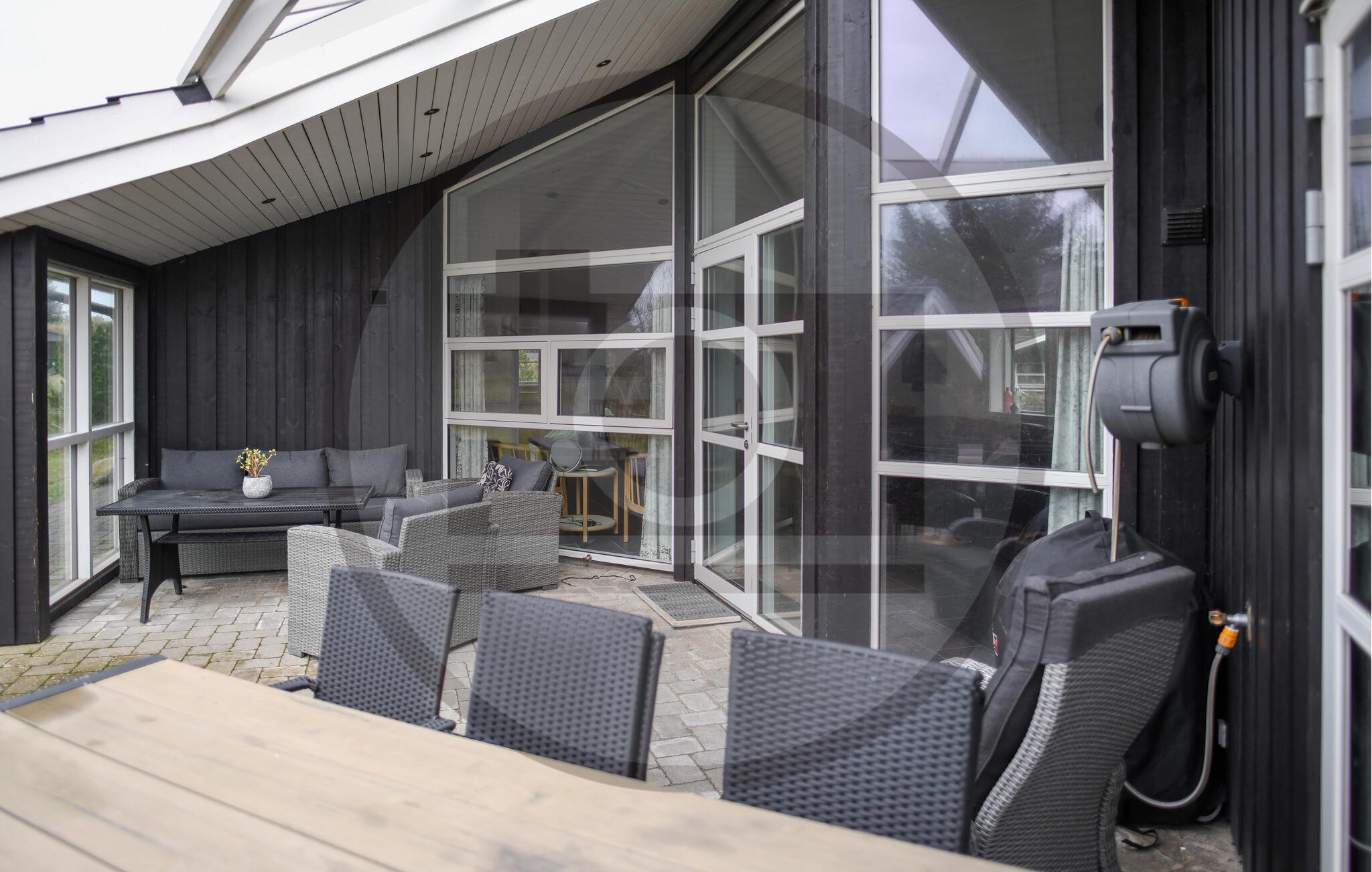 Ophold jer på terrassen i de komfortable havemøbler, og nyd en kop kaffe i den friske luft. Slap af i udendørsspabadet, og lad dagen gå på hæld med udsigt til den naturlige grund. Den afskærmede beliggenhed sikrer privatliv og ro.