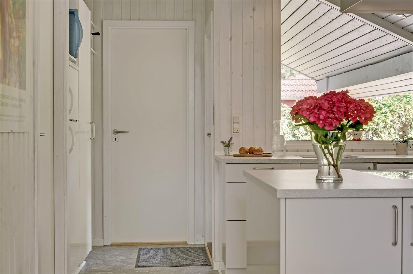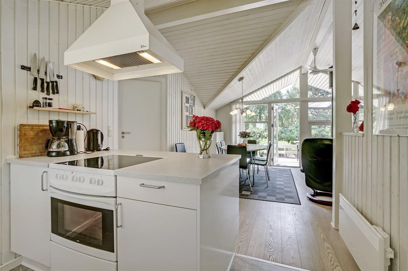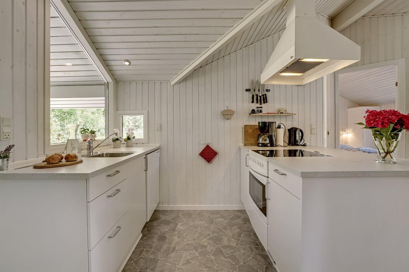 Køkkenet er udstyret med 1 køleskab. Der er 4 keramiske kogeplader, varmluftovn, mikrobølgeovn samt opvaskemaskine.