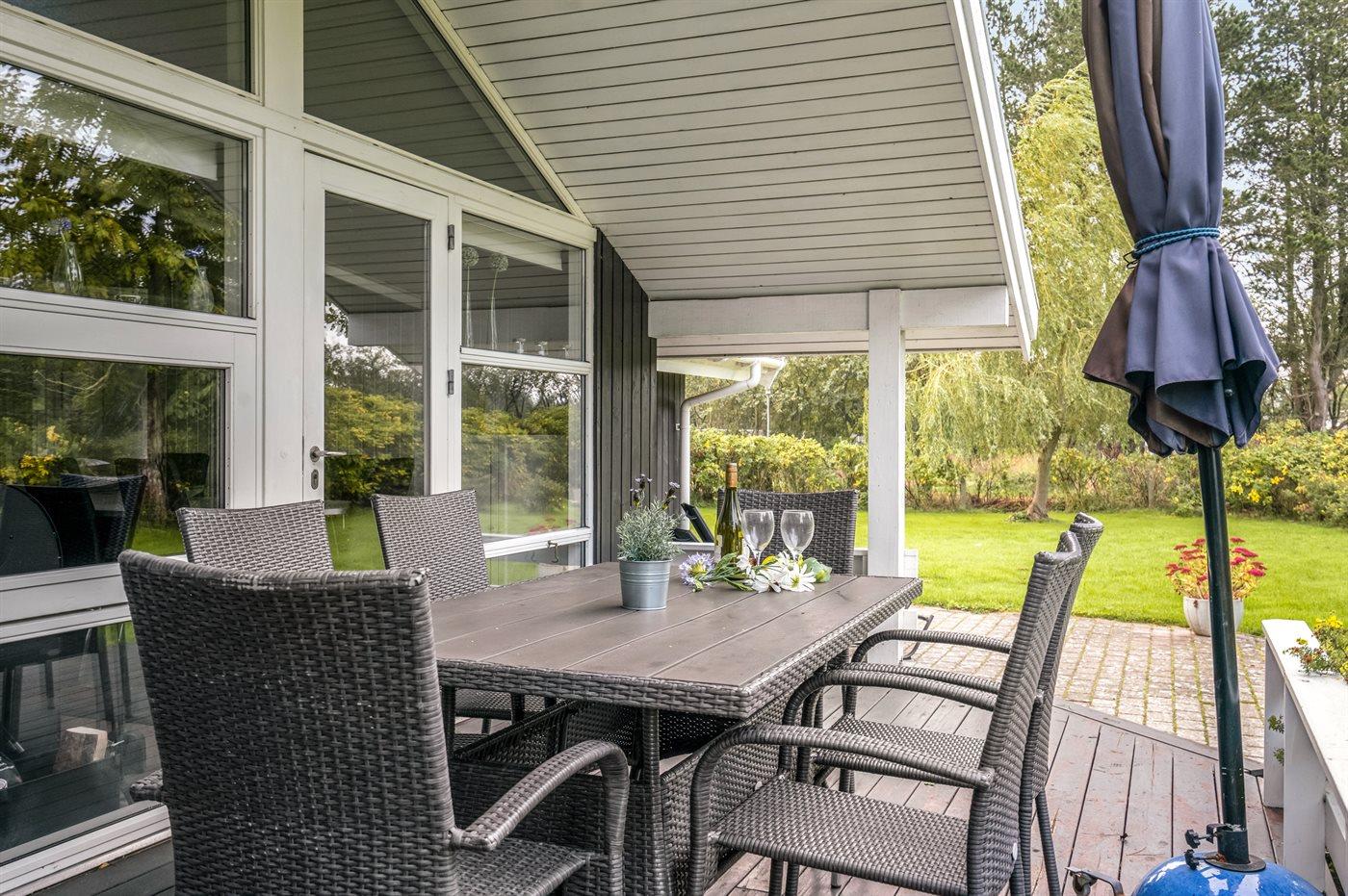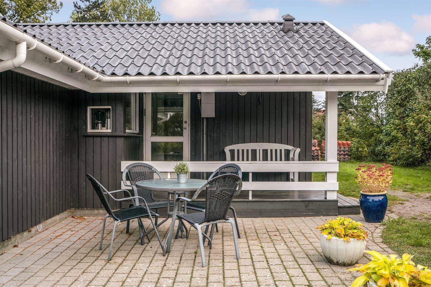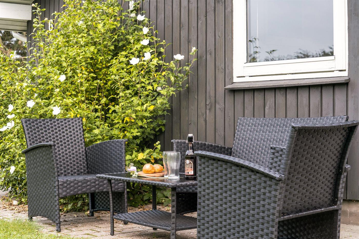 Ferieboligen er beliggende på en 1169 m² stor havegrund. Der er 75 m til havet. Nærmeste forretning er beliggende i en afstand af 100 m (kun i sommerperioden). Til ferieboligen hører 20 m² terrasseareal. Desuden er der 20 m² overdækket terrasse. Der er redskabsrum. Gynge. Sandkasse. Parkering ved ferieboligen.