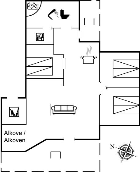 Der er i alt 3 soveværelser. Sovepladserne fordeler sig på: 4 sovepladser i dobbeltsenge. 2 sovepladser i enkeltsenge. Derudover er der 1 stk. barneseng.