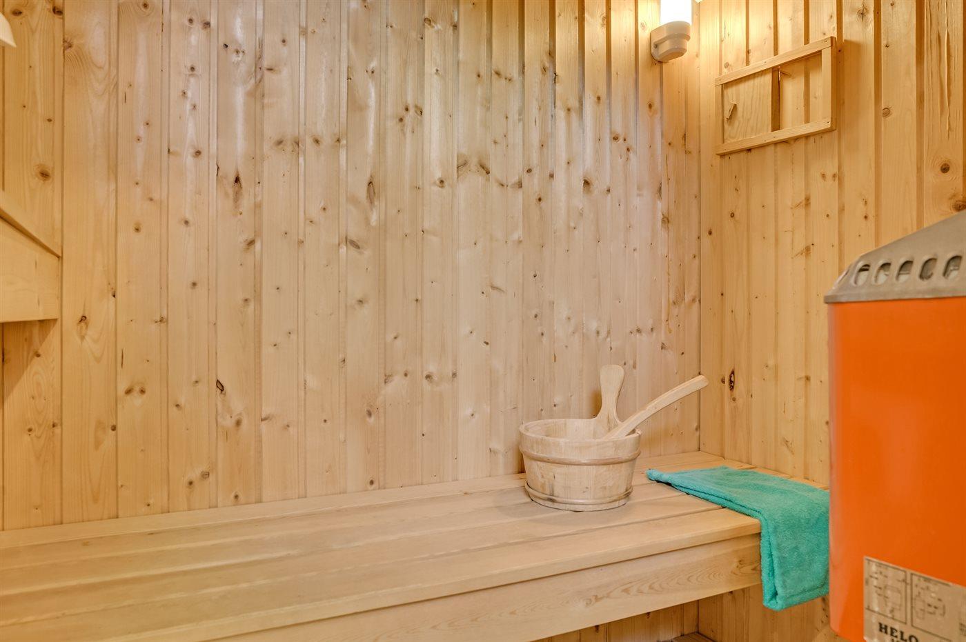 Der er 1 badeværelse med bruseniche og 1 toilet.. Der er gulvvarme på 1 badeværelse. I saunaen er der mulighed for afslapning.