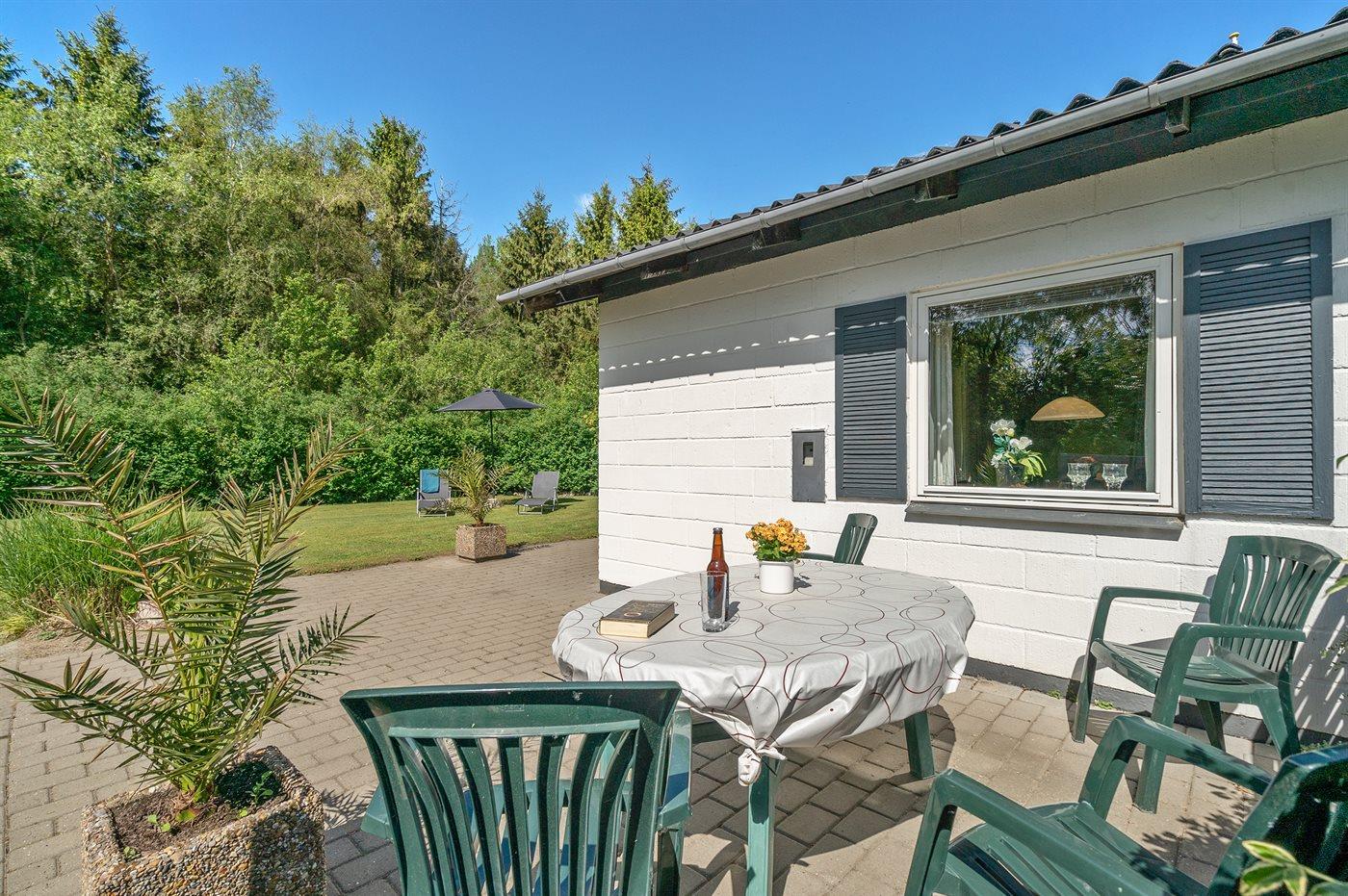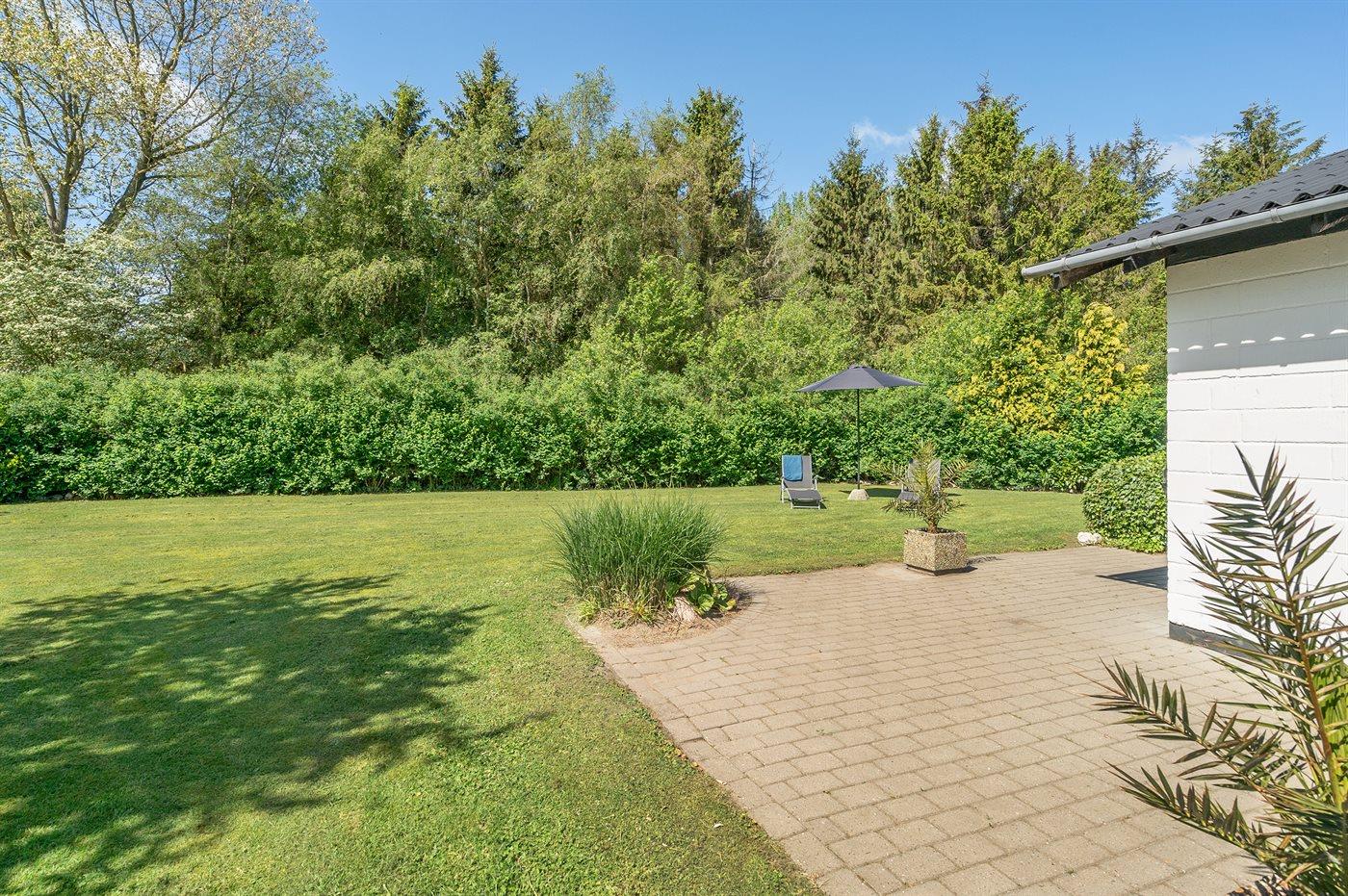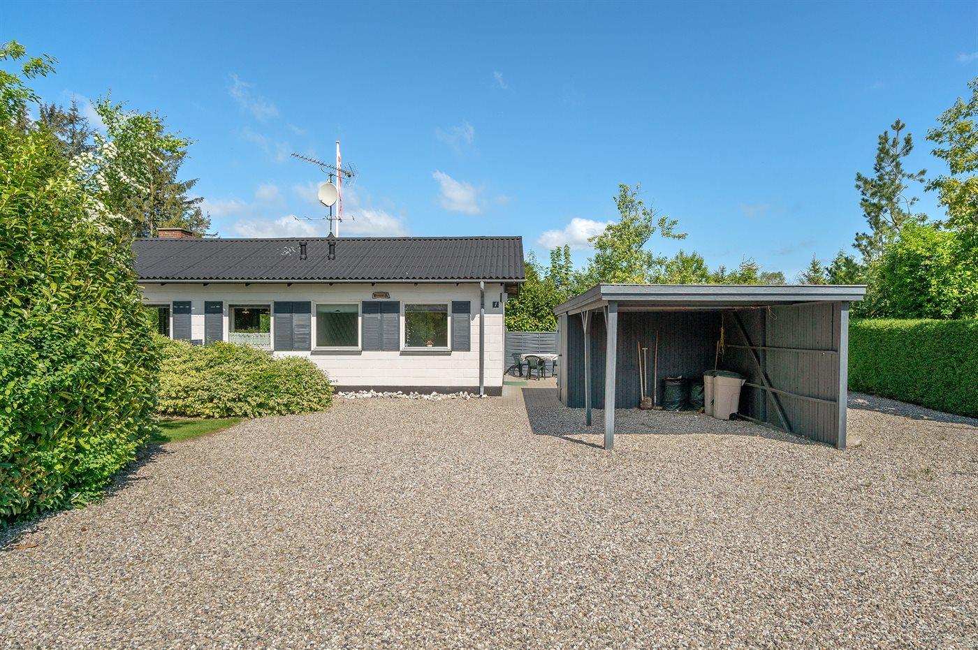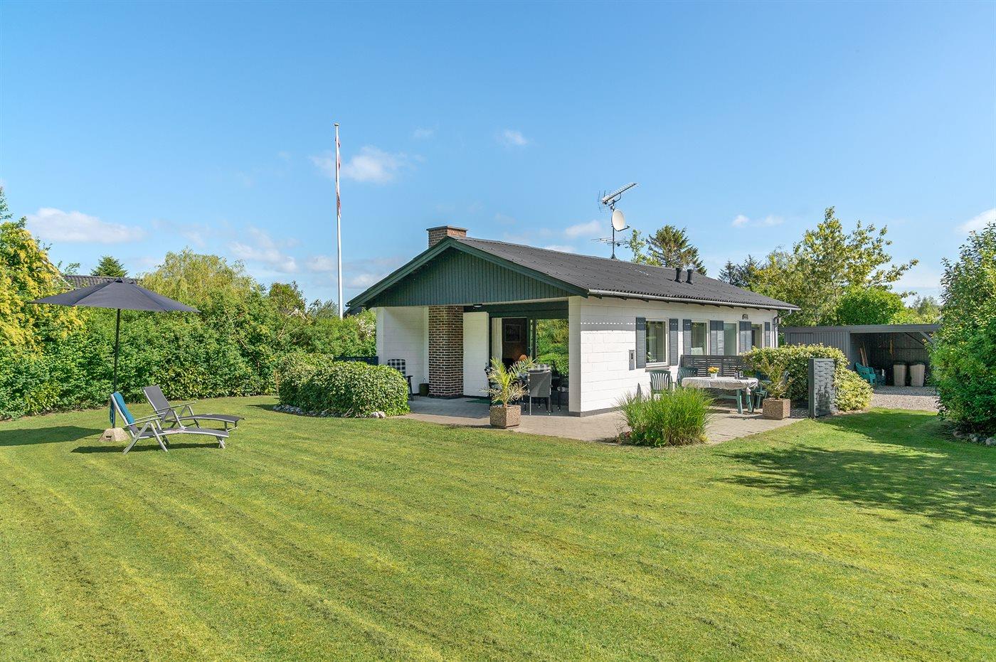 Ferieboligen er beliggende på en 1000 m² stor havegrund. Der er 400 m til havet. Nærmeste forretning er beliggende i en afstand af 700 m. Til ferieboligen hører 40 m² terrasseareal. Desuden er der 10 m² overdækket terrasse. Der er carport til rådighed.