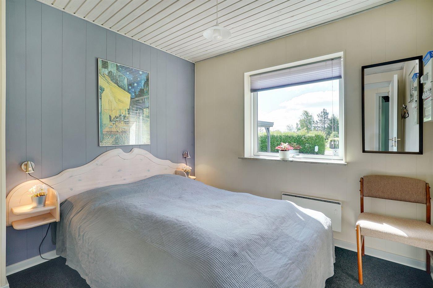 Der er i alt 3 soveværelser. Sovepladserne fordeler sig på: 4 sovepladser i dobbeltsenge. 2 sovepladser i køjeseng. Derudover er der 1 stk. barneseng.