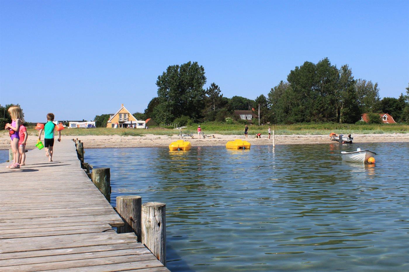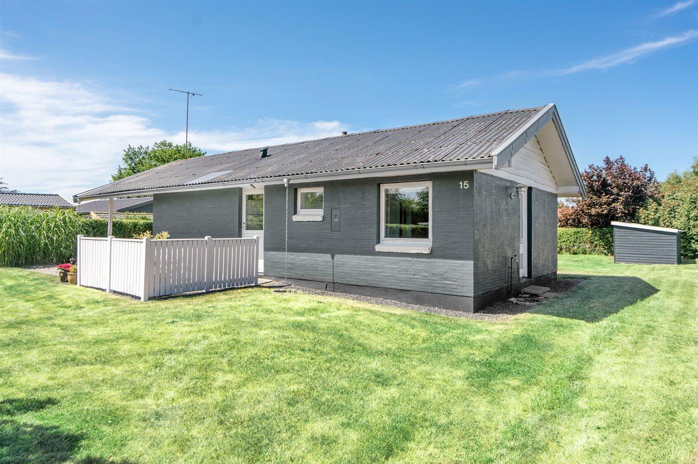 Hyggeligt sommerhus nær sandstrand i Middelfart med terrasse og udendørs pejs.