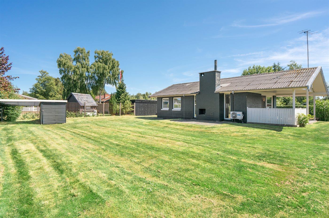 Dette pæne sommerhus er løbende renoveret og ligger på en dejlig grund - kun 300 m fra en sandstrand.