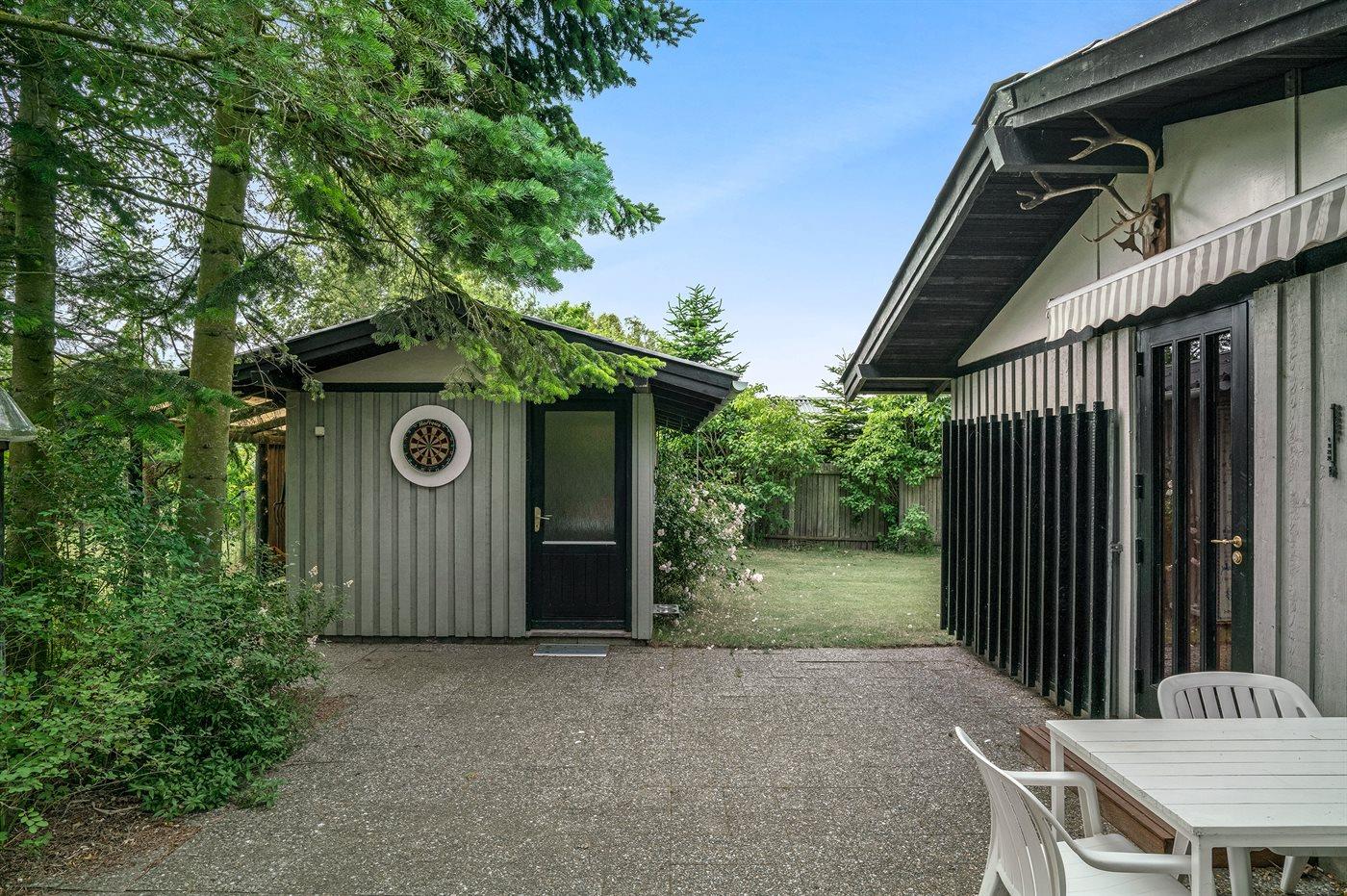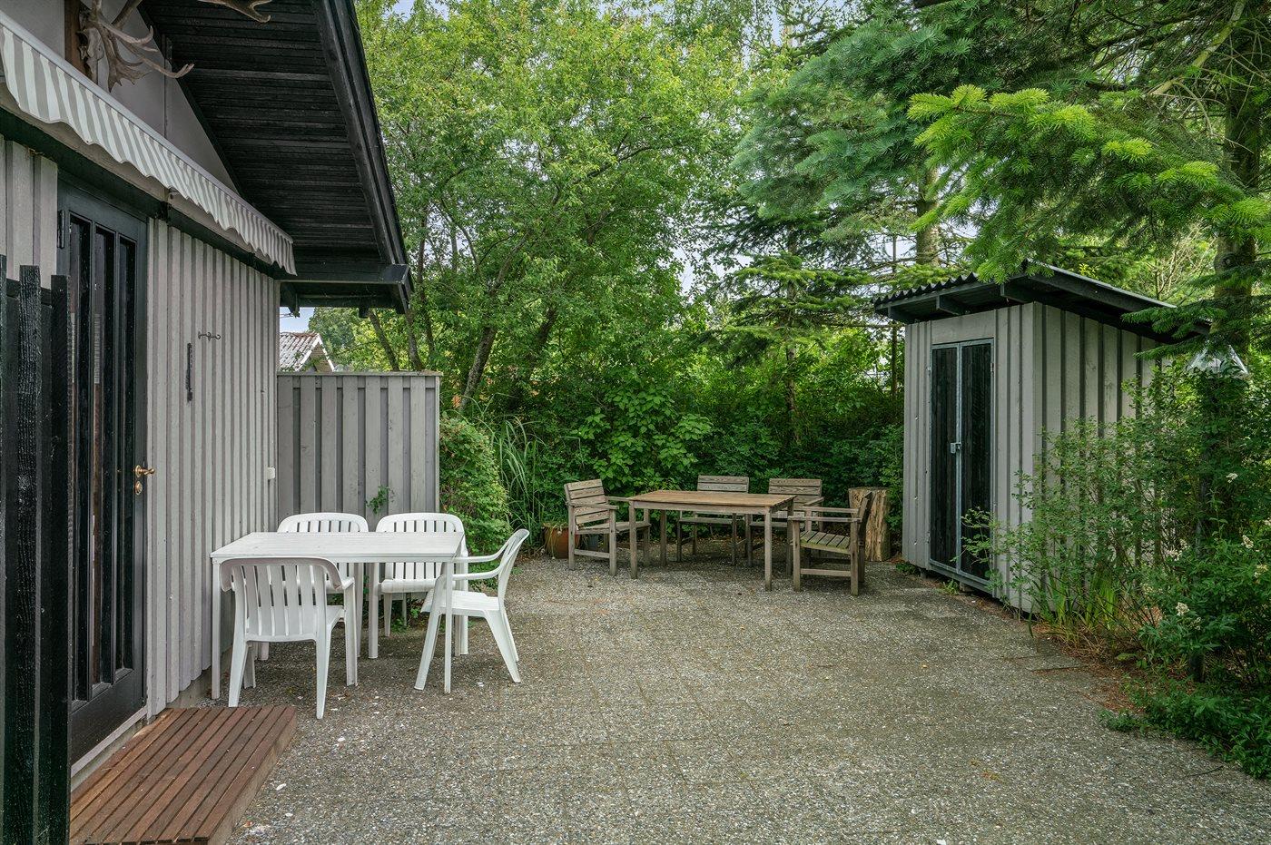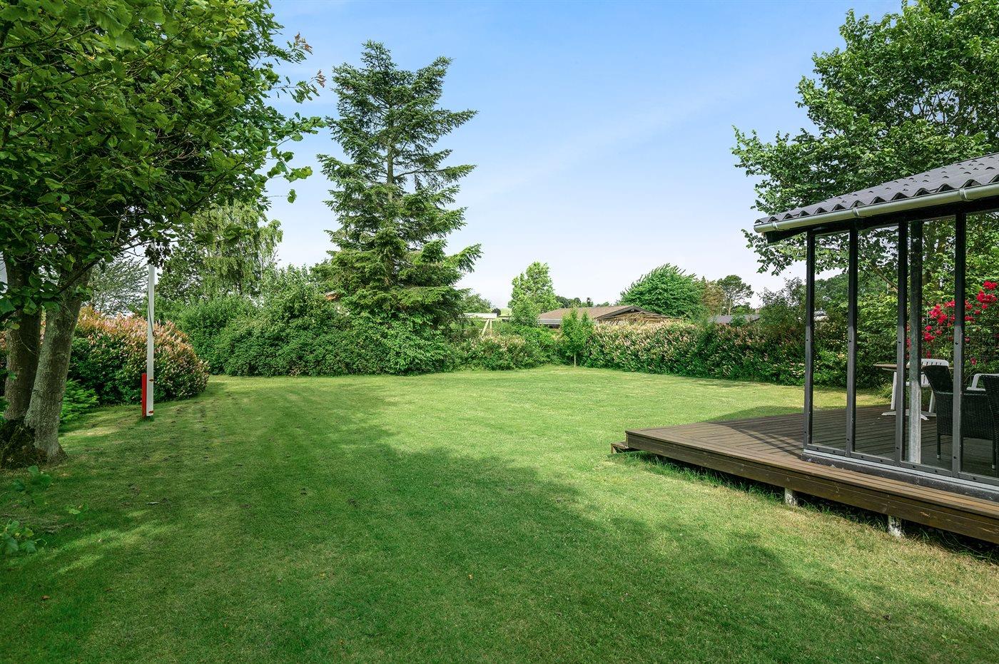 Omkring huset er der god plads til udendørs aktiviteter, og da der er terrasse på begge sider af huset, er der både mulighed for morgen- og aftensol.