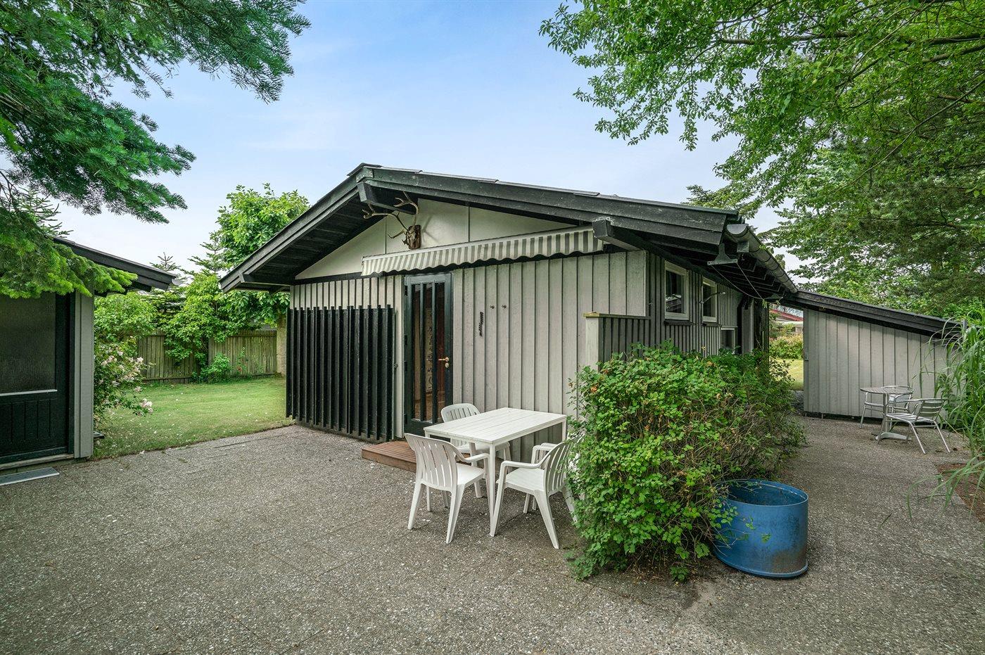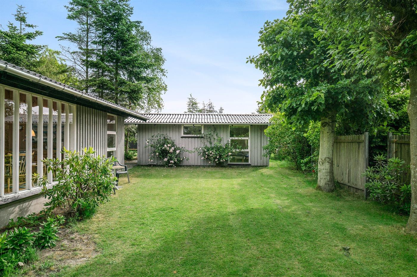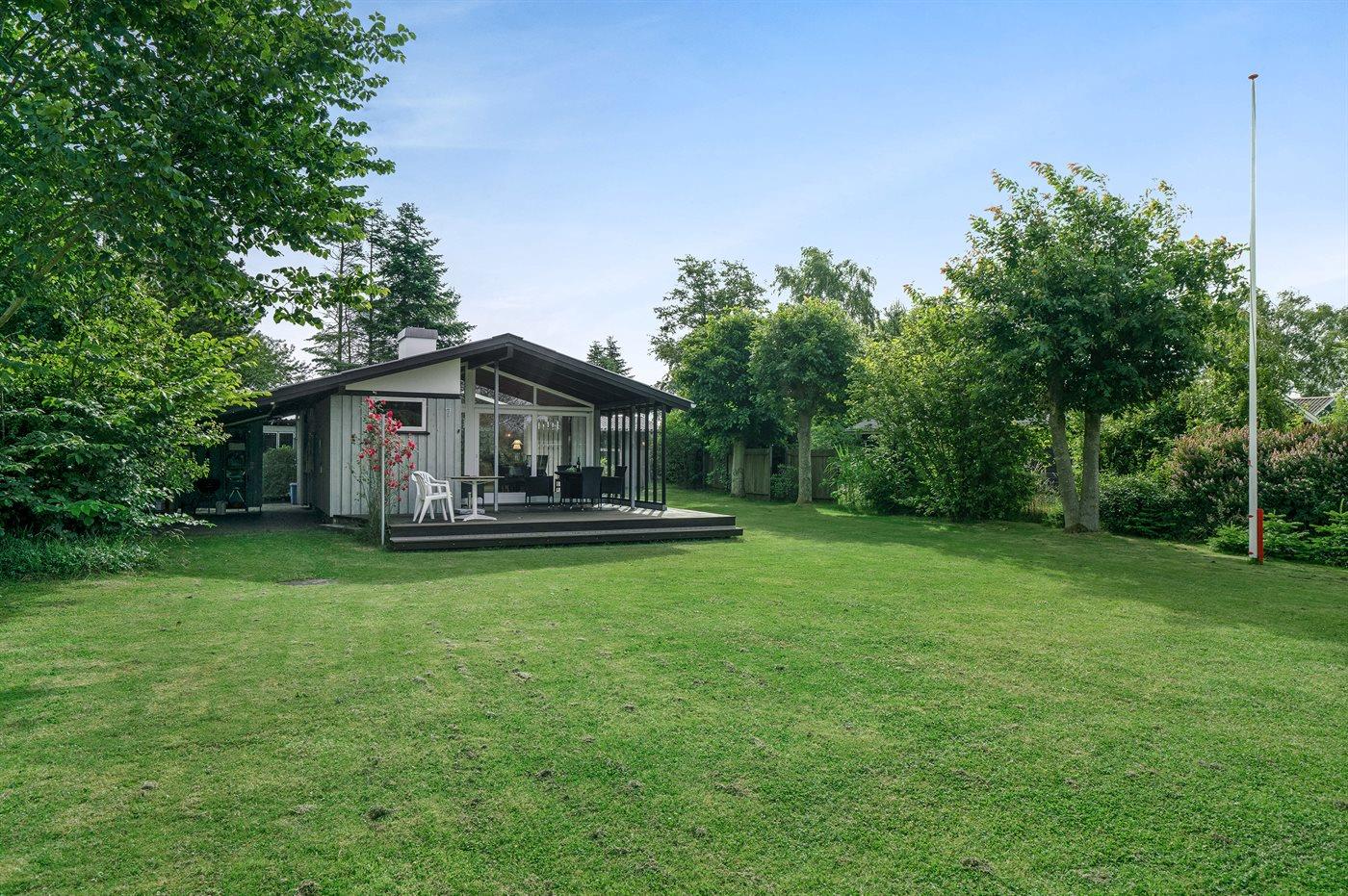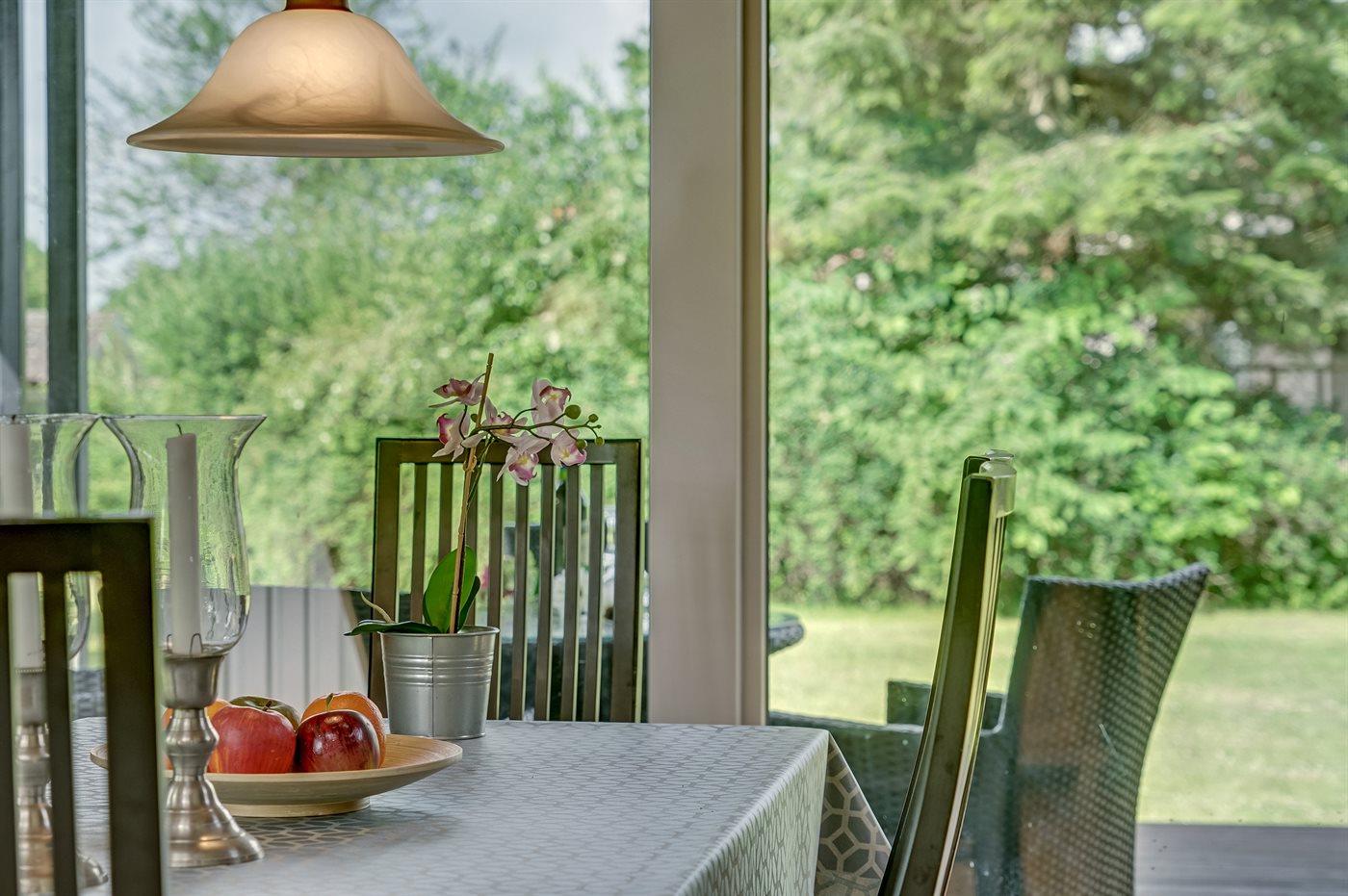 Omkring huset er der god plads til udendørs aktiviteter, og da der er terrasse på begge sider af huset, er der både mulighed for morgen- og aftensol.