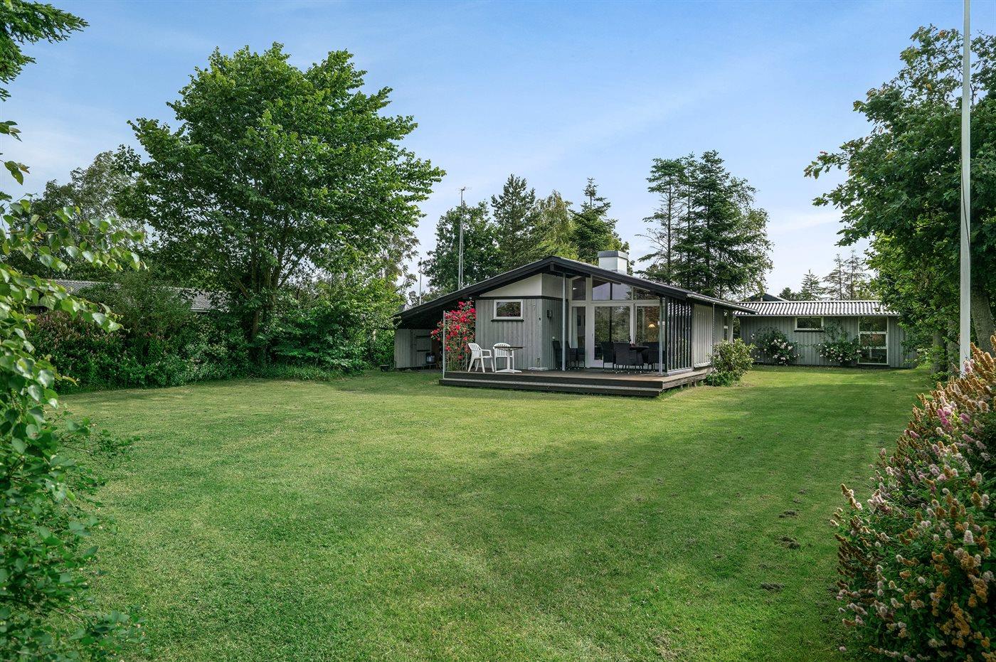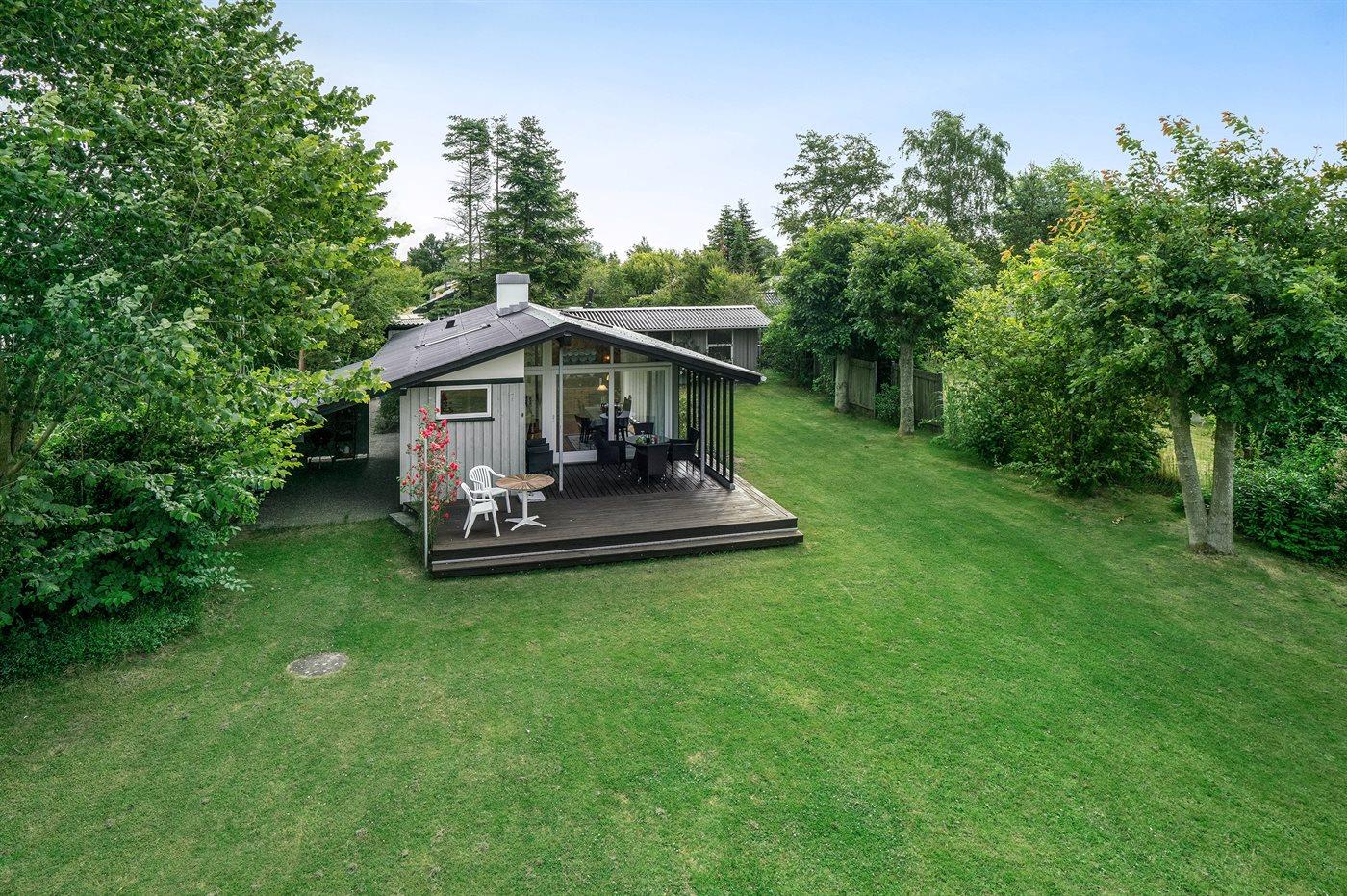 Charmerende sommerhus tæt på Vejlby Feds bedste badestrand med plads til udendørs aktiviteter og terrasser med sol hele dagen.