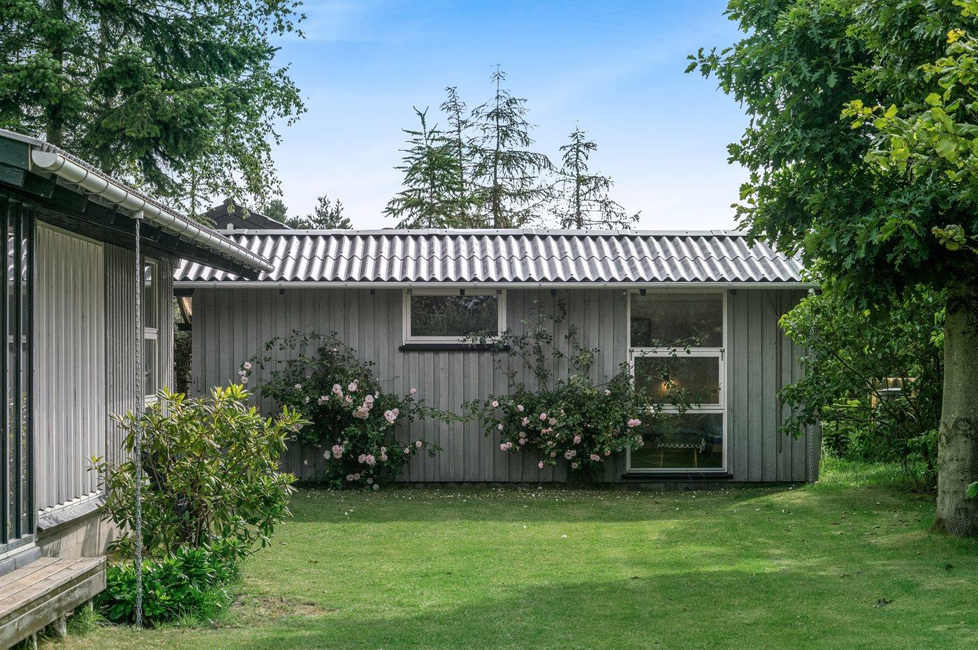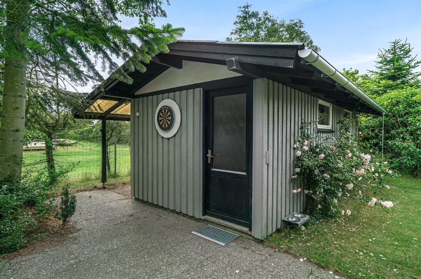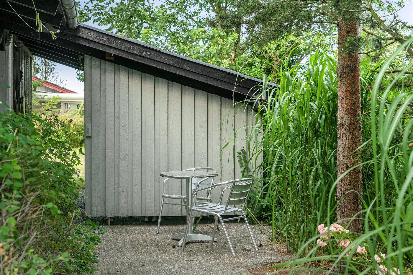 Ferieboligen er beliggende på en 850 m² stor havegrund. Grunden er indhegnet. Der er 400 m til havet. Nærmeste forretning er beliggende i en afstand af 4300 m. Til ferieboligen hører 20 m² terrasseareal. Desuden er der 20 m² overdækket terrasse. Parkering ved ferieboligen.