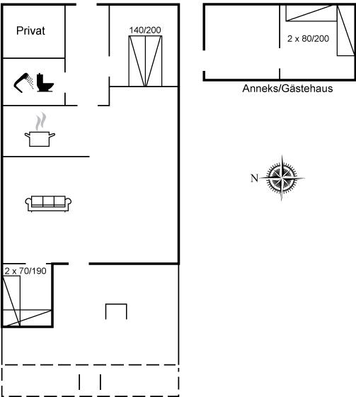 Der er i alt 3 soveværelser. Sovepladserne fordeler sig på: 2 sovepladser i dobbeltseng. 2 sovepladser i enkeltsenge. 2 sovepladser i køjeseng. 2 af disse sovepladser befinder sig i et anneks. Derudover er der 1 stk. barneseng.