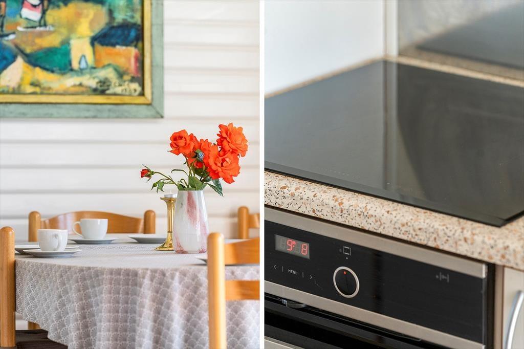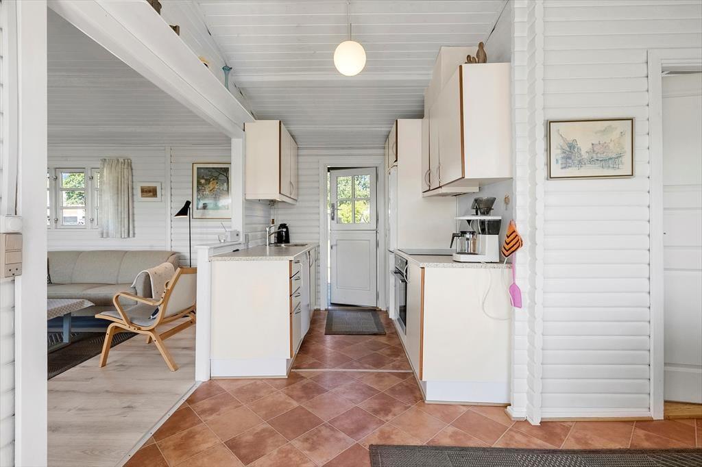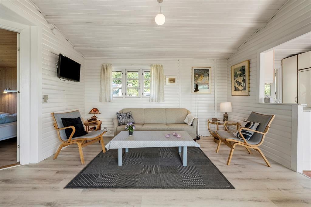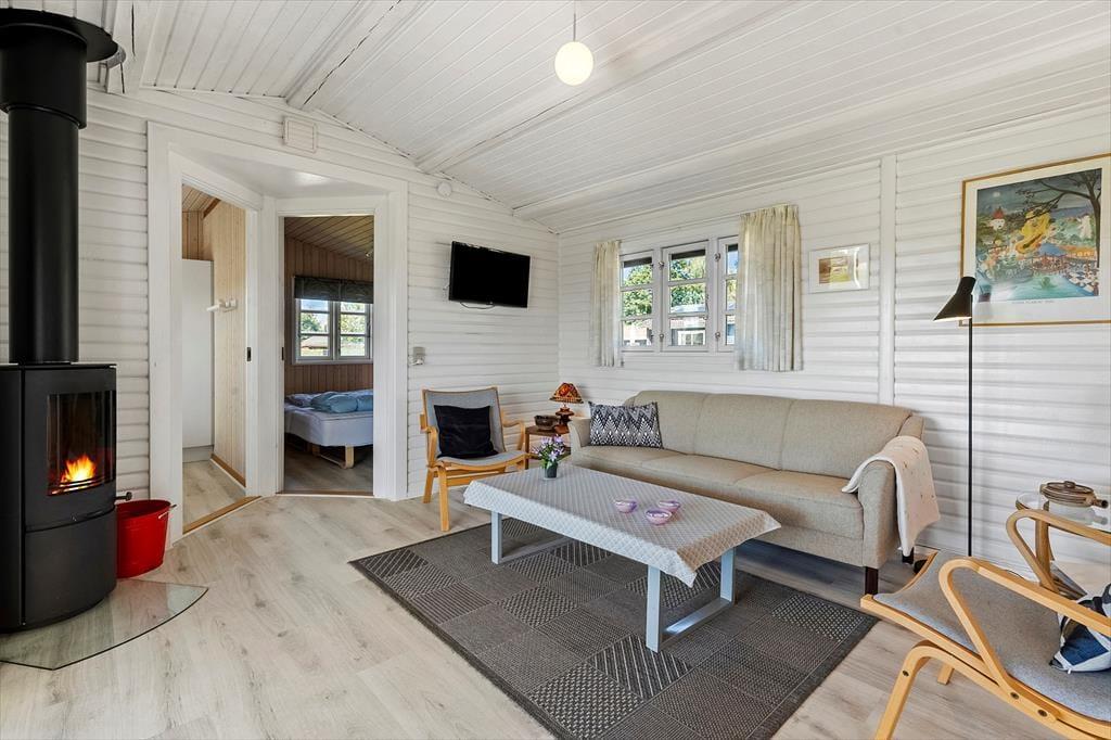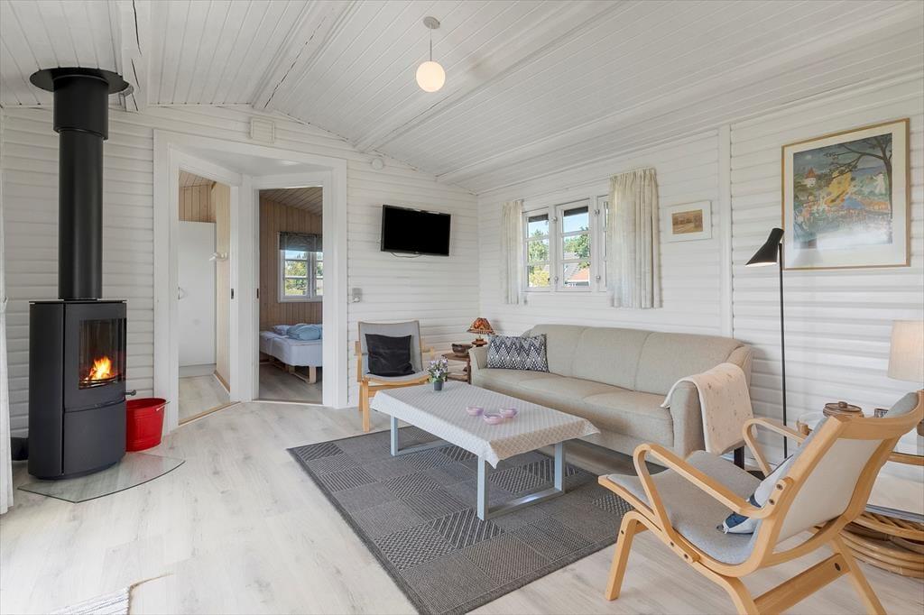 Når du træder ind i det renoverede sommerhus, bliver du straks mødt af en indbydende atmosfære. Stuen er husets hjerte med brændeovn og en hyggelig spiseplads, hvor familien kan samles om brætspil eller en lækker middag. Her er der plads til afslapning foran ilden, når aftenen falder på, og man mærker, hvordan feriestemningen hurtigt indfinder sig. Huset har et godt køkken, der er perfekt til at tilberede dagens måltider, mens vinduet lader lyset strømme ind og giver udsigt til de omkringliggende marker. De to soveværelser sikrer en god nats søvn, så du er frisk til næste dags eventyr.