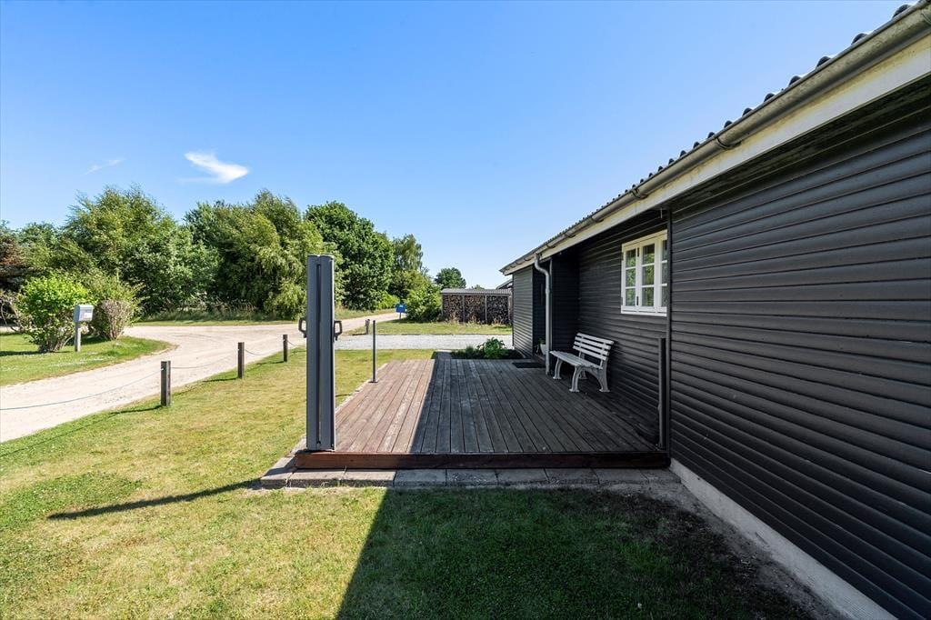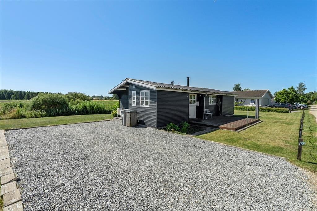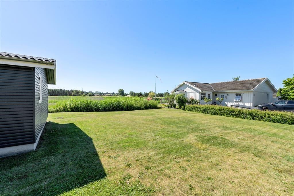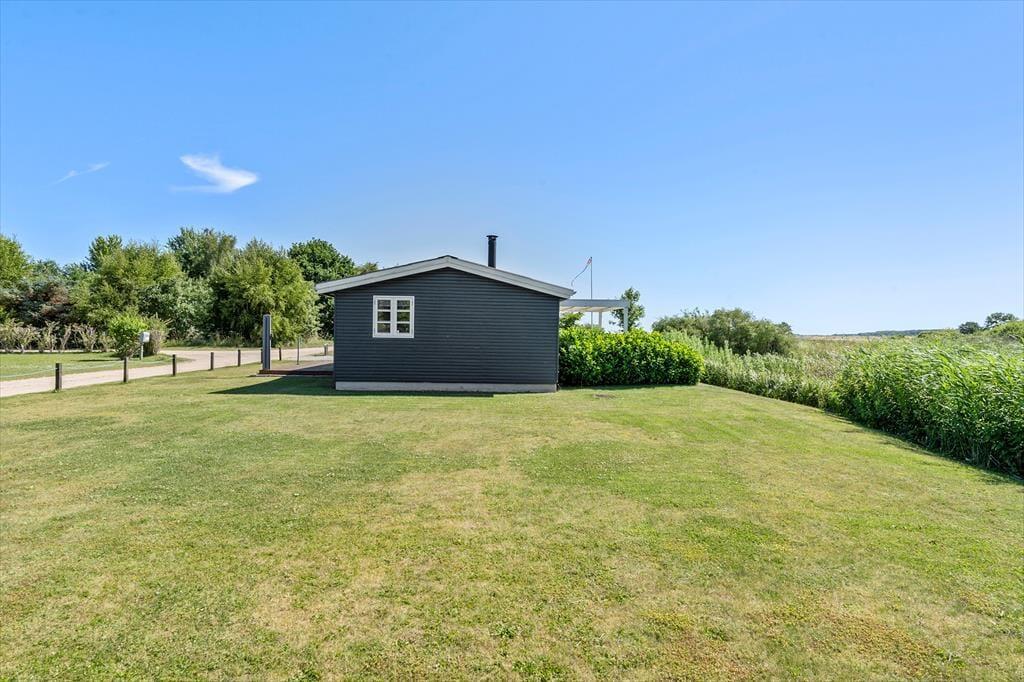 Udenfor venter der masser af plads til at nyde det gode vejr. Sommerhuset er udstyret med to træterrasser – én på hver side af huset, så du altid kan finde en solrig eller skyggefuld plads at sidde. På den ene terrasse er der endda en teltpavillon, hvor du kan søge ly, hvis vejret viser sig fra sin lunefulde side. Den store græsplæne på den ene side af huset indbyder til boldspil og leg, mens du ved baghaven kan nyde synet af den naturskønne grund, der strækker sig helt ned til Avlby Mølleå. Her er det nemt at finde ro, når du blandt andet lytter til fuglenes kvidren.