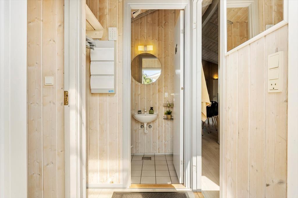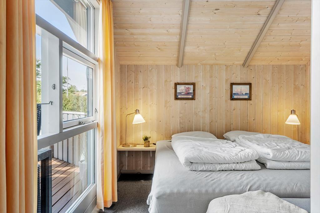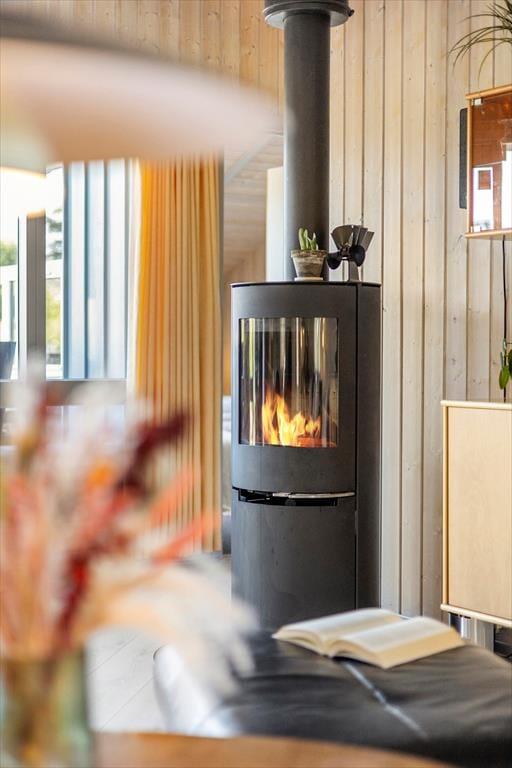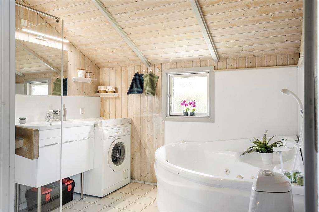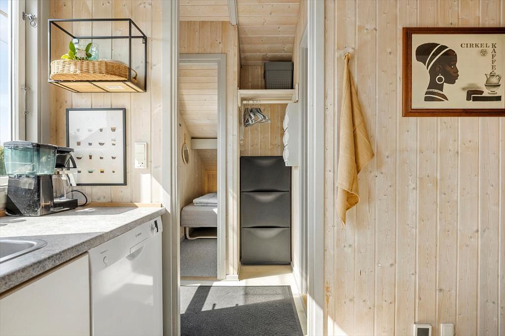 Når du træder indenfor i sommerhuset, mødes du af en lys og rummelig TV-stue med en dejlig brændeovn, der indbyder til hyggestunder på kølige aftener. Her kan du samle familien til en filmaften eller nyde en god bog med knitrende ild i baggrunden. De store vinduer sørger for et skønt lysindfald i rummet, hvor spisepladsen også er placeret, så I kan nyde feriens måltider sammen. Køkkenet ligger i åben forbindelse med stuen, og både køkken og stue har alt, hvad du har brug for til en behagelig ferie. Når du trænger til ekstra afslapning, kan du forkæle dig selv i husets spabad eller sauna, hvor du kan læne dig tilbage og koble helt af.