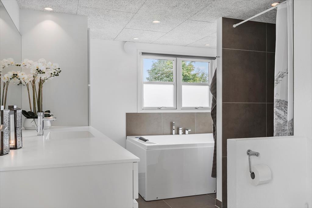 Når du træder indenfor, bliver du mødt af et lyst og indbydende køkken-alrum, der er husets hjerte. Her kan du samle familien om måltiderne ved det store spisebord eller slappe af i sofaen foran tv'et og den hyggelige brændeovn. Køkkenet er fuldt udstyret, så du har alt, hvad du behøver for at tilberede lækre måltider, og med den energibesparende varmepumpe kan du holde en behagelig temperatur året rundt. Det nyrenoverede badeværelse er et kapitel for sig med et lækkert spabad, hvor du kan forkæle dig selv med et afslappende bad efter en dag fuld af oplevelser.